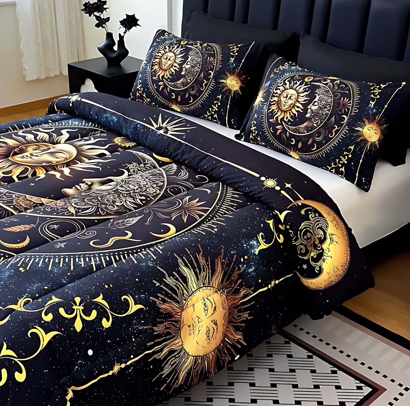 TEMU / JIT Amazon transfronterizo Sol Luna Planeta 3D impresión digital suave 180gms colchón funda de almohada conjunto