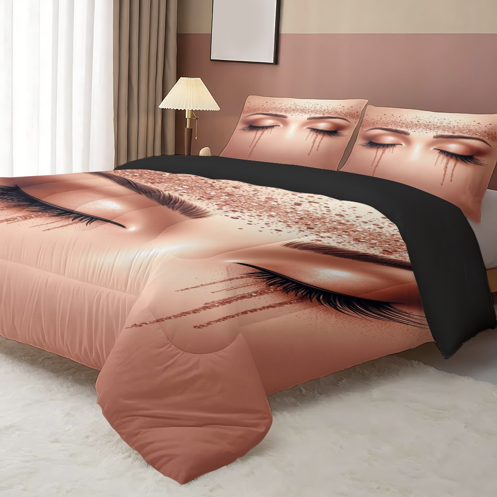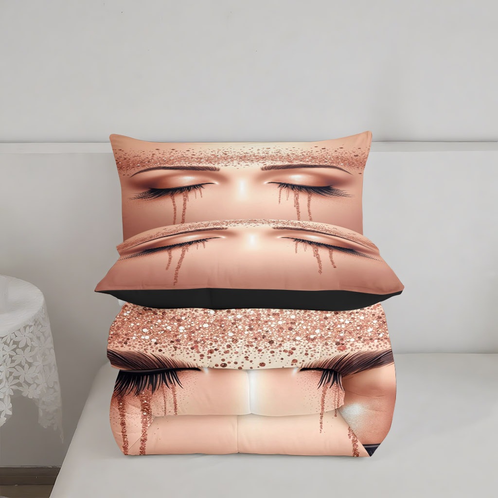 TEMU / JIT nuevo producto abstracto encantador pestañas impresión digital 3D 180gms funda de almohada set de ropa de cama