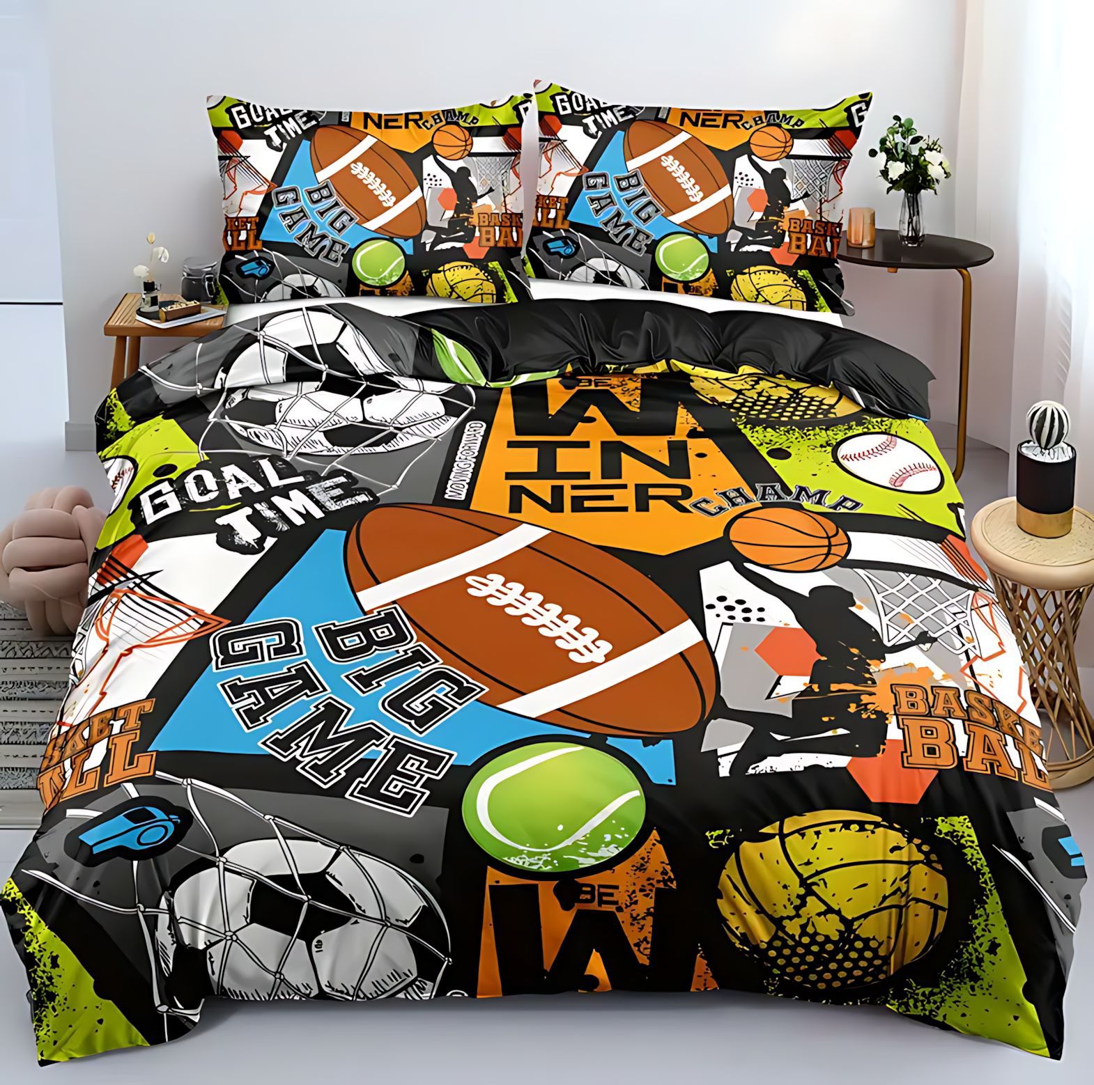 TEMU / JIT comercio exterior moda fútbol béisbol deportes de alta definición digital impresión set de colcha para dibujar