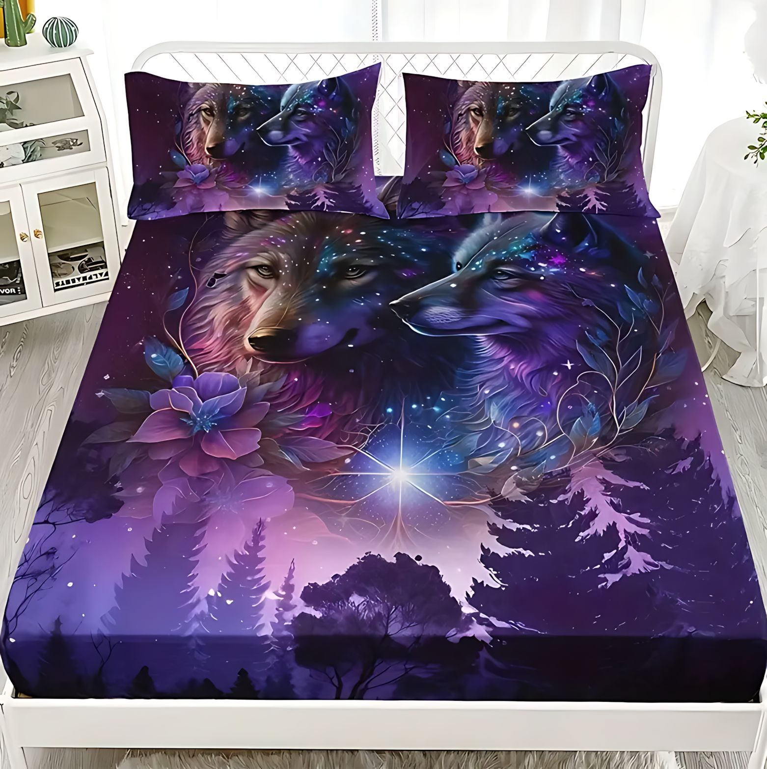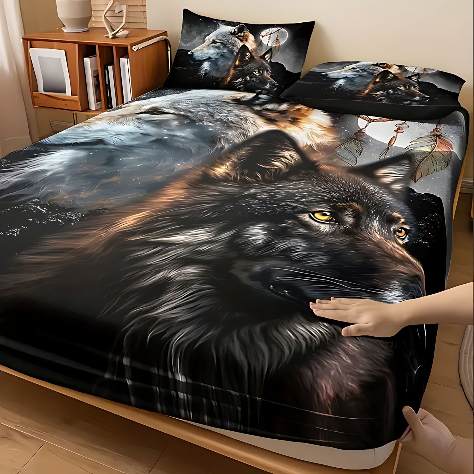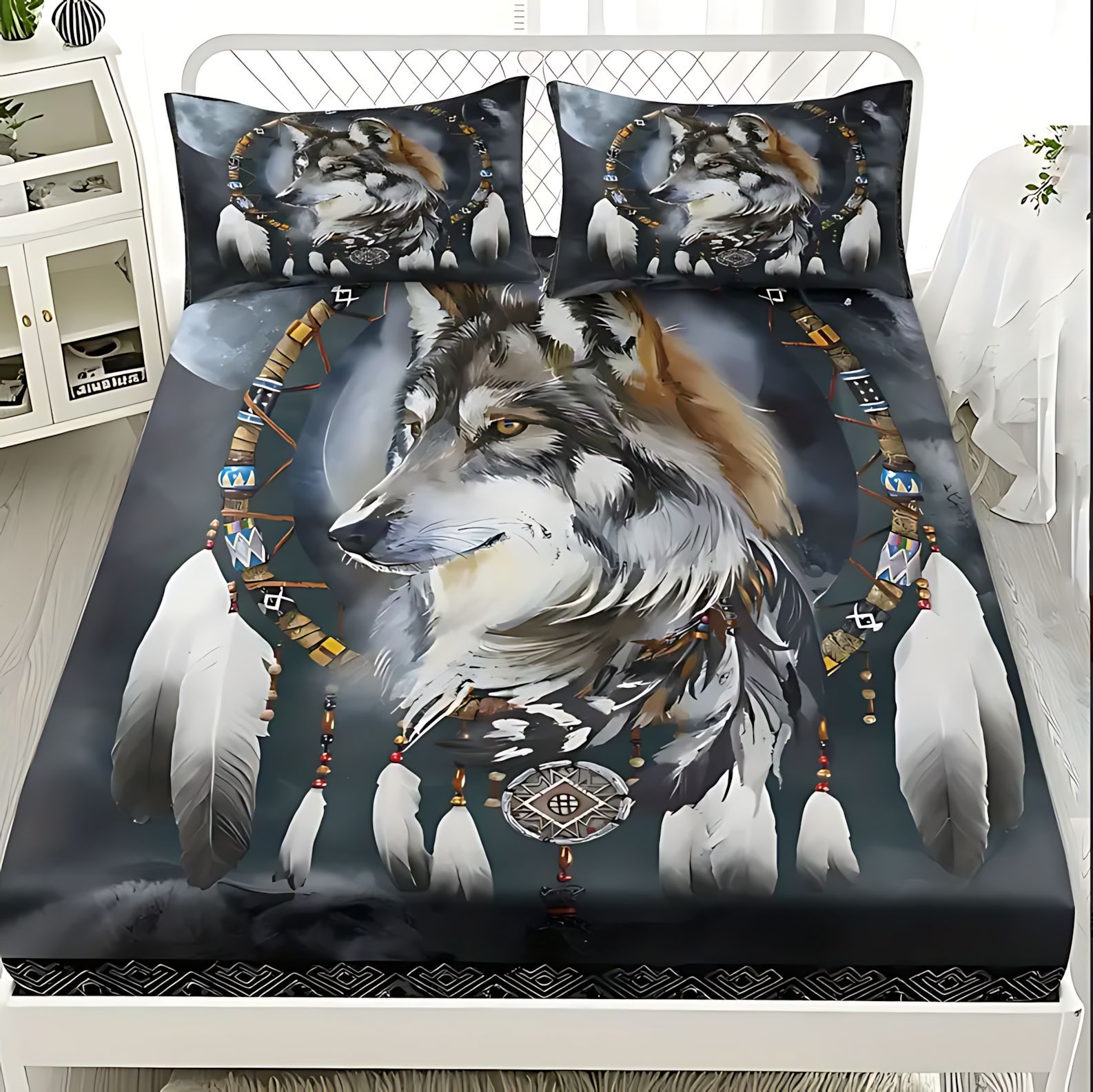 TEMU / JIT Transfronterizo Wolf Dreamcatcher Cama 3D impresión digital camisa colchón kit de ropa de cama se puede diseñar