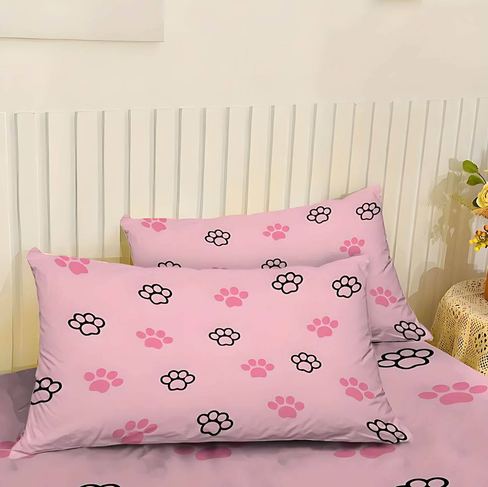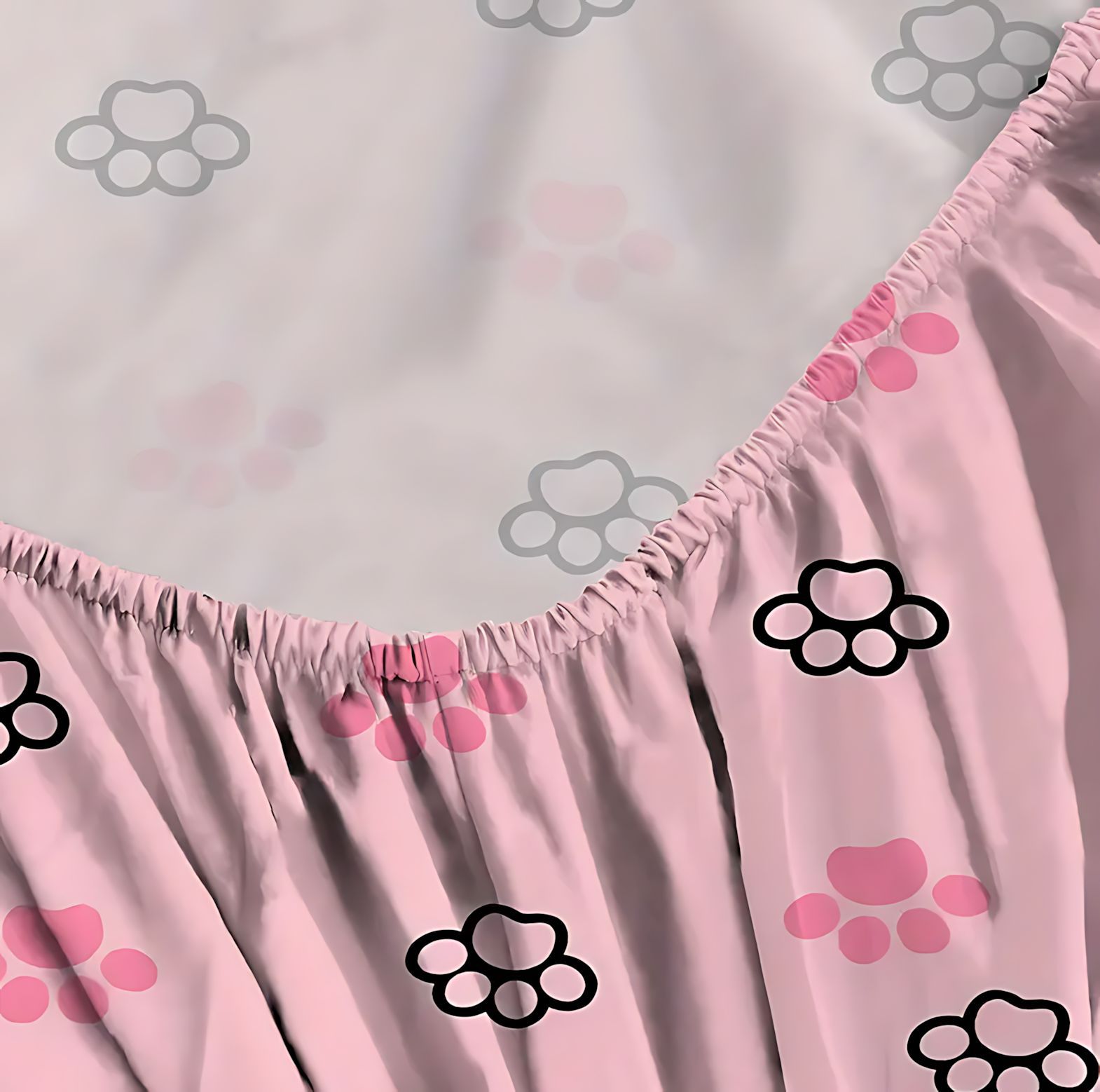 TEMU / JIT Cross-border cute puppy footprint pattern suave cama cómoda camisa colchón set de ropa de cama