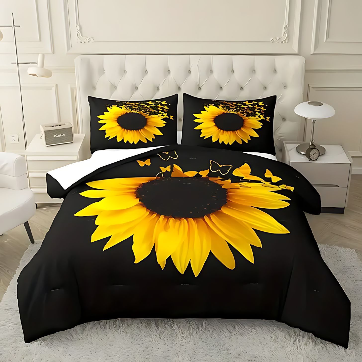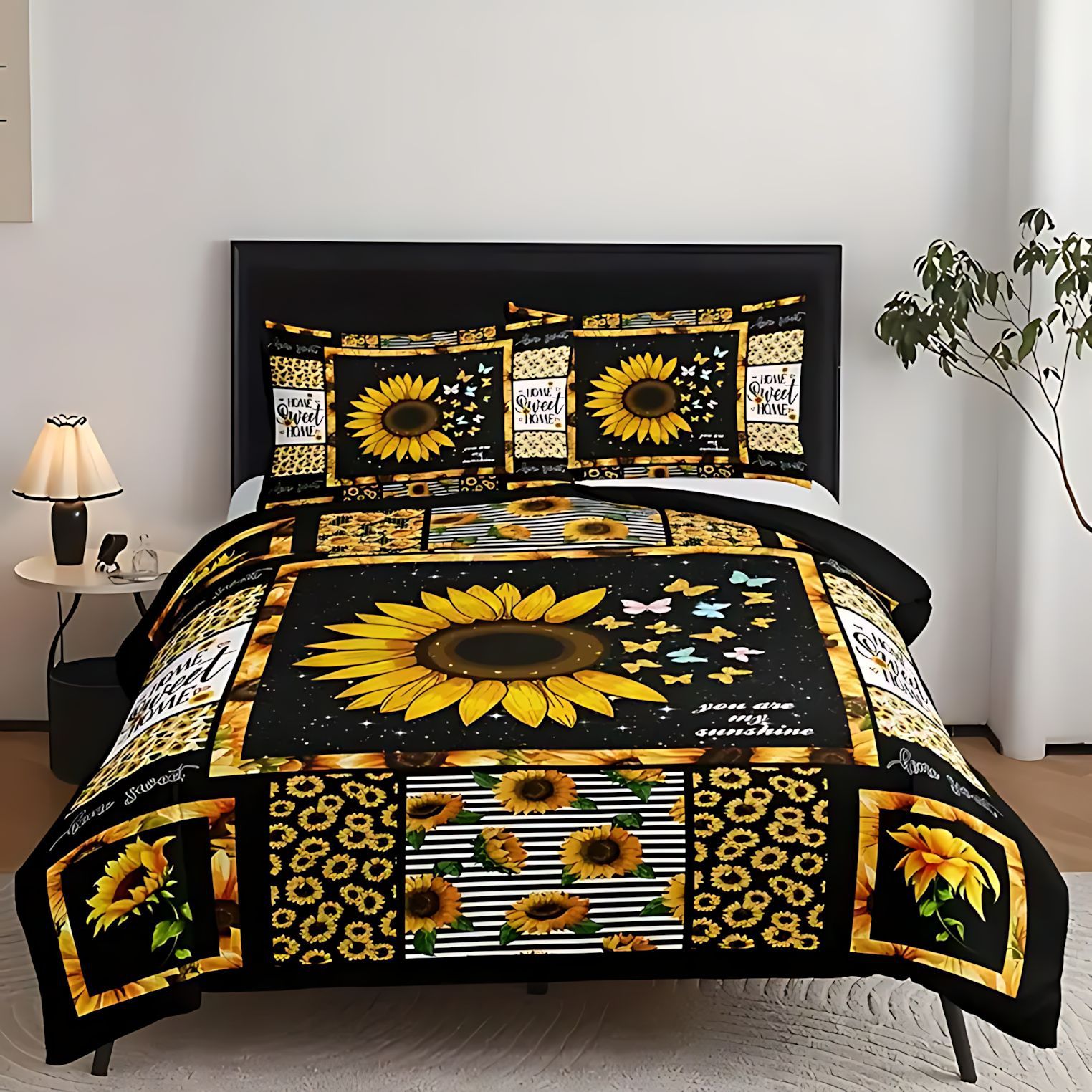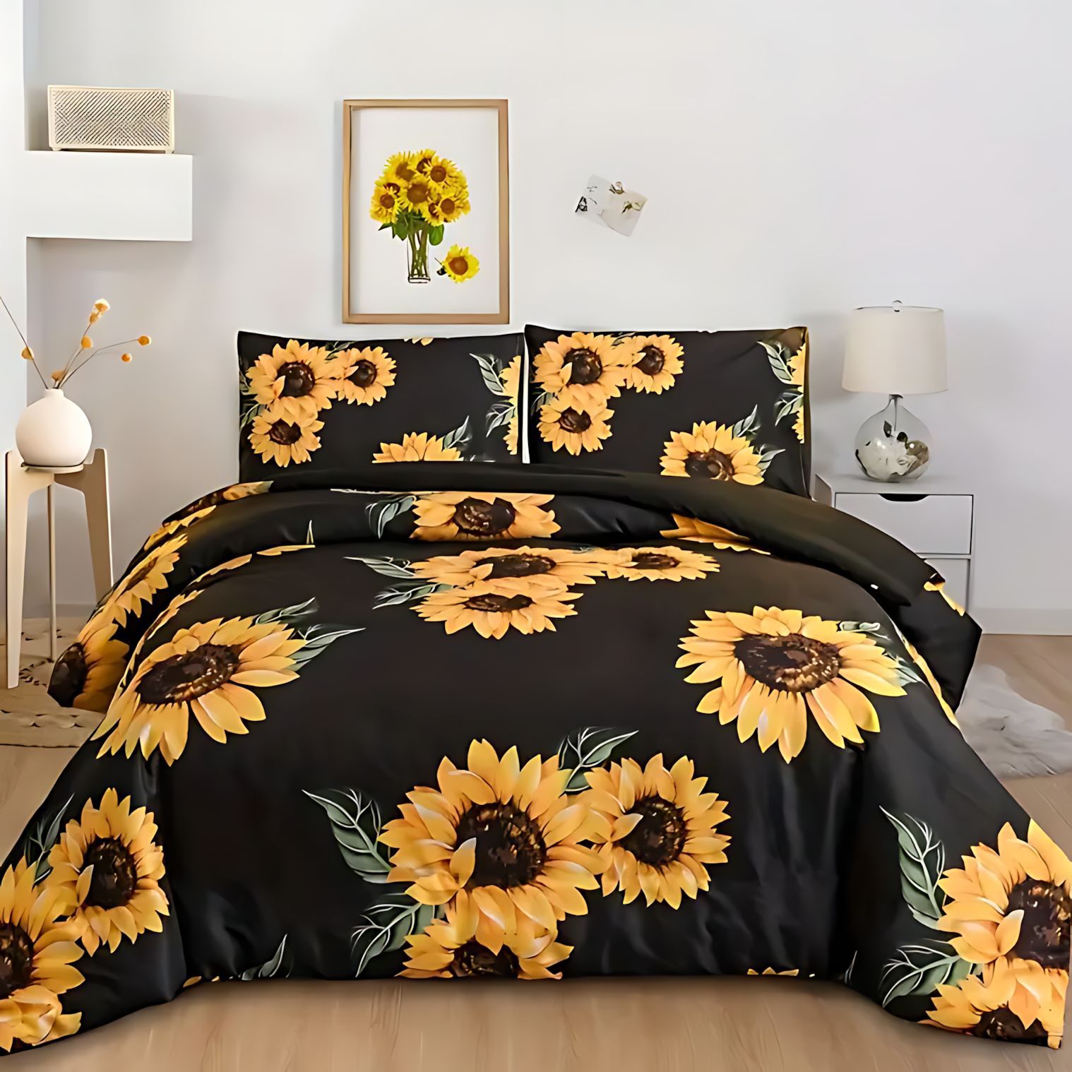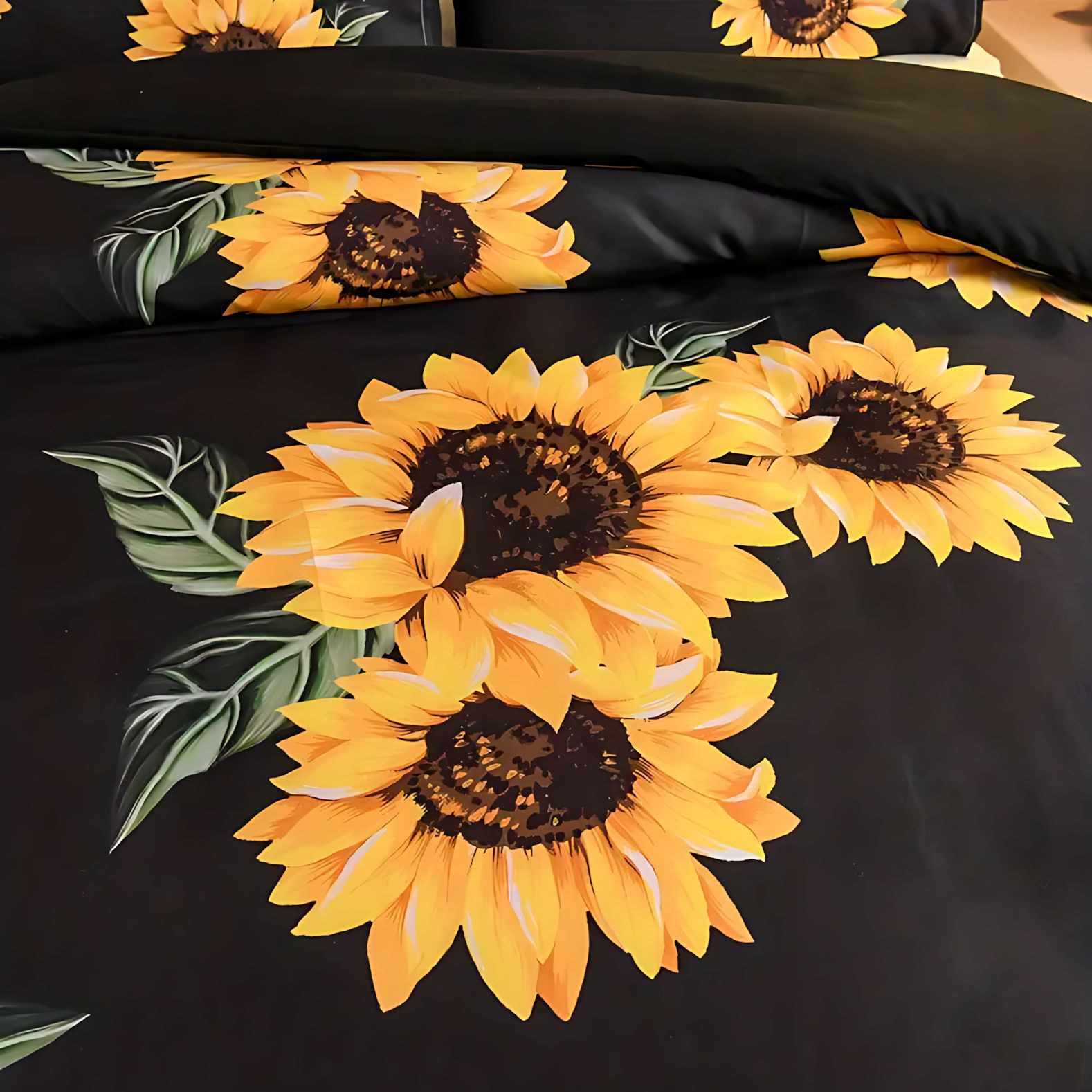 TEMU / JIT Cross-Border Home Visit Fresh Sunflower HD Digital Printed Edred Kit de ropa de cama