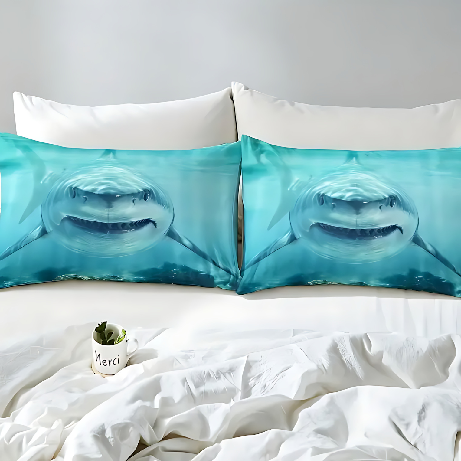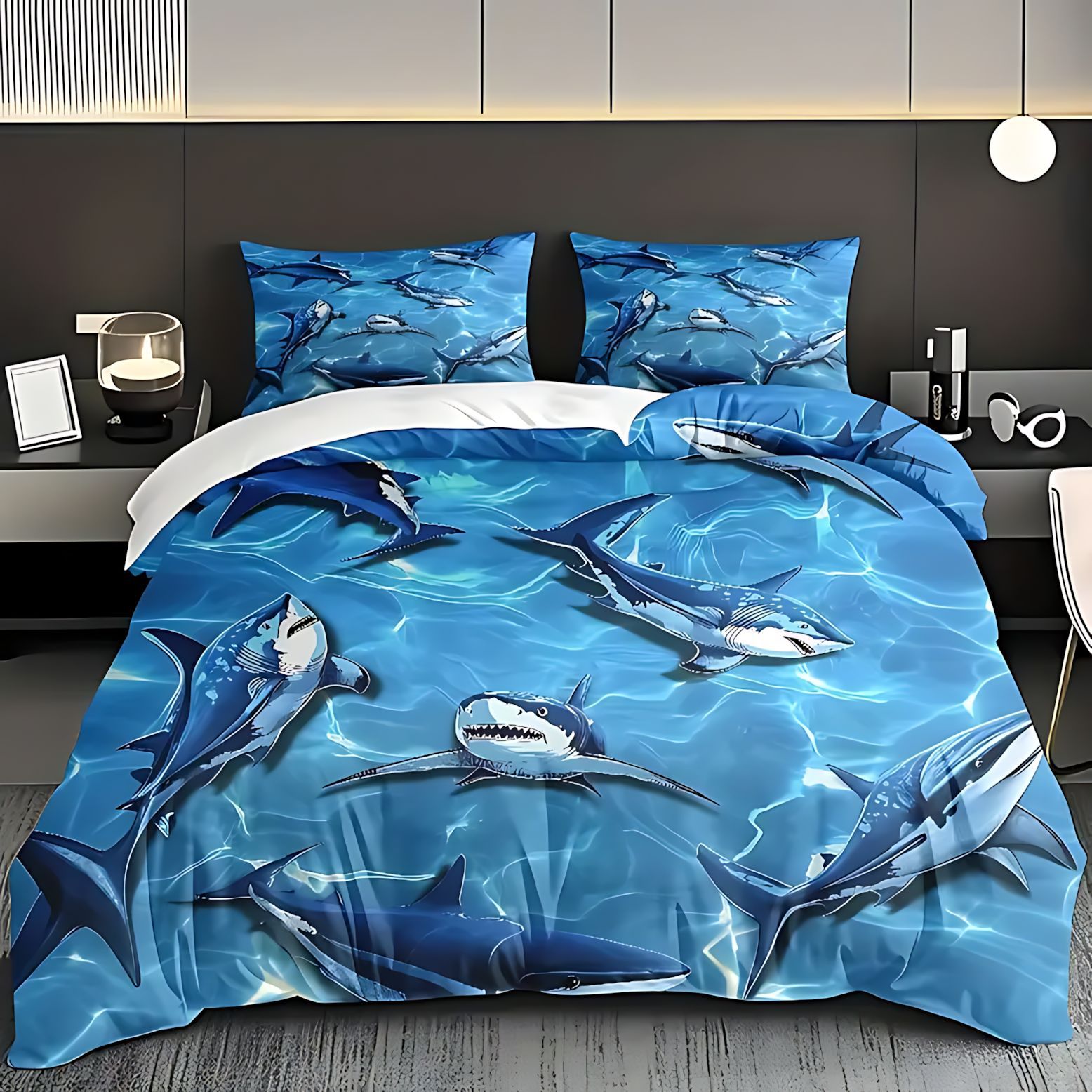 TEMU / JIT transfronterizo impresión de tiburón 3D impresión digital de alta definición colcha de cama kit para dibujar