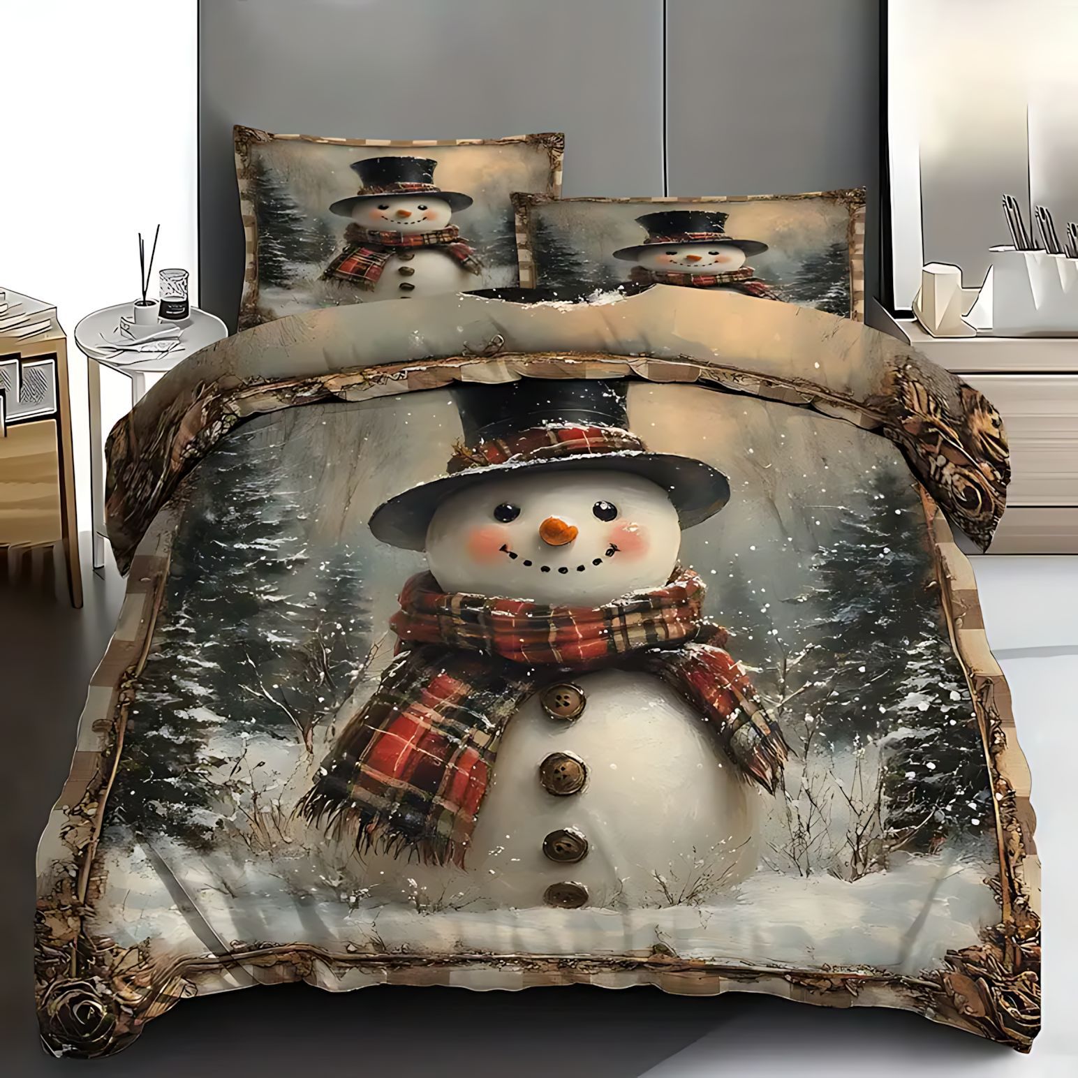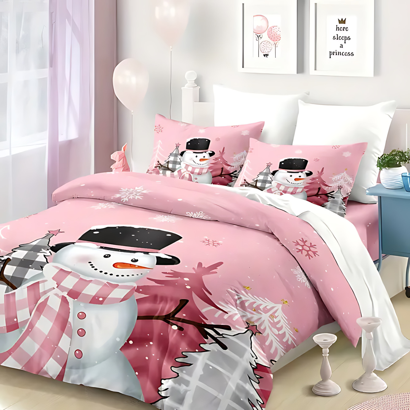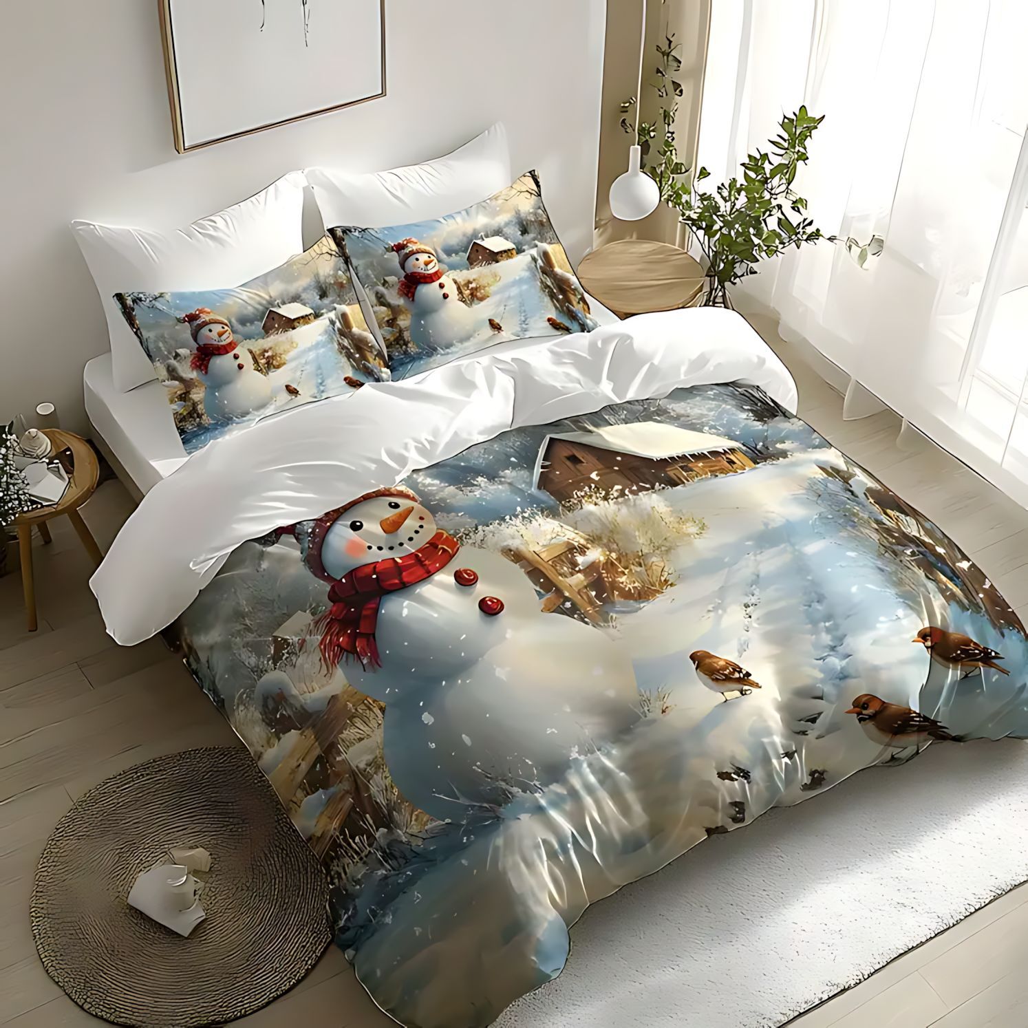 TEMU / JIT Amazon invierno muñeco de nieve HD impresión digital colcha de cama set para dibujar