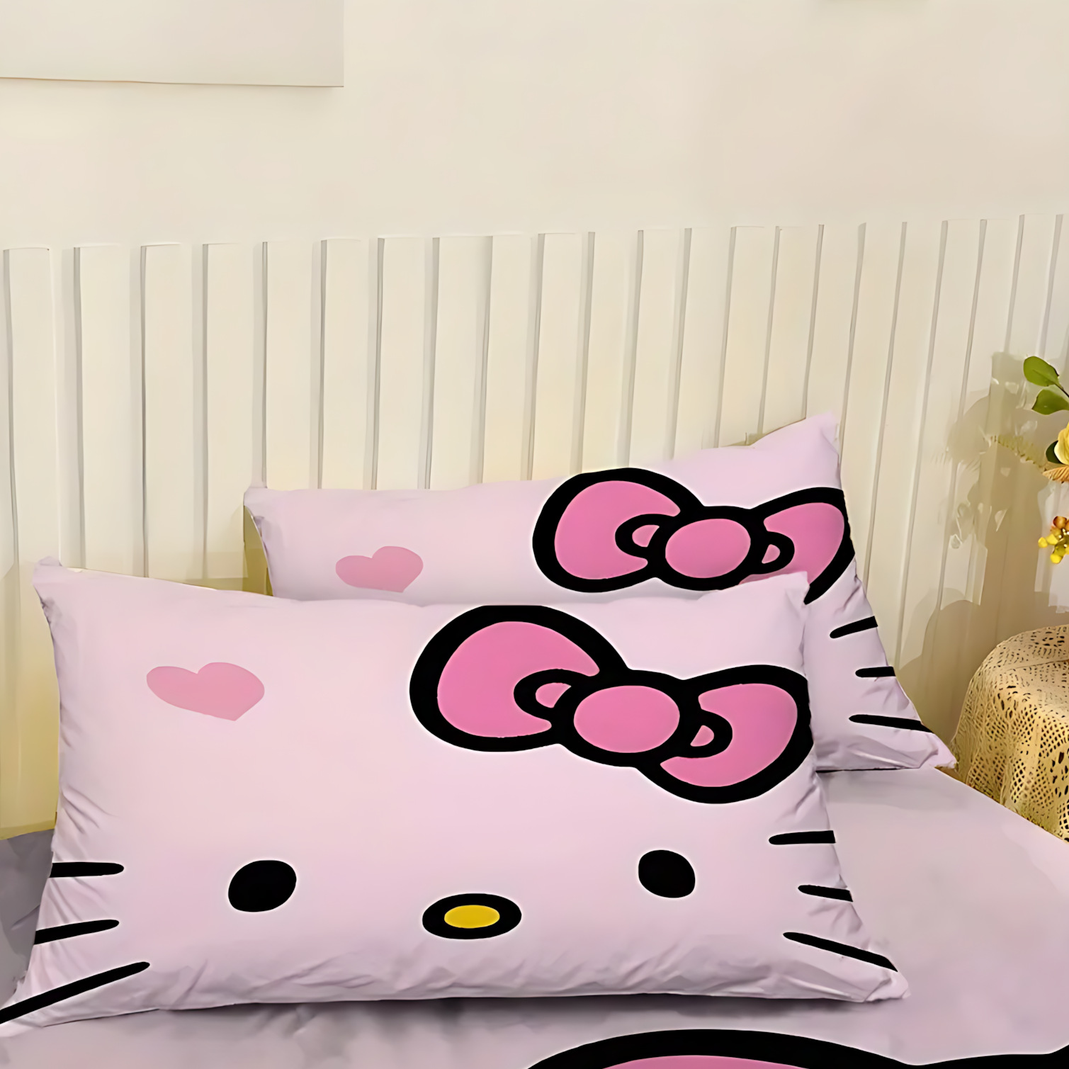TEMU / JIT Cute Kitty serie de patrón de tema impresión digital 3D suave cama cómoda gaza almohada set