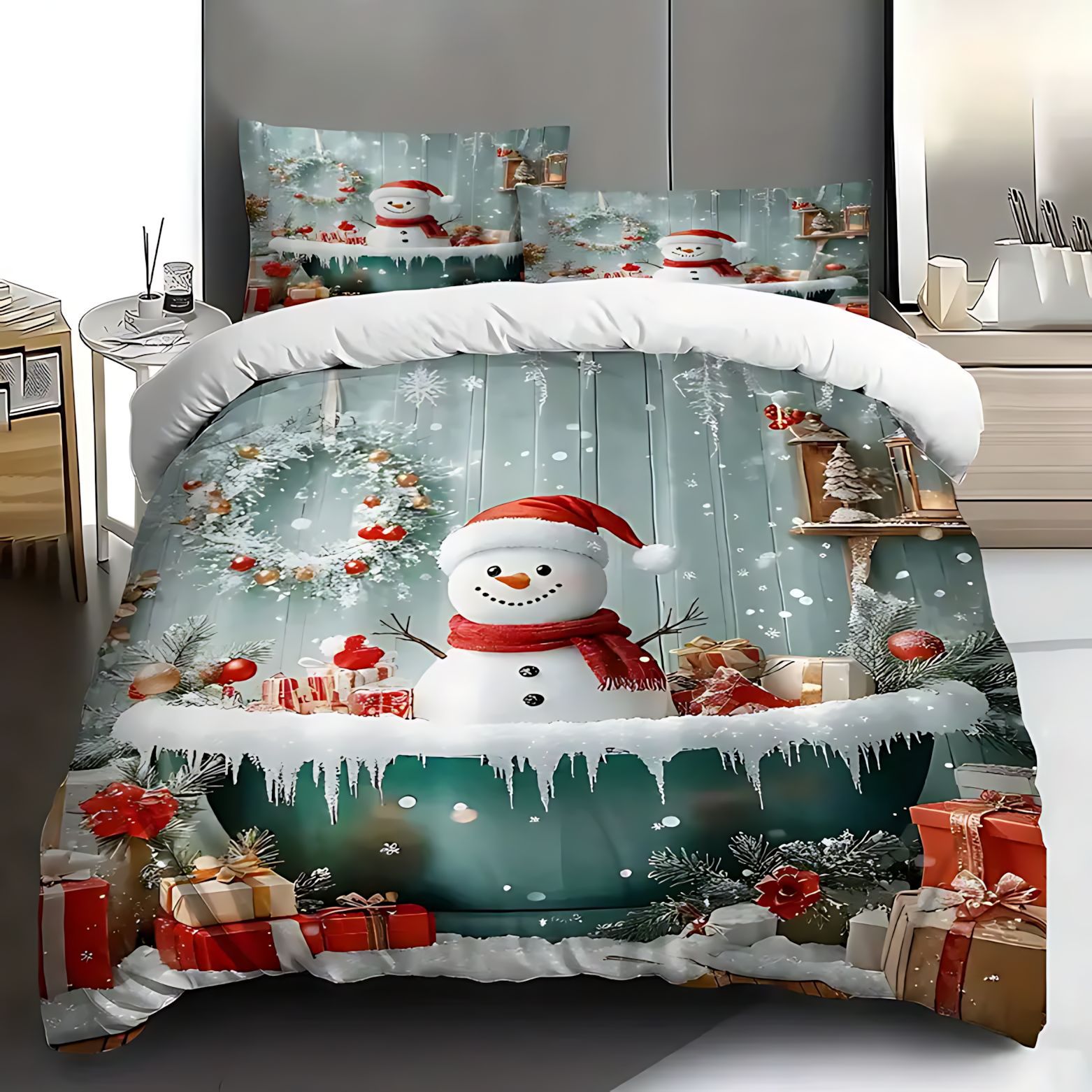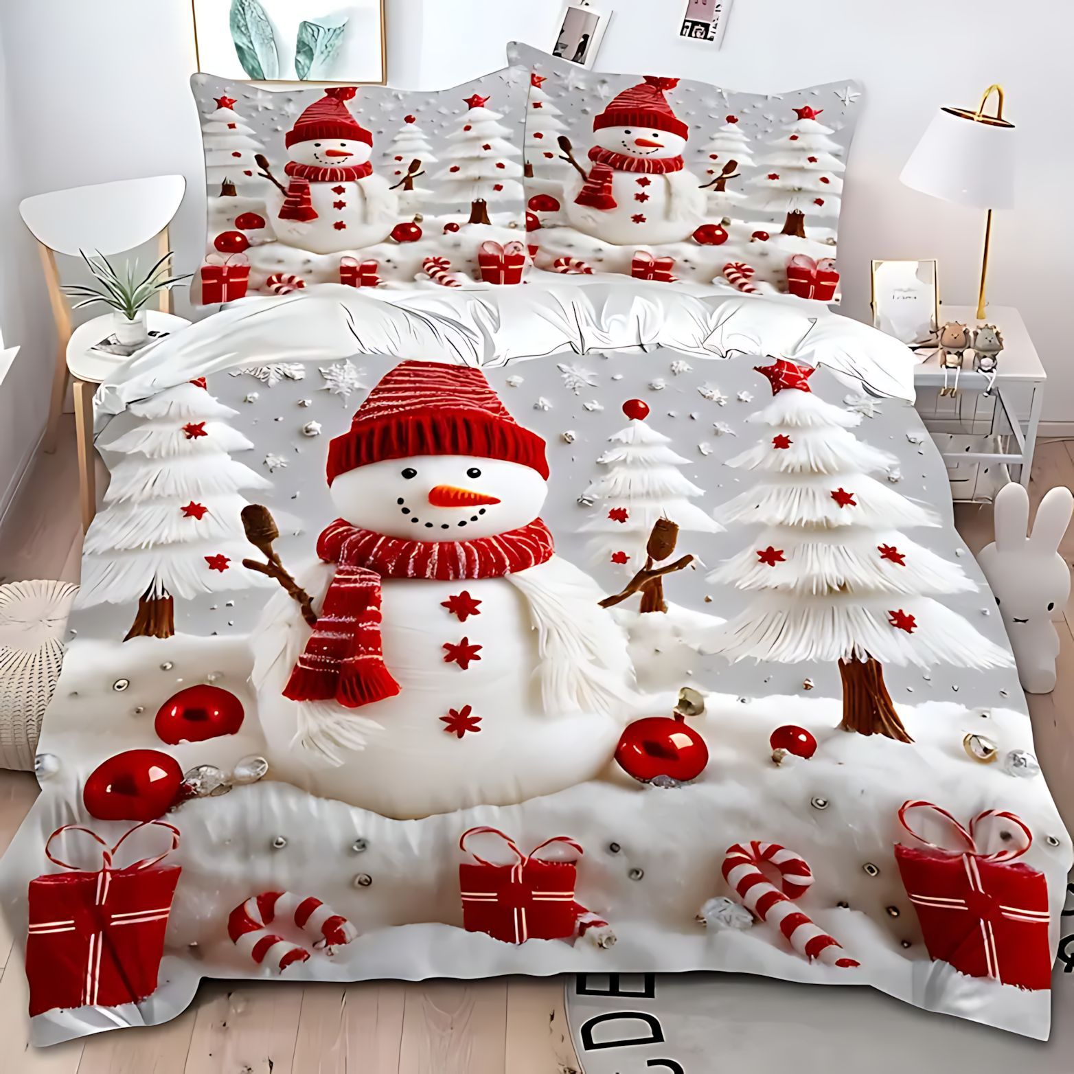 TEMU / JIT transfronterizo lindo pequeño muñeco de nieve patrón 3D impresión digital esponjosa cama cubierta