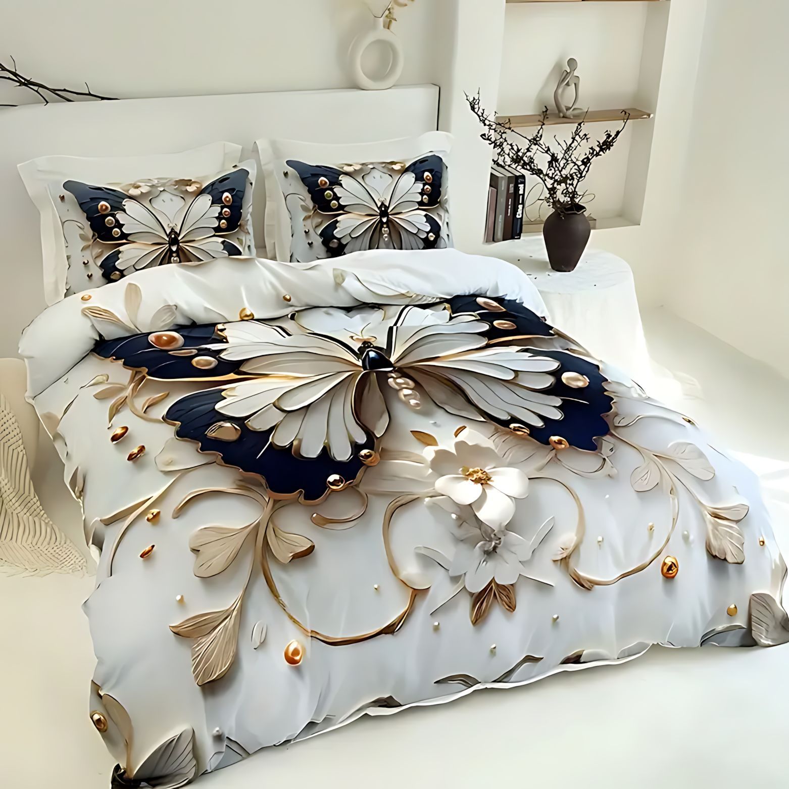 TEMU / JIT transfronterizo textil doméstico estereoscópico mariposa impresión digital 3D lana abrasiva colcha de cama set