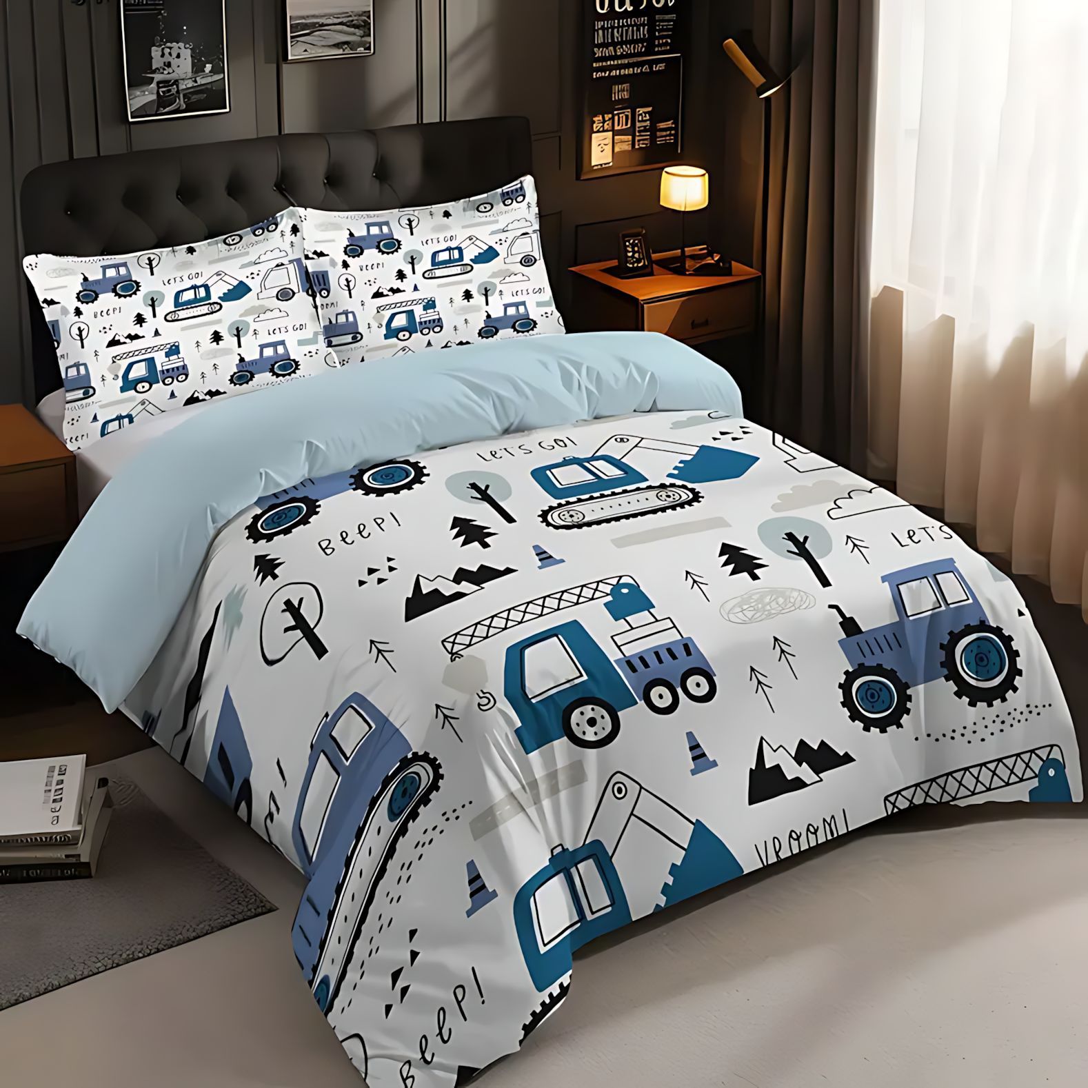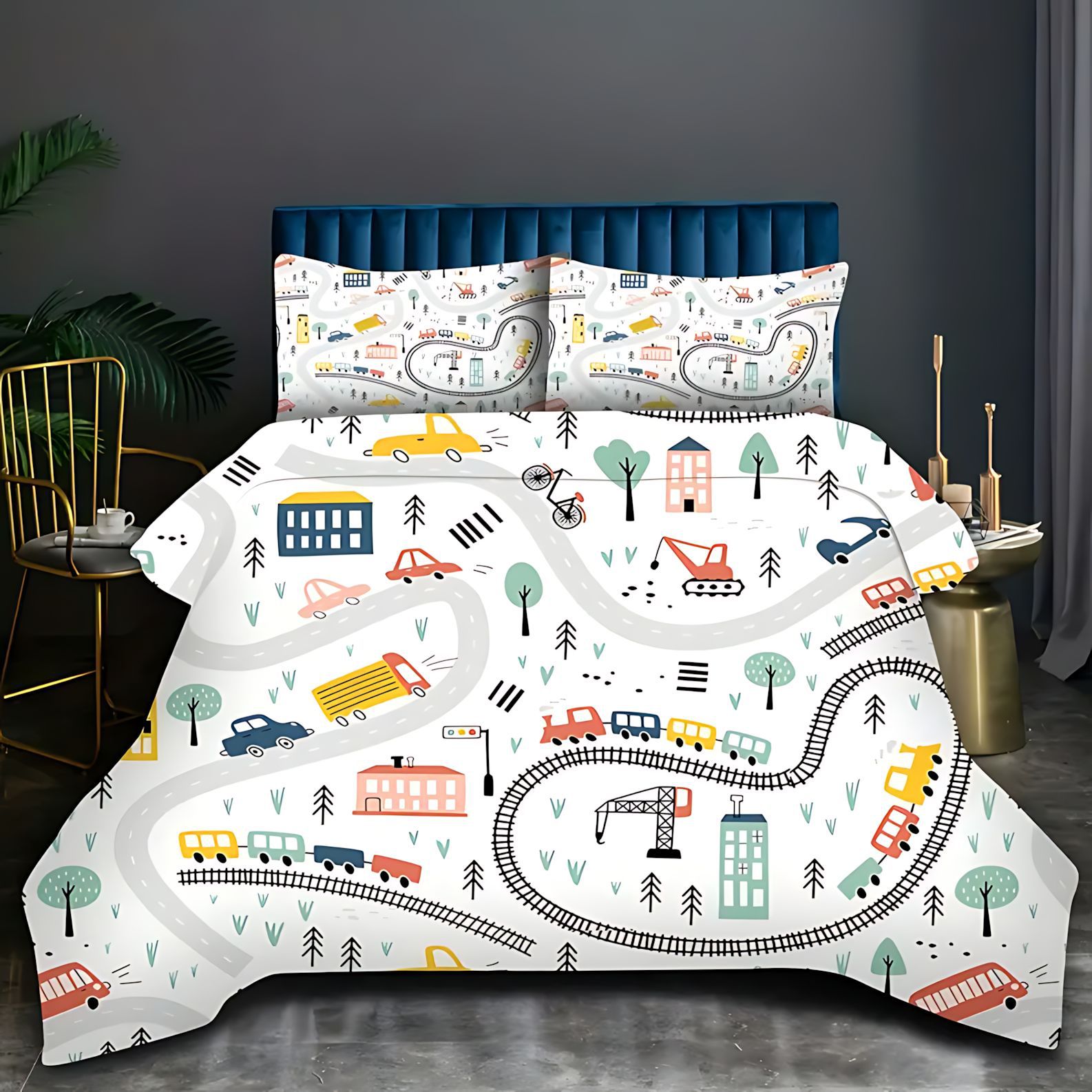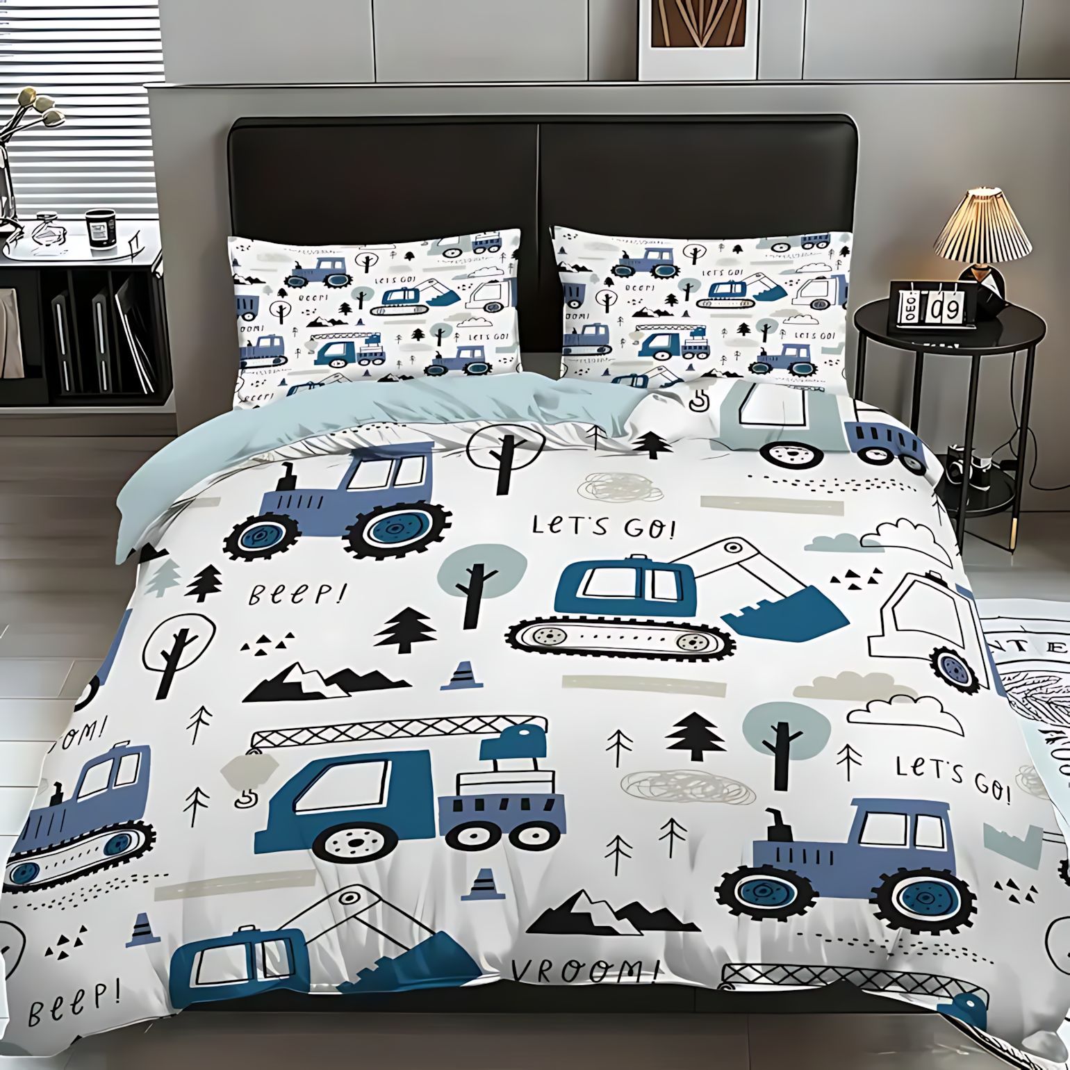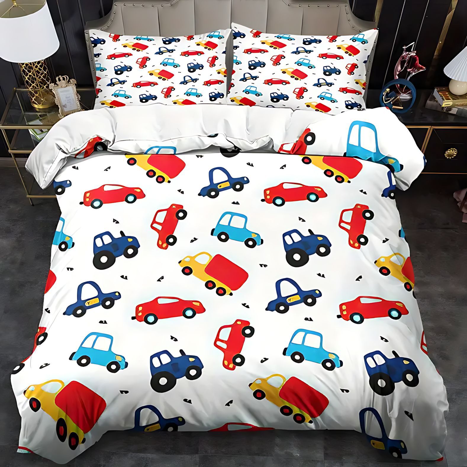 TEMU / JIT Moda dibujos animados lindo patrón de carro colcha de cama set para dibujar