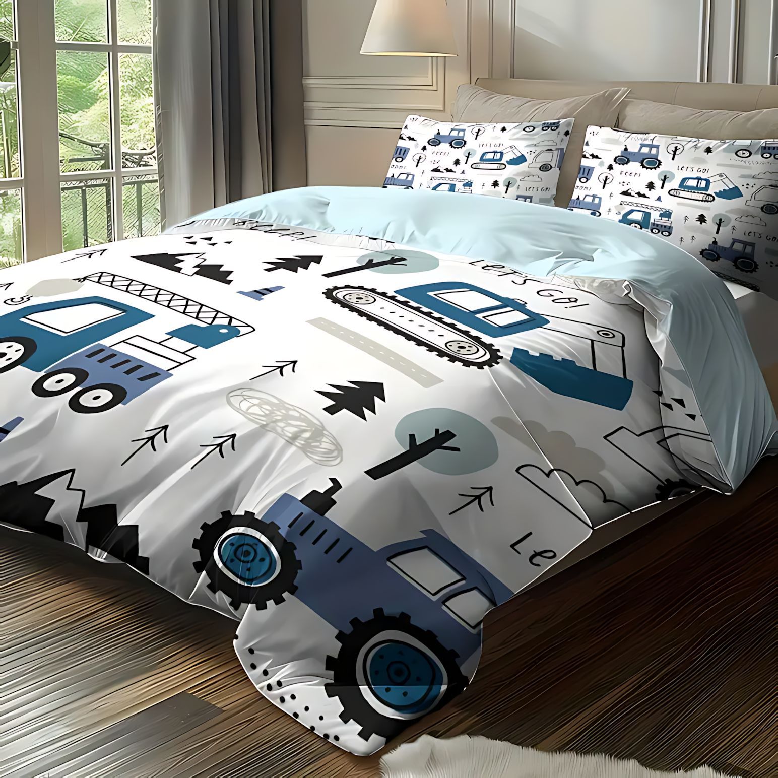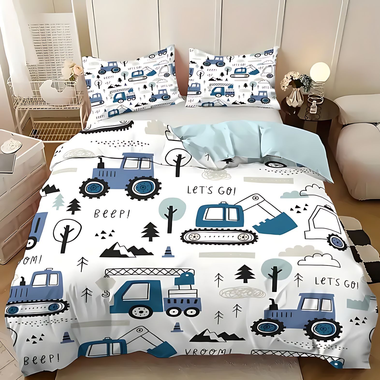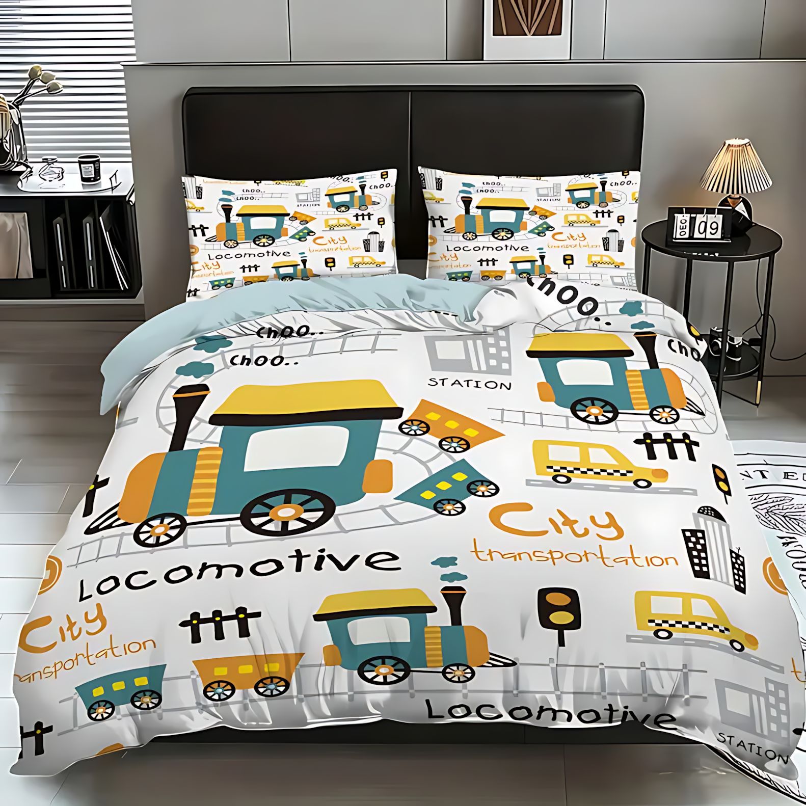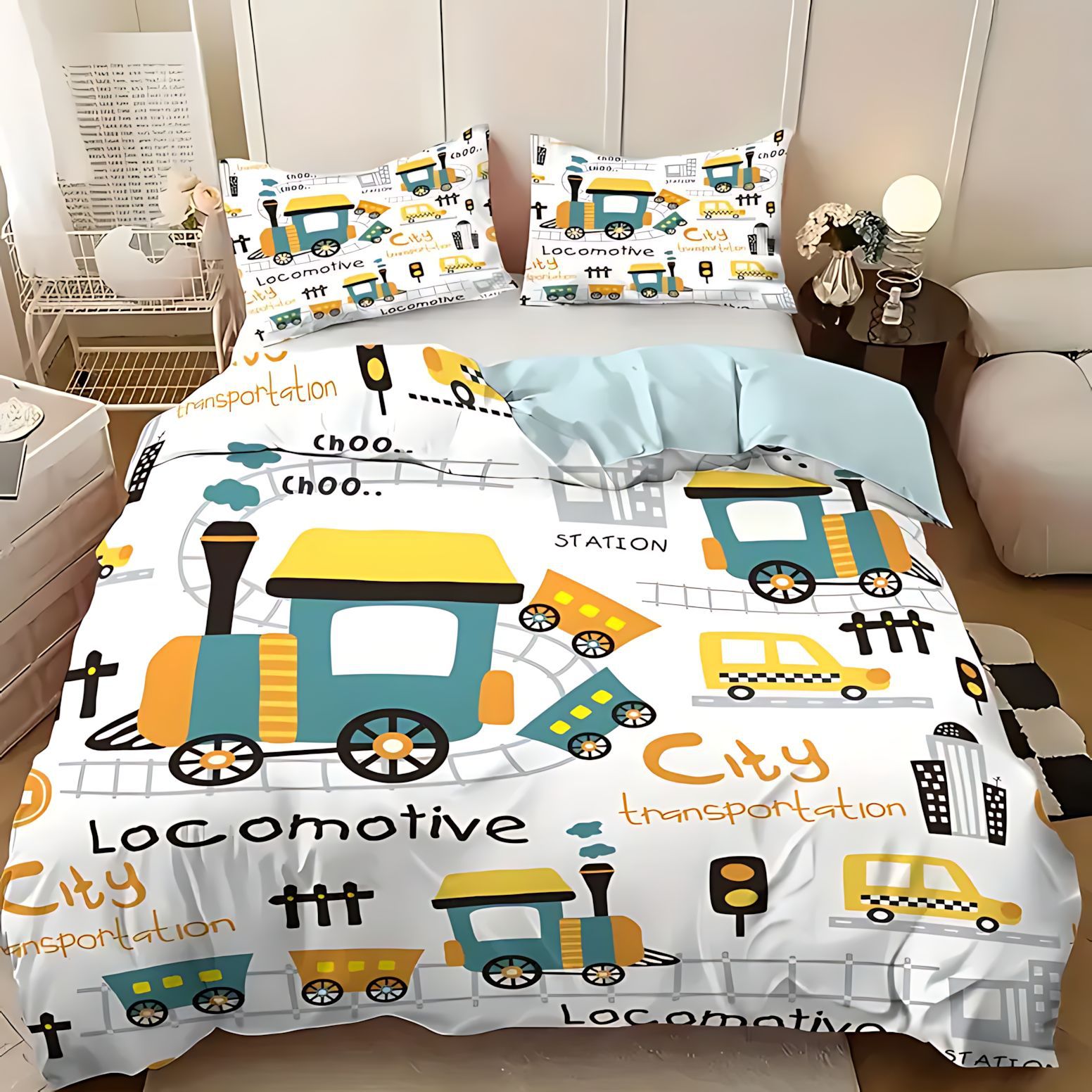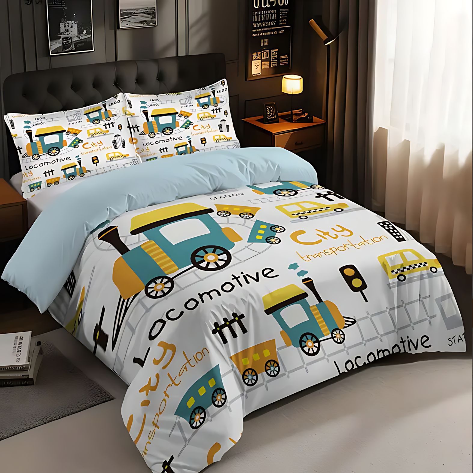 TEMU / JIT Moda dibujos animados lindo patrón de carro colcha de cama set para dibujar