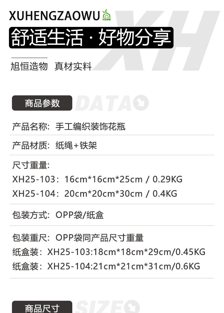 Material de cuerda de papel tejido a mano, jarrón decorativo, flores secas de interior, flores artificiales, jarrón decorativo, decoración creativa para el hogar