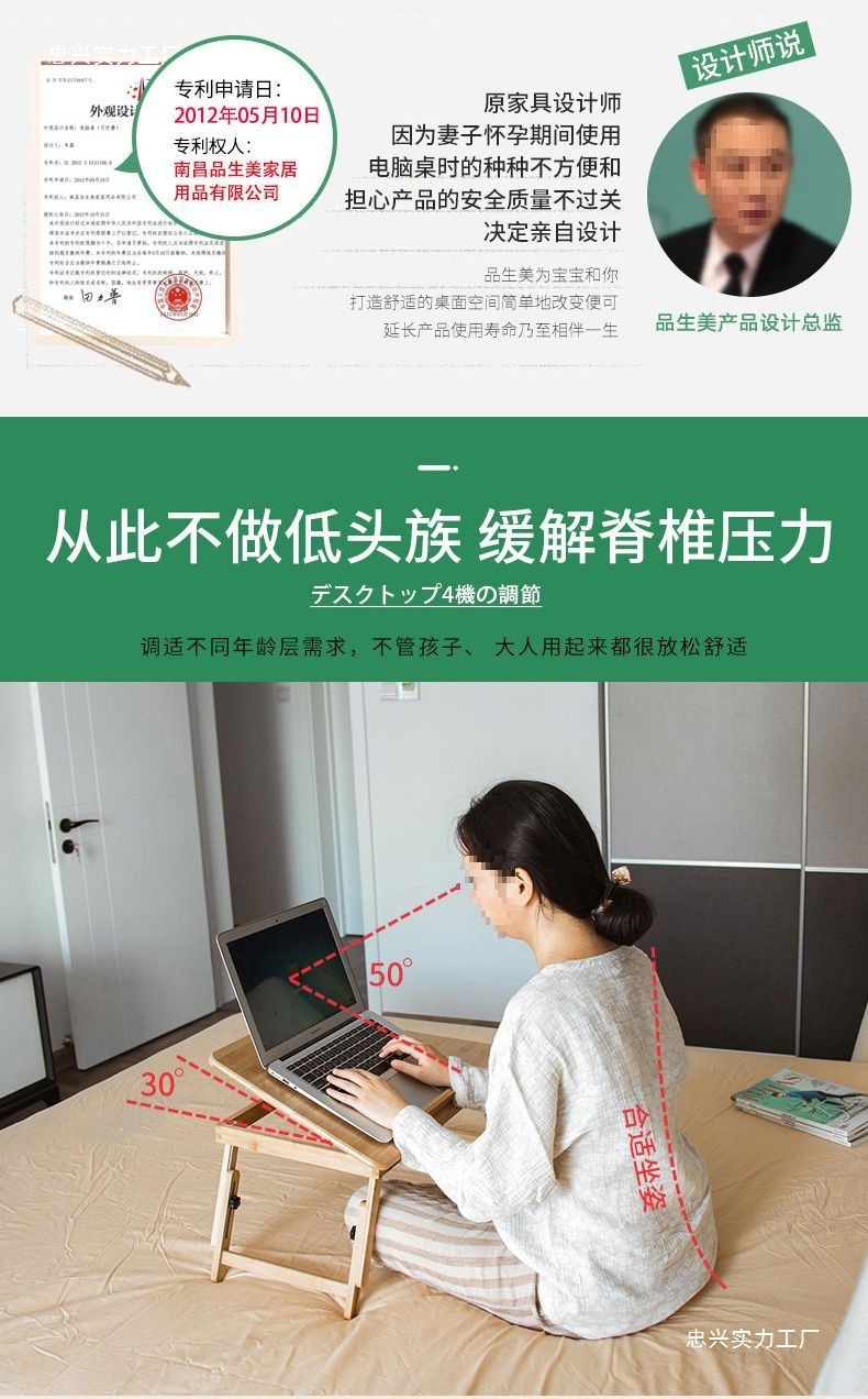 Mesa de computadora portátil de cama elevación de escritorio plegable alta mesa de dormitorio de estudiantes pequeña mesa de estudio