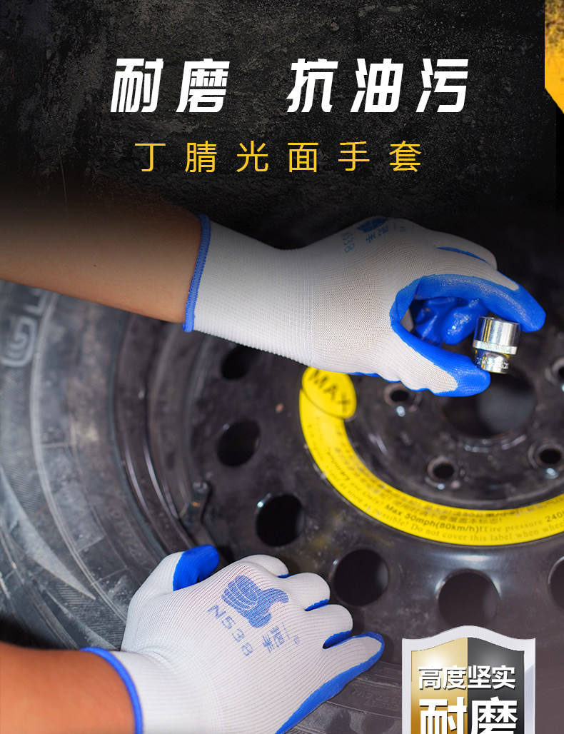 Guantes de protección laboral Dengsheng guantes de goma de nitrilo de una manija N538 resistentes al desgaste duraderos con trabajo cómodo de goma