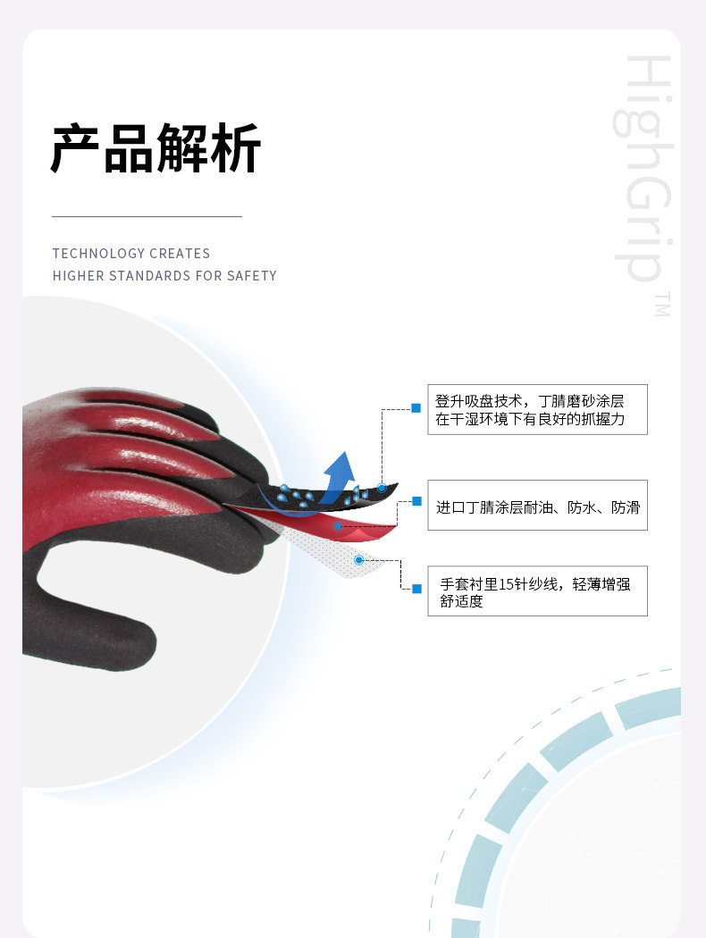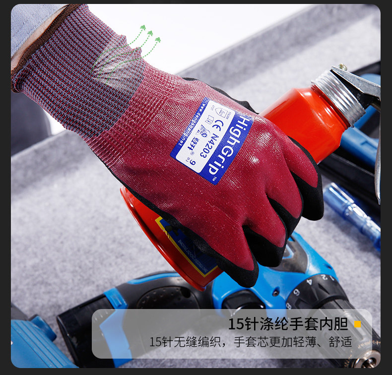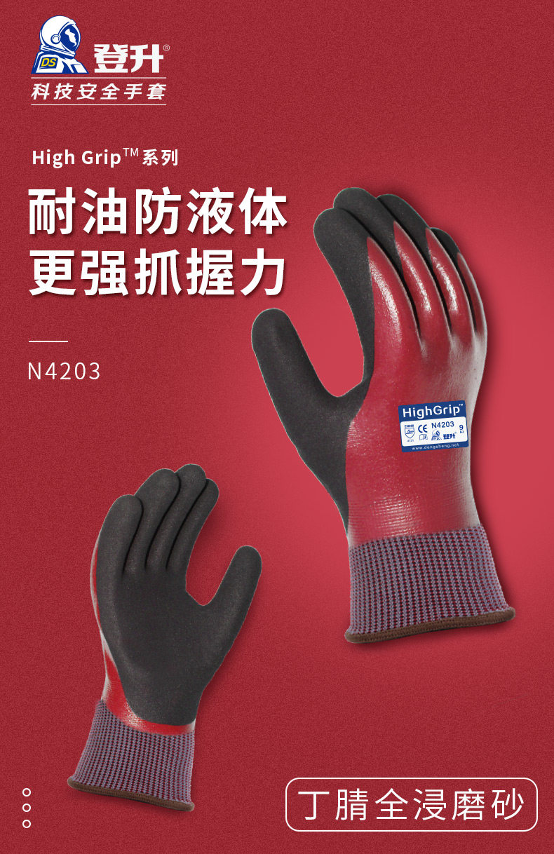 Dengsheng guantes de protección laboral N4203 nitrilo inmersión resistente al desgaste antideslizante impermeable adhesivo trabajo de pesca de goma para hombres