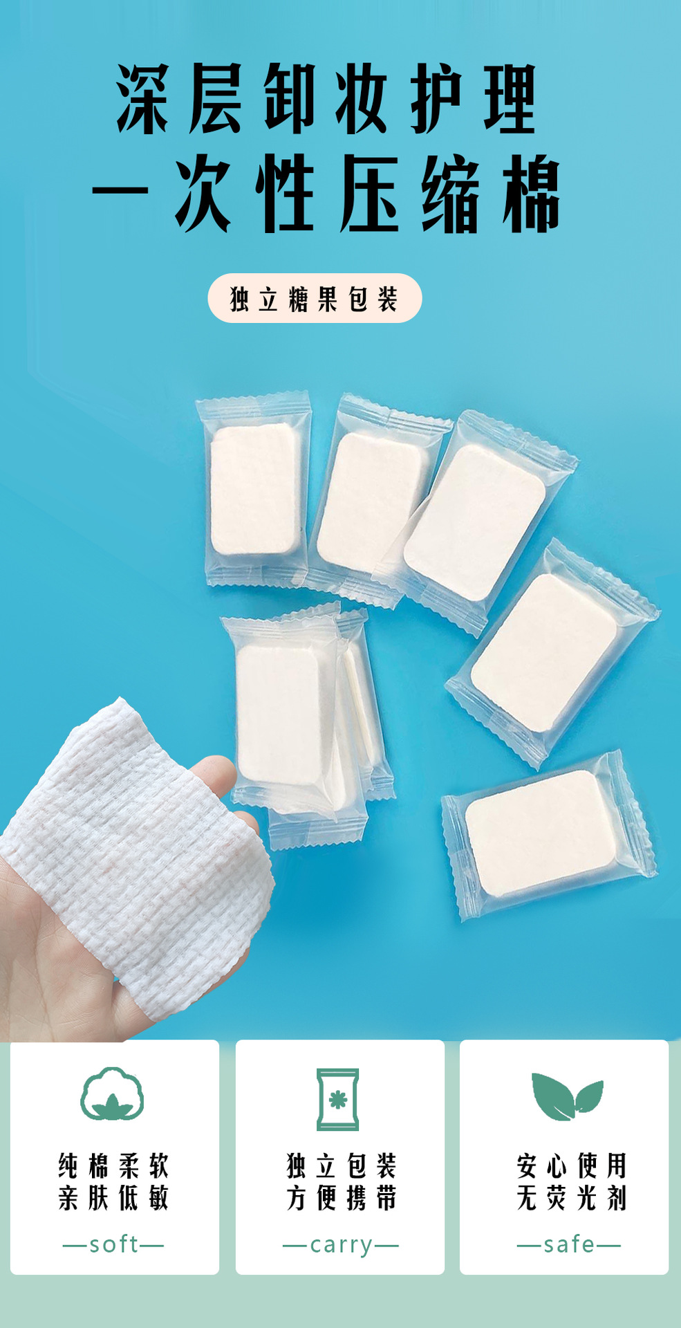 Algodón de maquillaje comprimido para la tienda de bordado, algodón de maquillaje desechable, algodón grueso portátil, ropa de belleza
