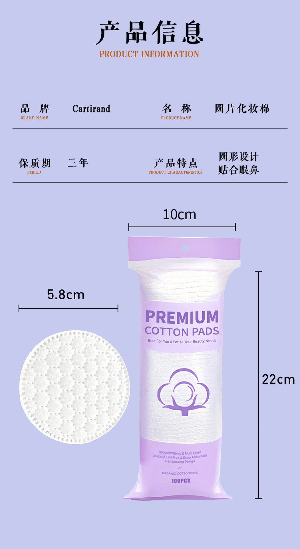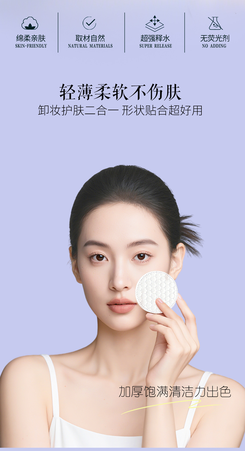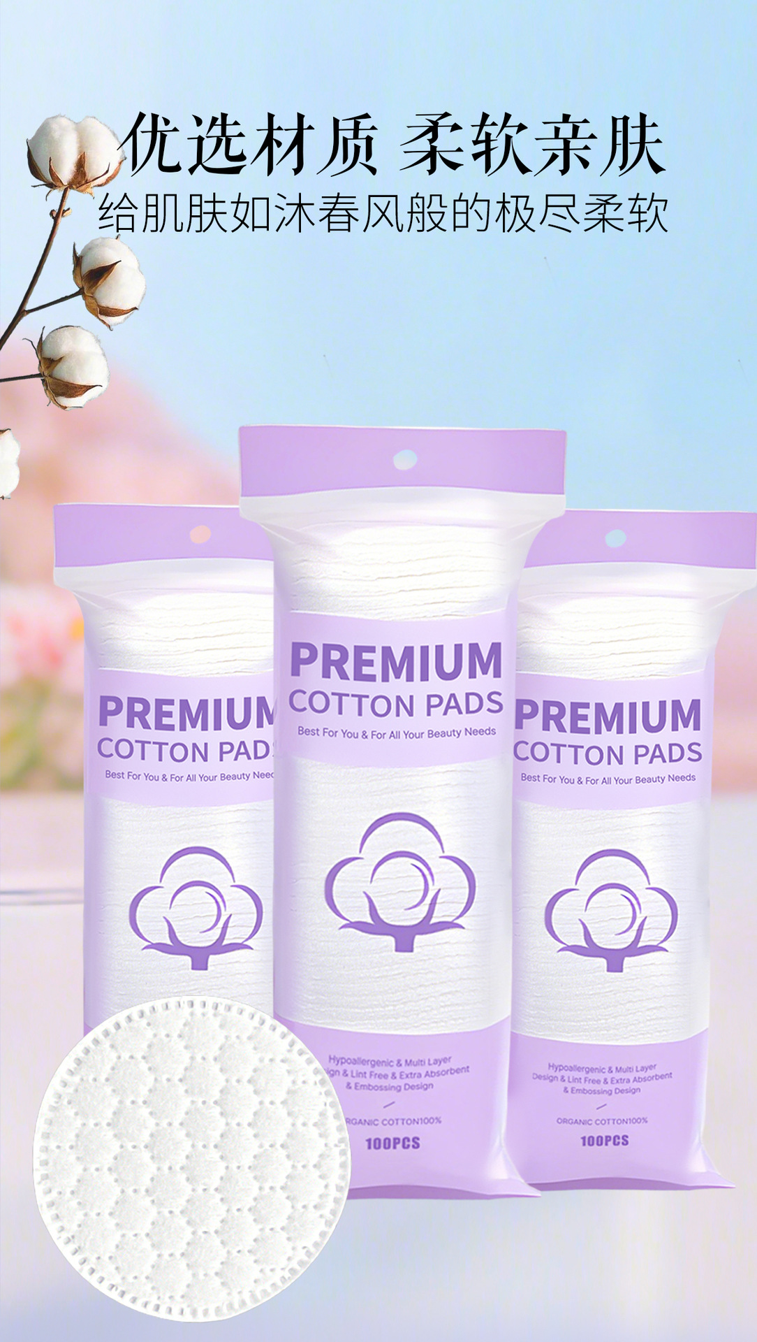 Copo de algodón redondo en inglés transfronterizo, algodón desechable, algodón desmaquillante, algodón agradable para la piel, algodón desmaquillante grueso, comercio exterior
