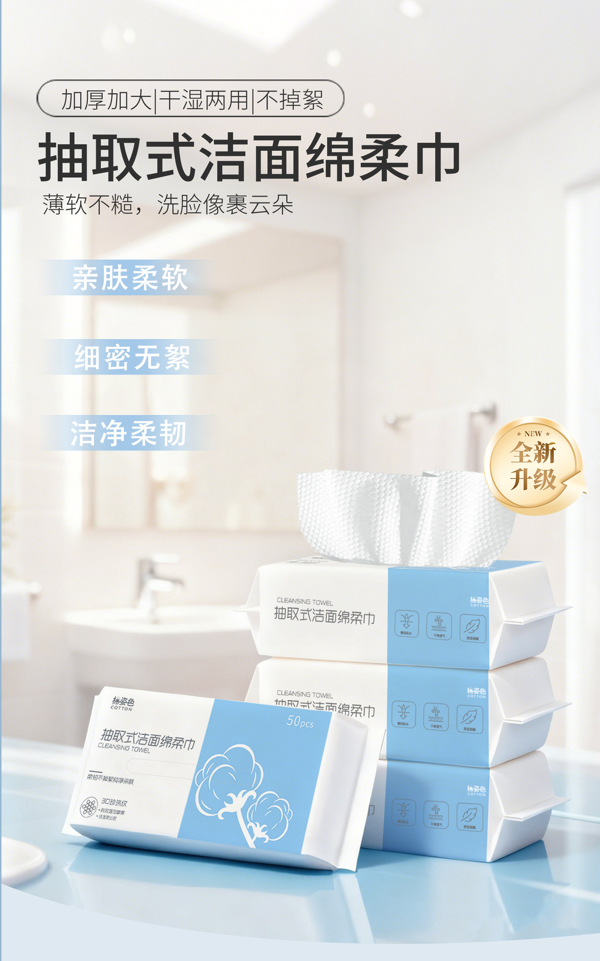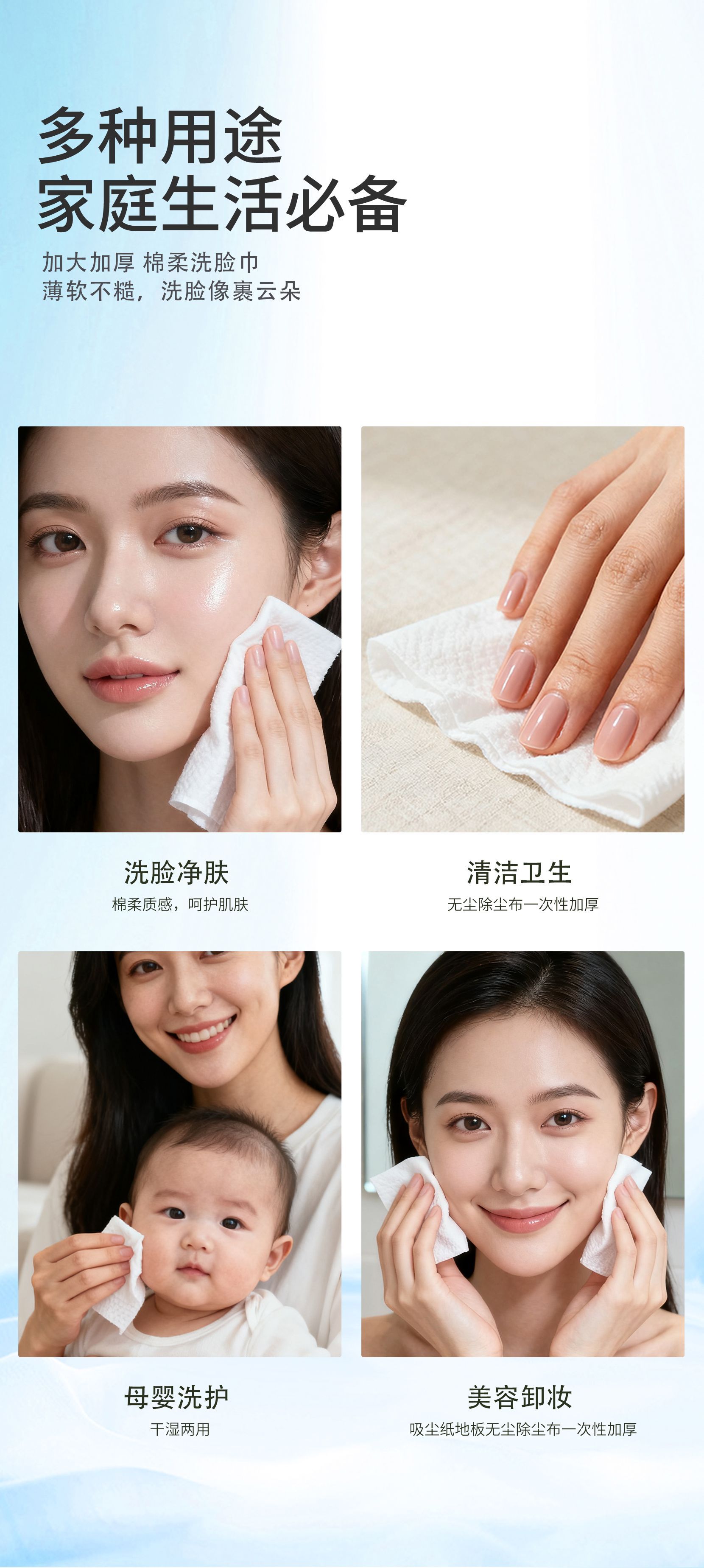 Toalla facial desechable espesa y grande toalla facial extraíble toalla facial de algodón suave toalla facial seca y húmeda de doble uso