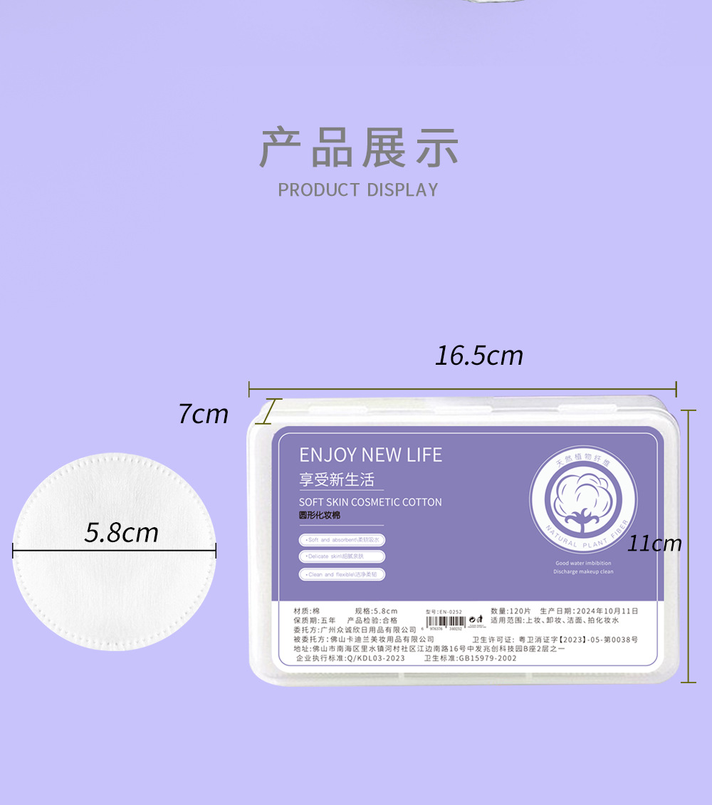 Desmaquillante de piezas redondas, algodón, toalla de limpieza seca gruesa, almohadilla de algodón de maquillaje, almohadilla de algodón de limpieza facial de 5,8 cm, personalización OEM OEM