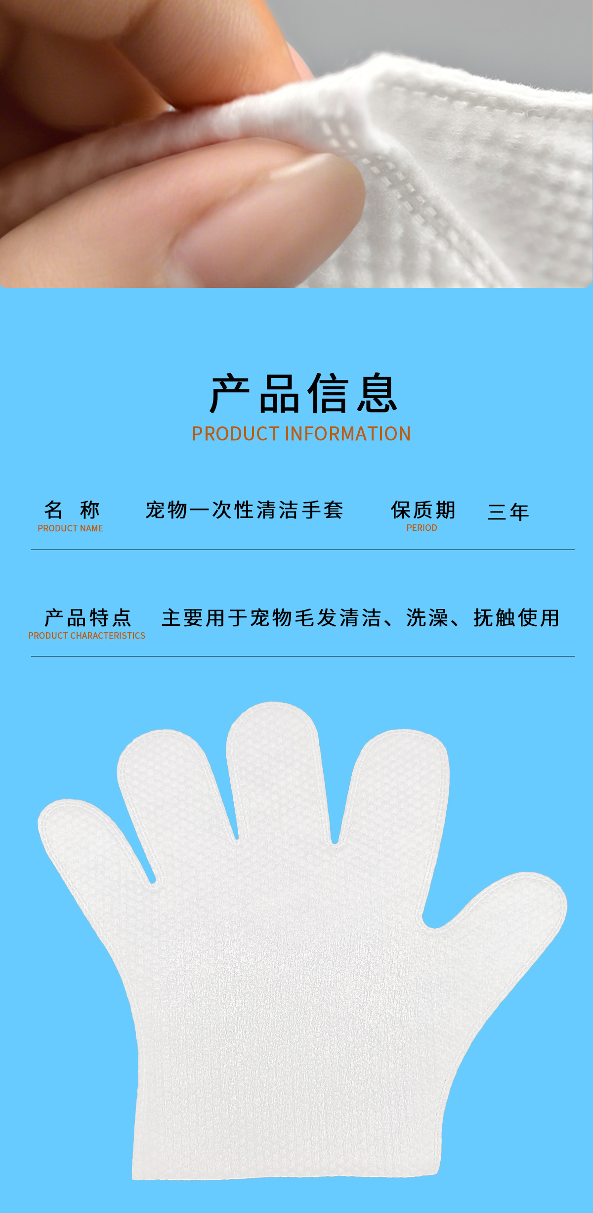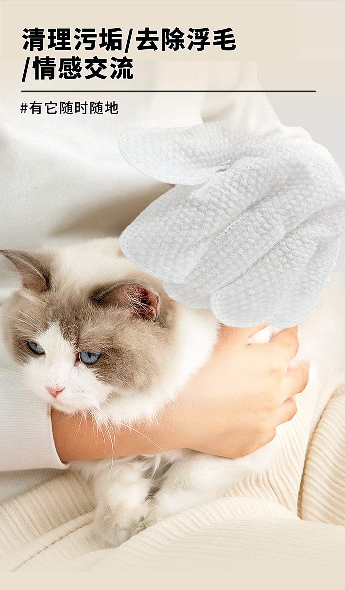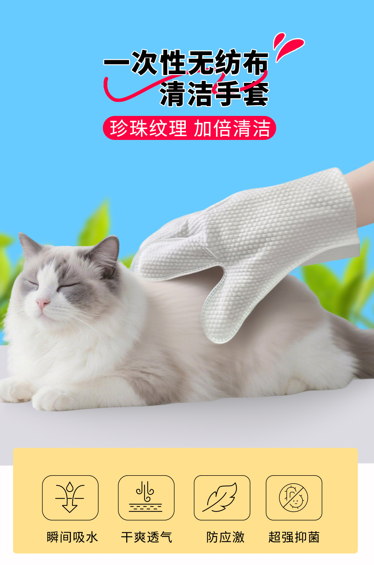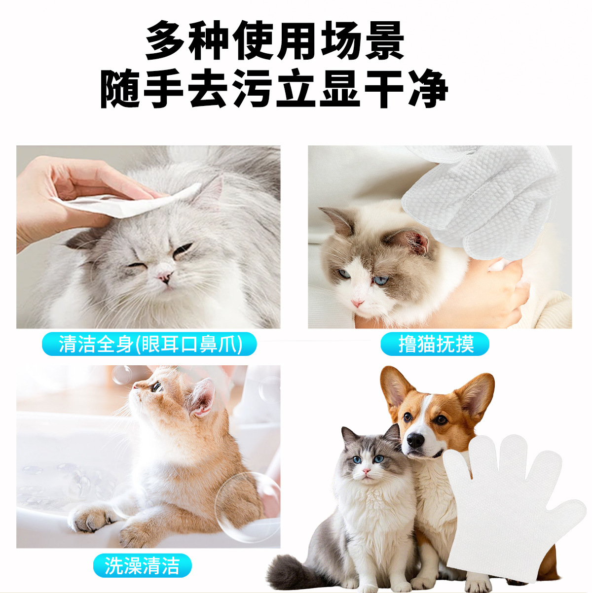 Guantes sin lavado para mascotas desechables para limpiar gatos y perros guantes de baño limpieza en seco desodorizante guantes de laminación