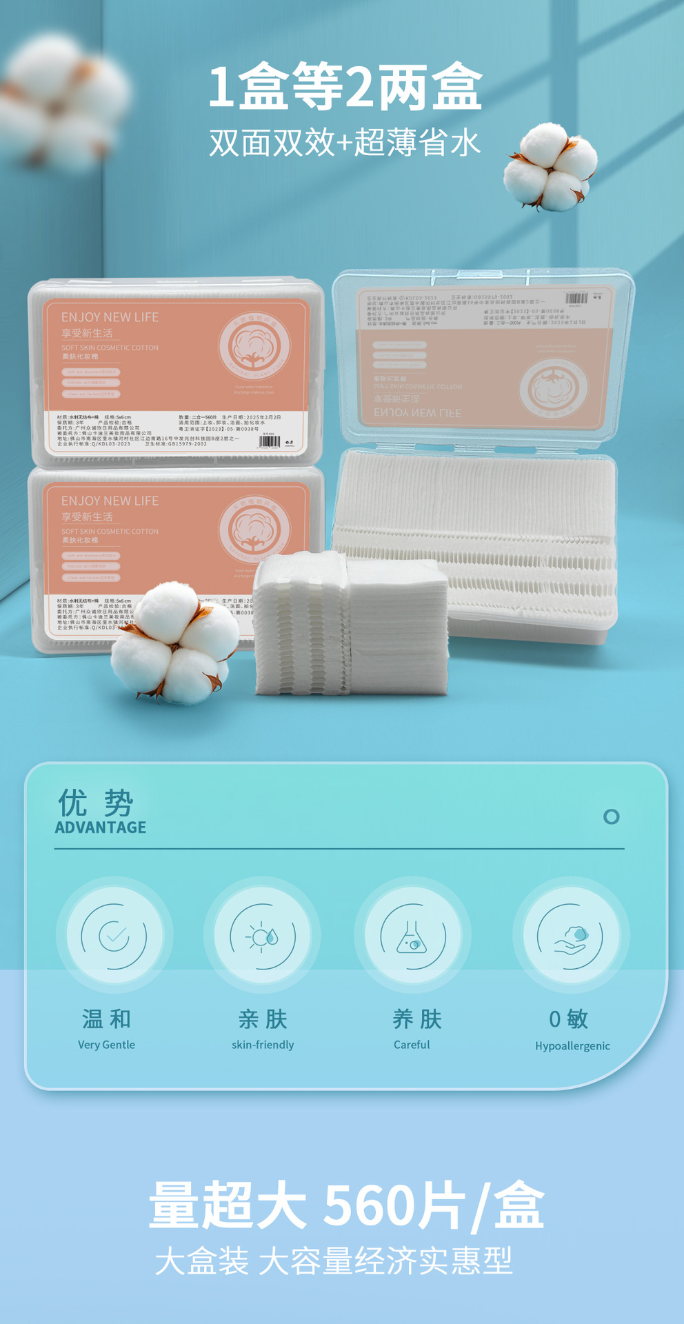 560 piezas de algodón cosmético dos en uno, desmaquillador facial, desmaquillador, desmaquillador, algodón de limpieza gruesa, conjunto de algodón