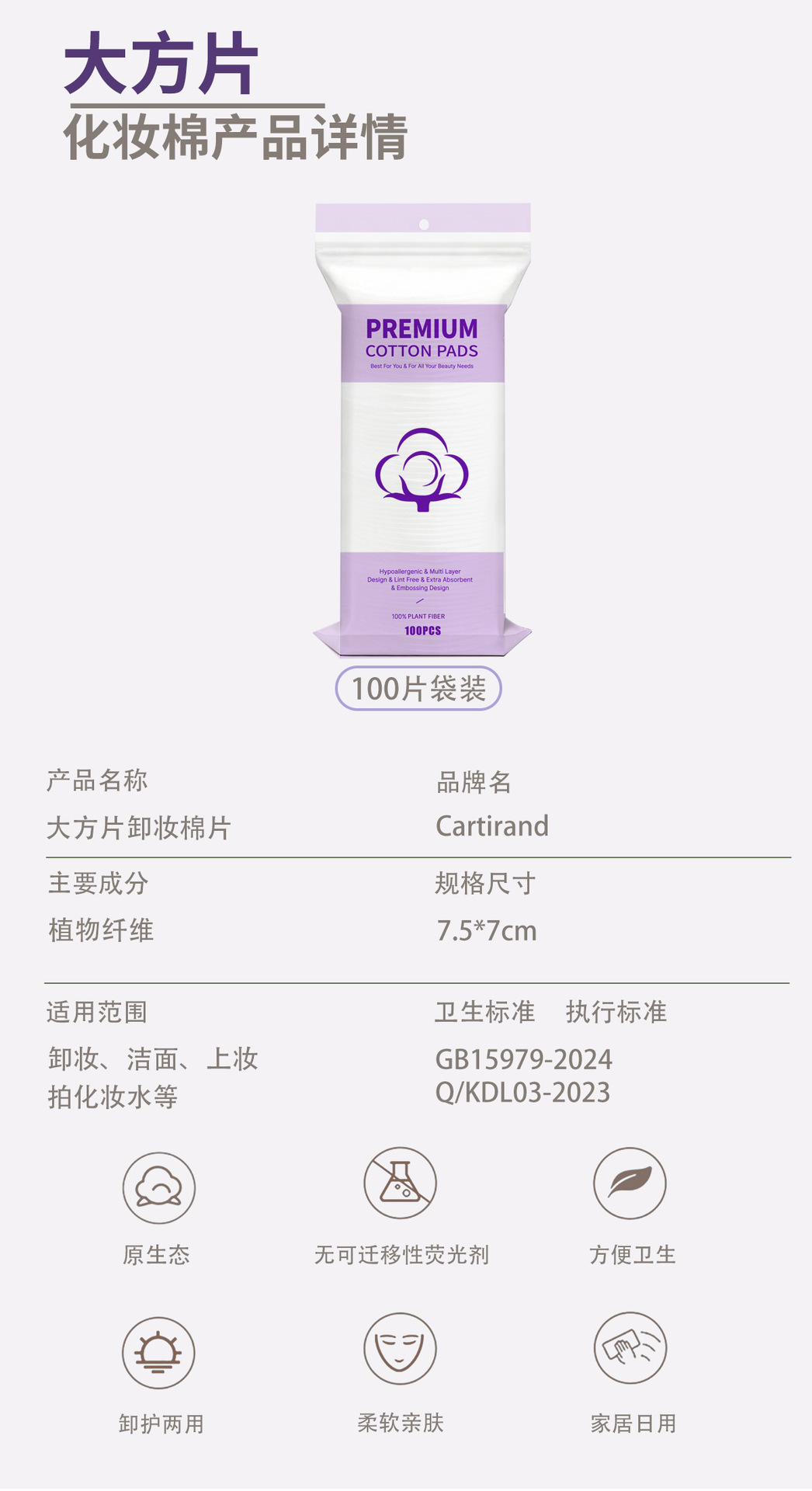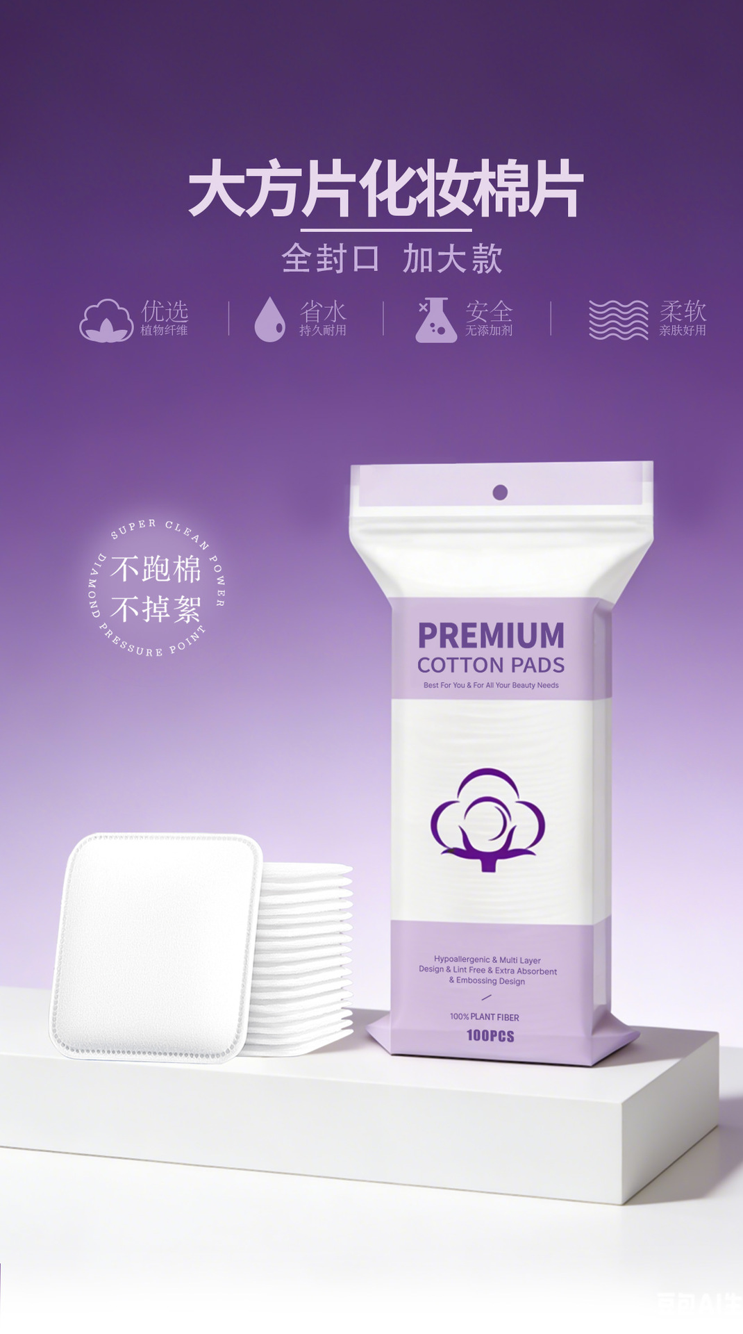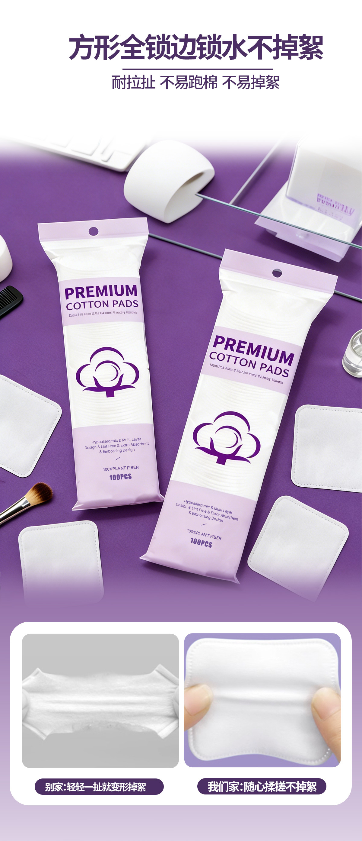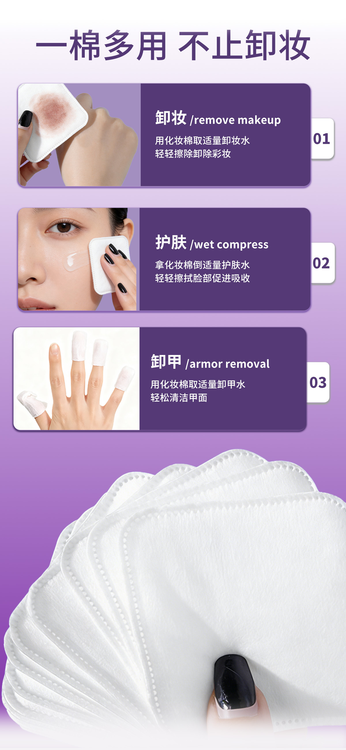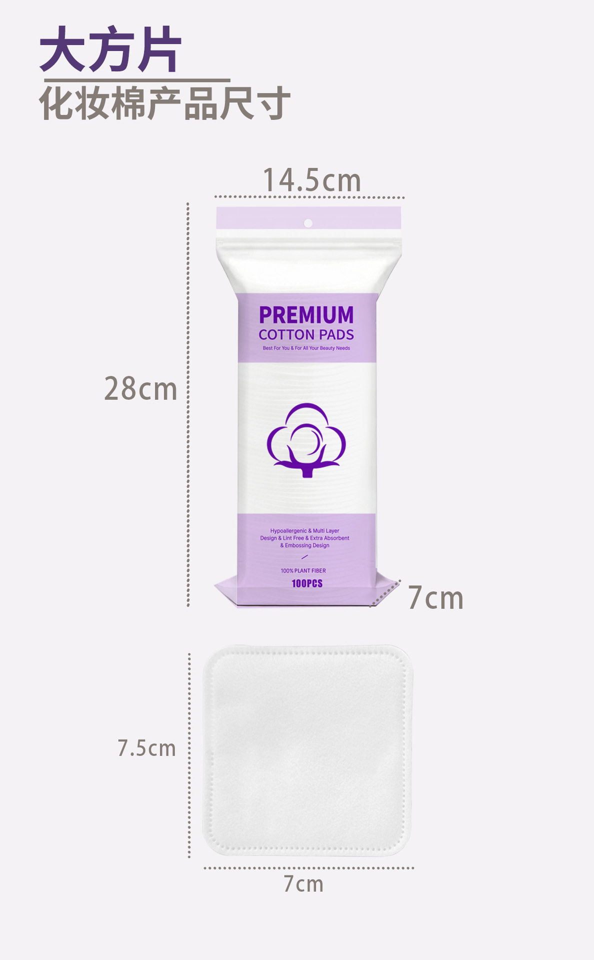 Inglés paquete de algodón cosmético de gran tamaño, algodón grueso, algodón de limpieza especial para la cara, algodón desmaquillable, gran comercio exterior transfronterizo