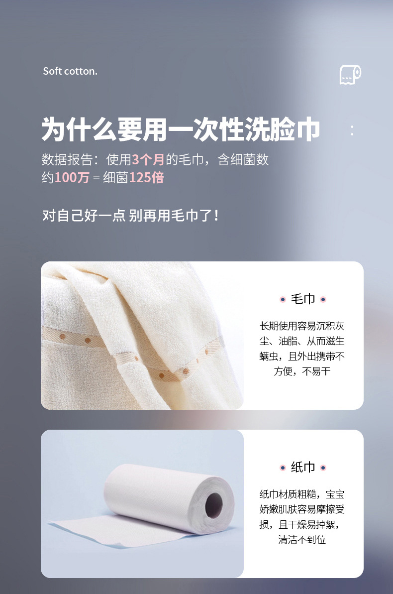 Toalla de lavado de cara desechable Espesar Absorbente 600g Toalla de limpieza facial de rollo grande Toalla suave de algodón Patrón de perlas Personalización OEM
