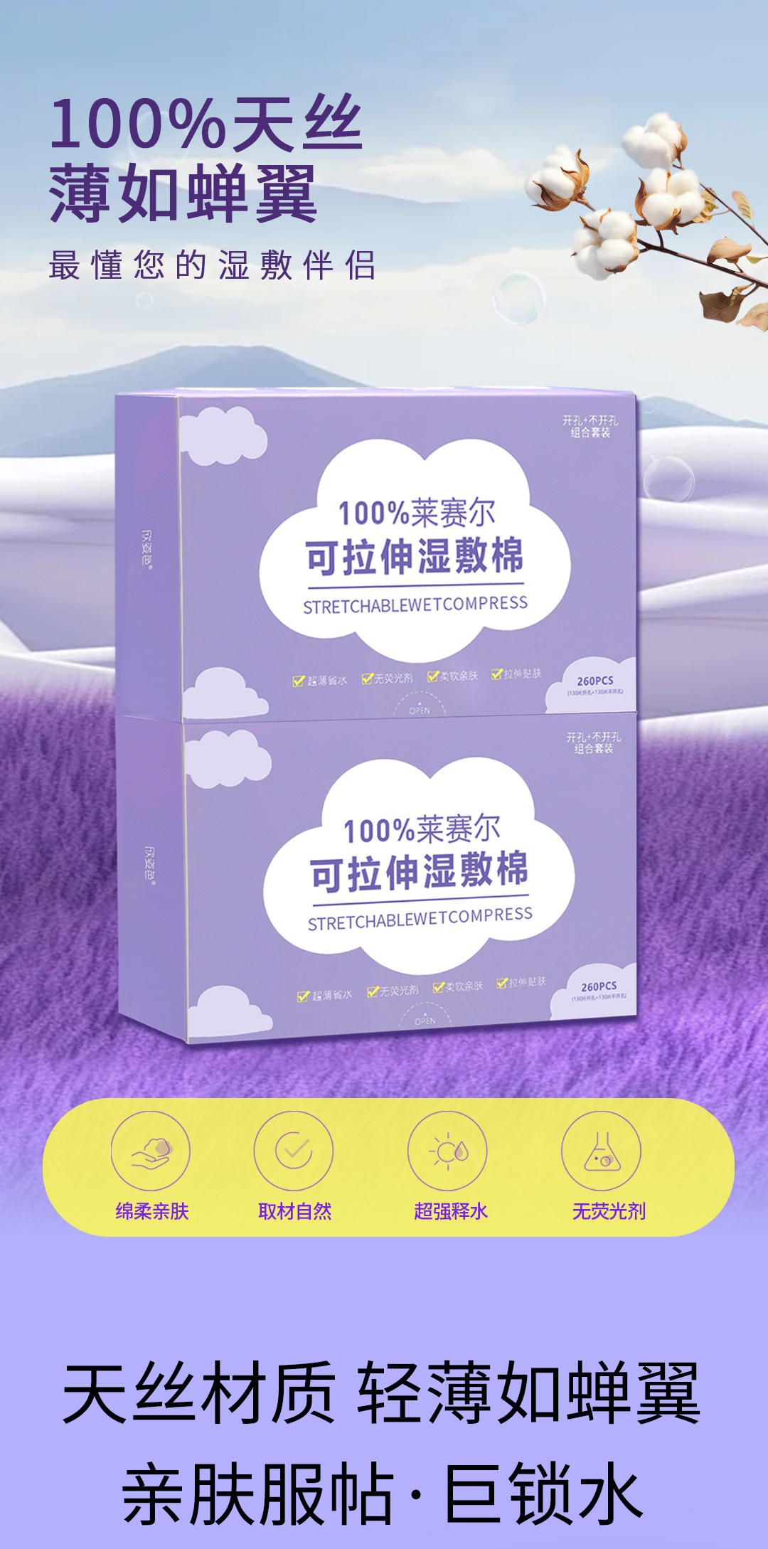 algodón húmedo estirable con agujeros de nariz abiertos algodón maquillaje húmedo especial algodón estirado delgado paquete de toallas húmedes
