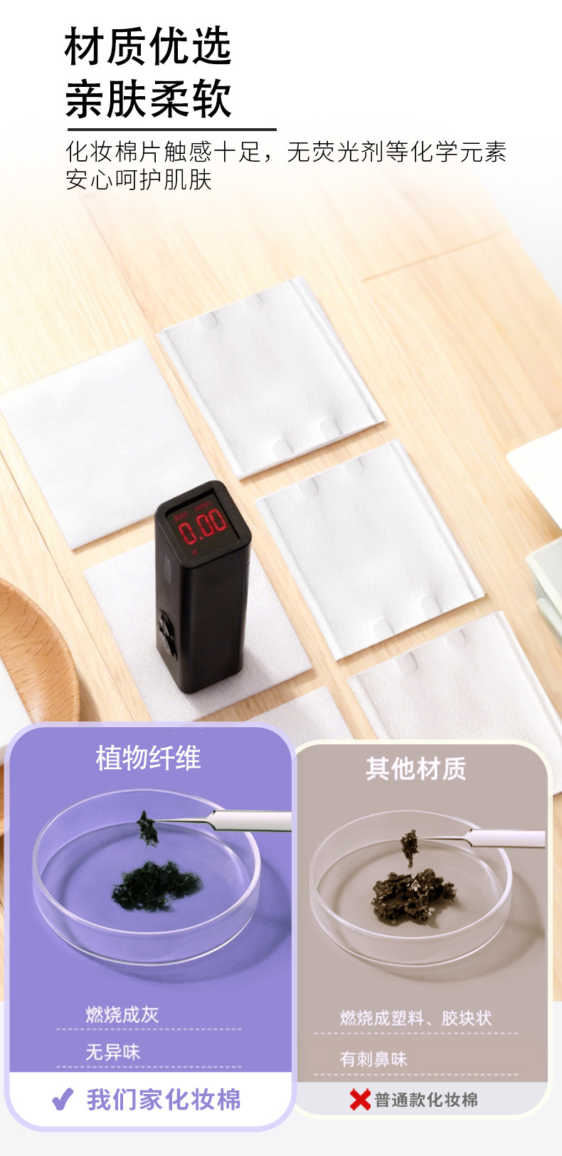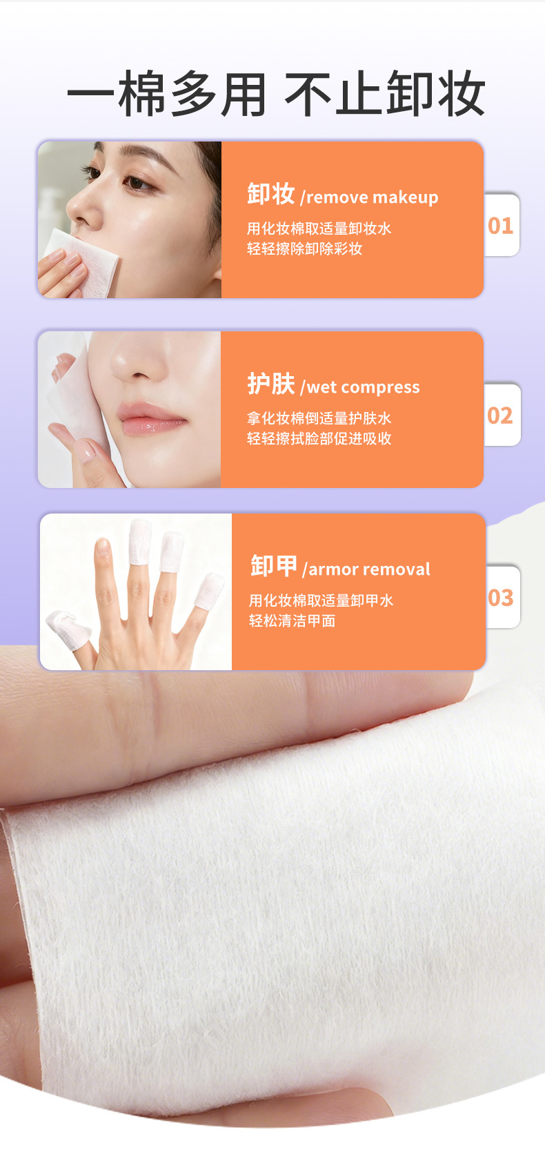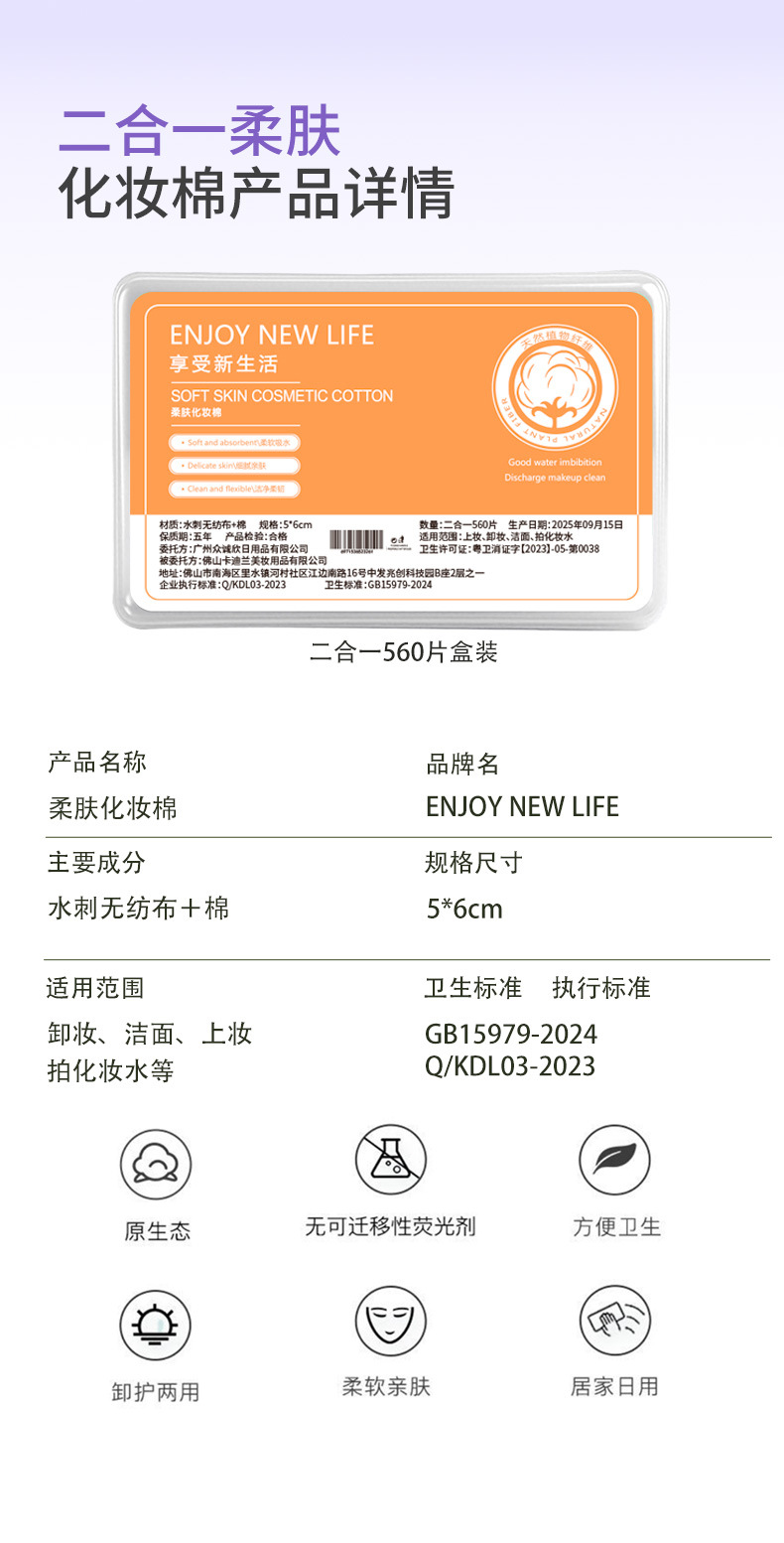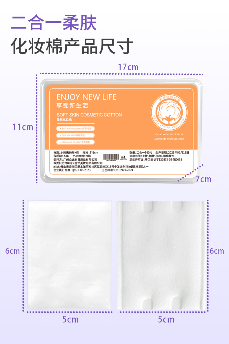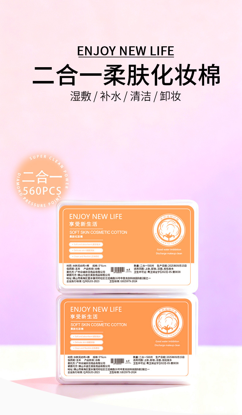 2 - en - 1 algodón cosmético de algodón grueso delgado en caja 560 piezas de algodón desechable para salón de belleza