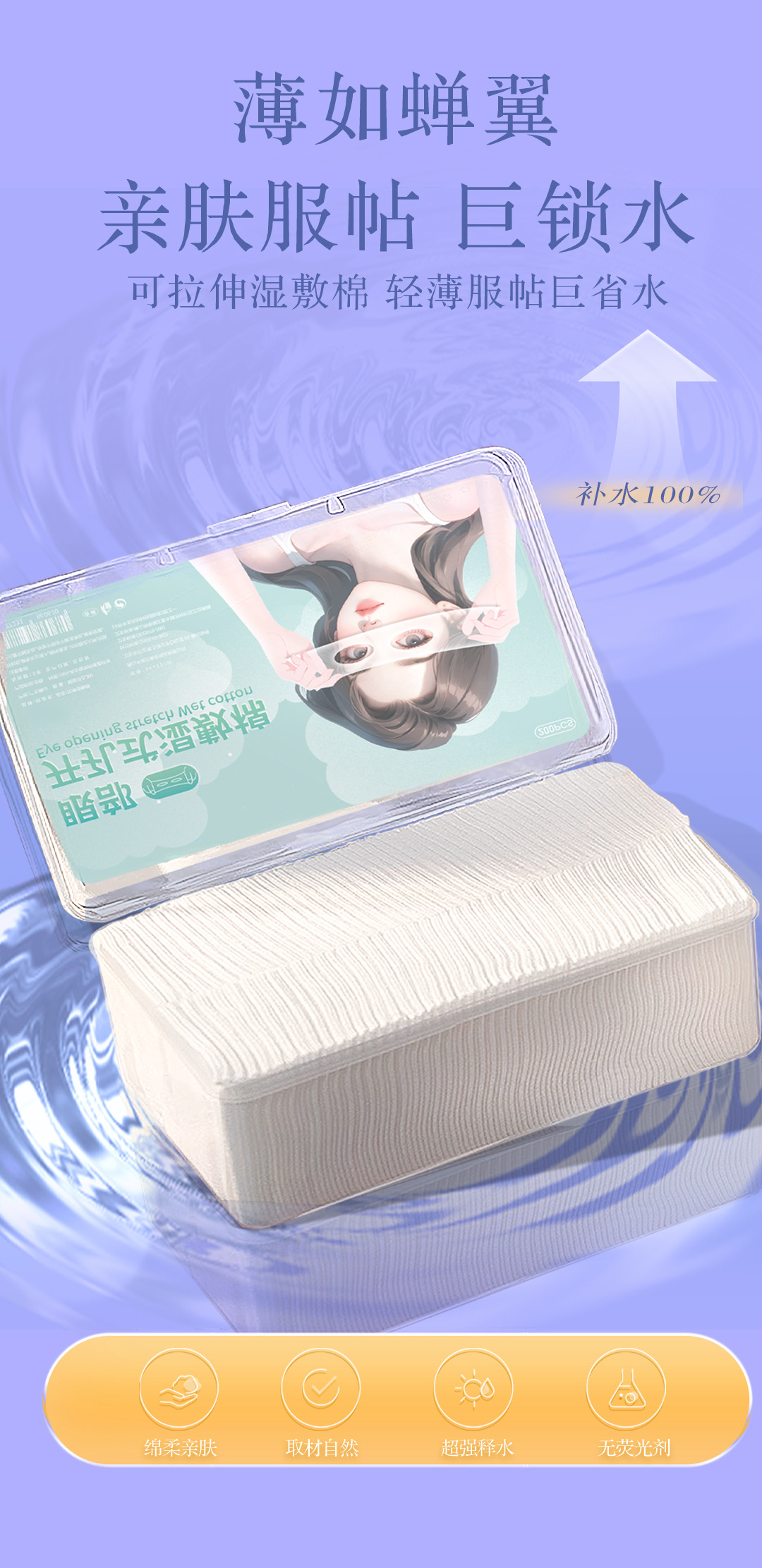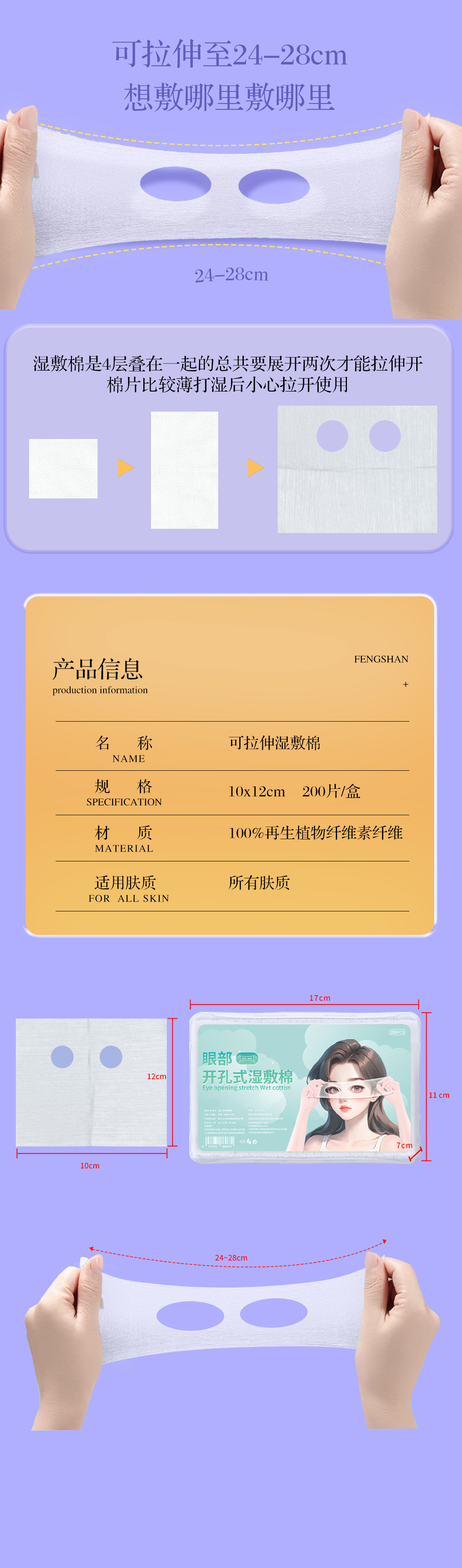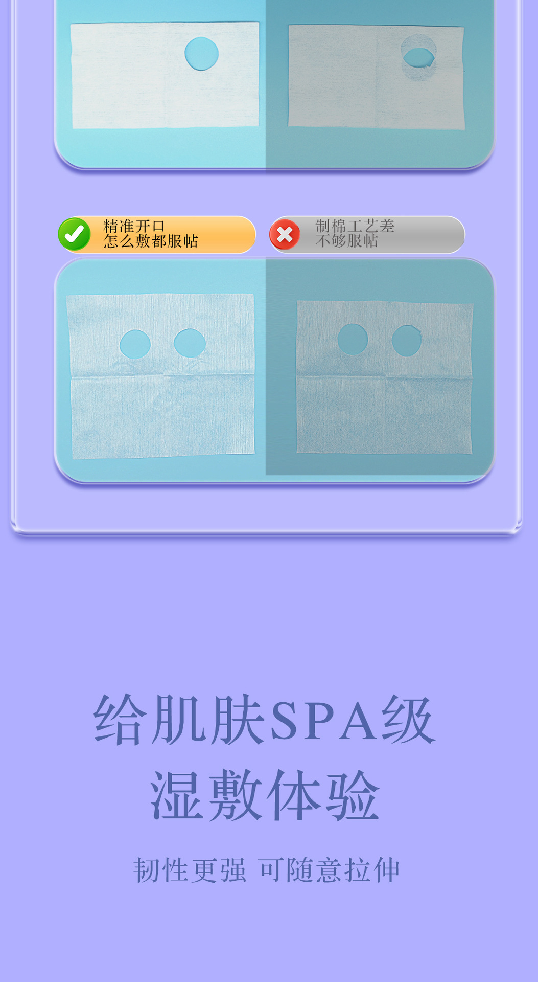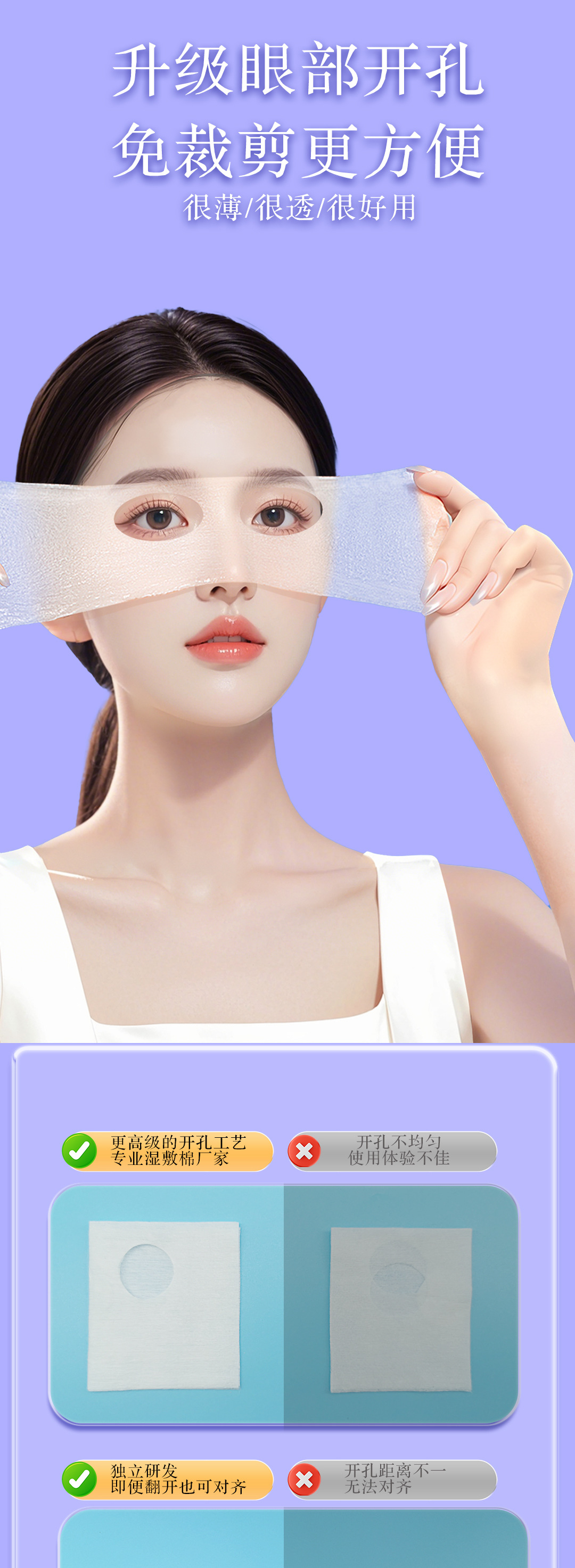 Ojos abiertos, toallas húmedas de algodón estirable para la cara, máscara de toallas húmedas de Tiansi estirable para algodón cosmético