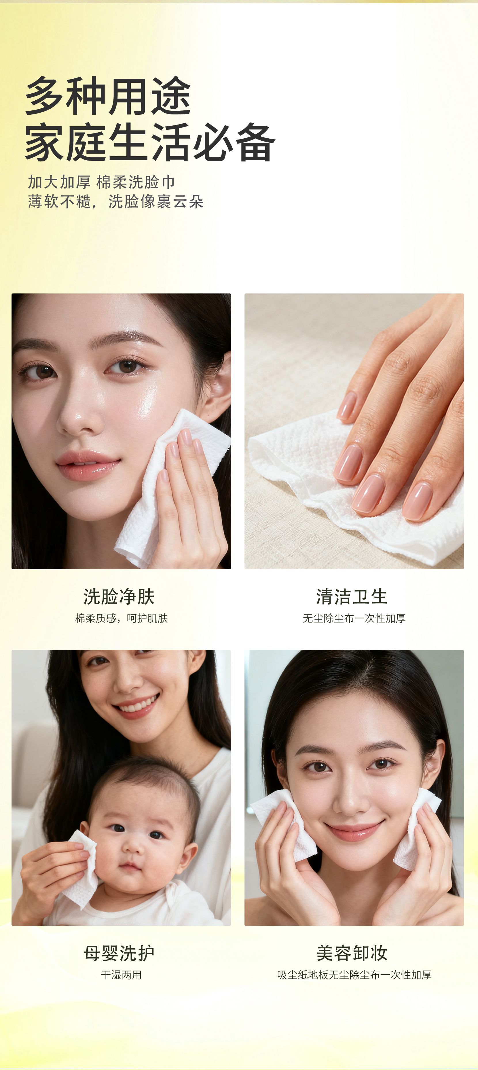 Toallas faciales desechables para aumentar el espesor de la piel suave no se desprende toallas faciales de algodón toallas de limpieza facial al por mayor