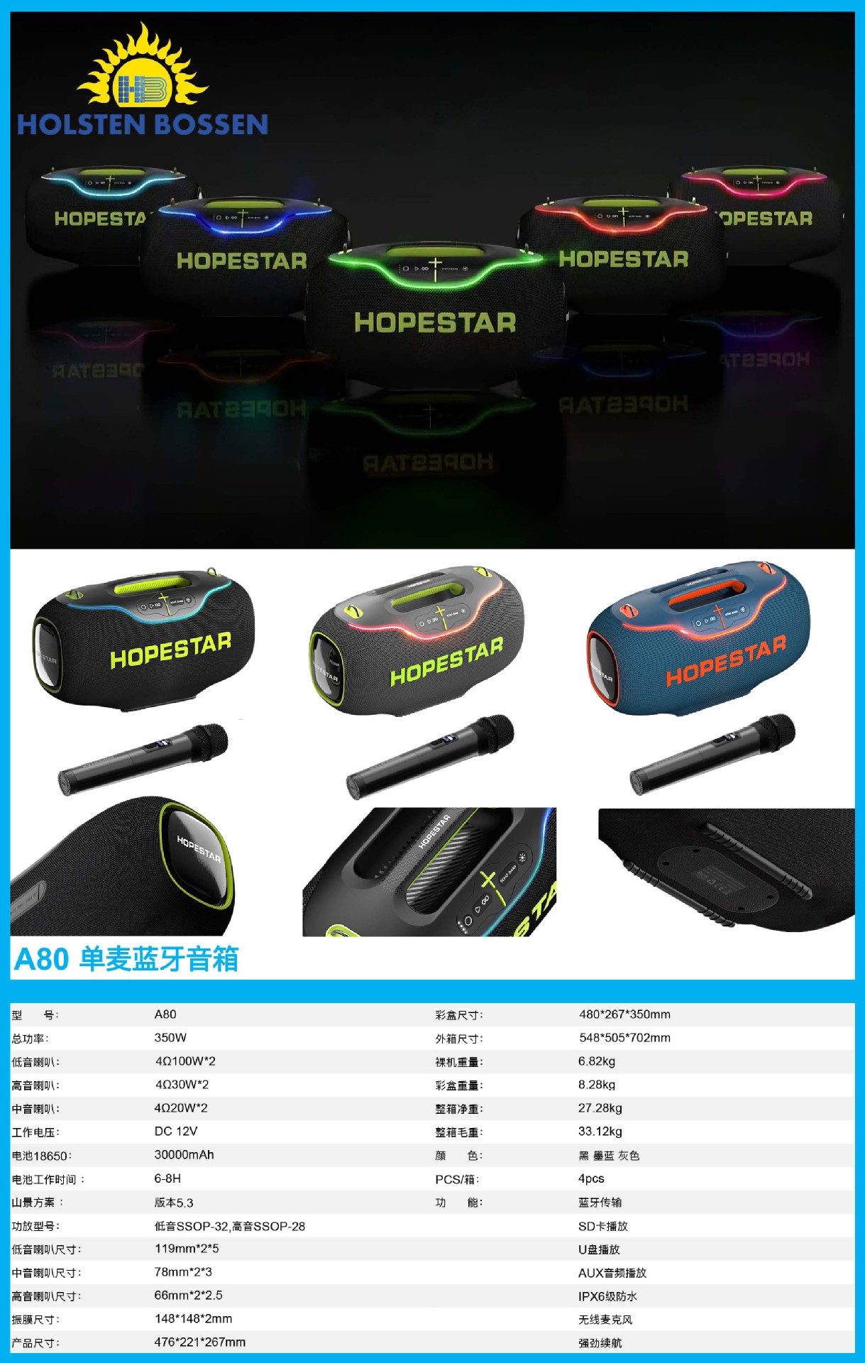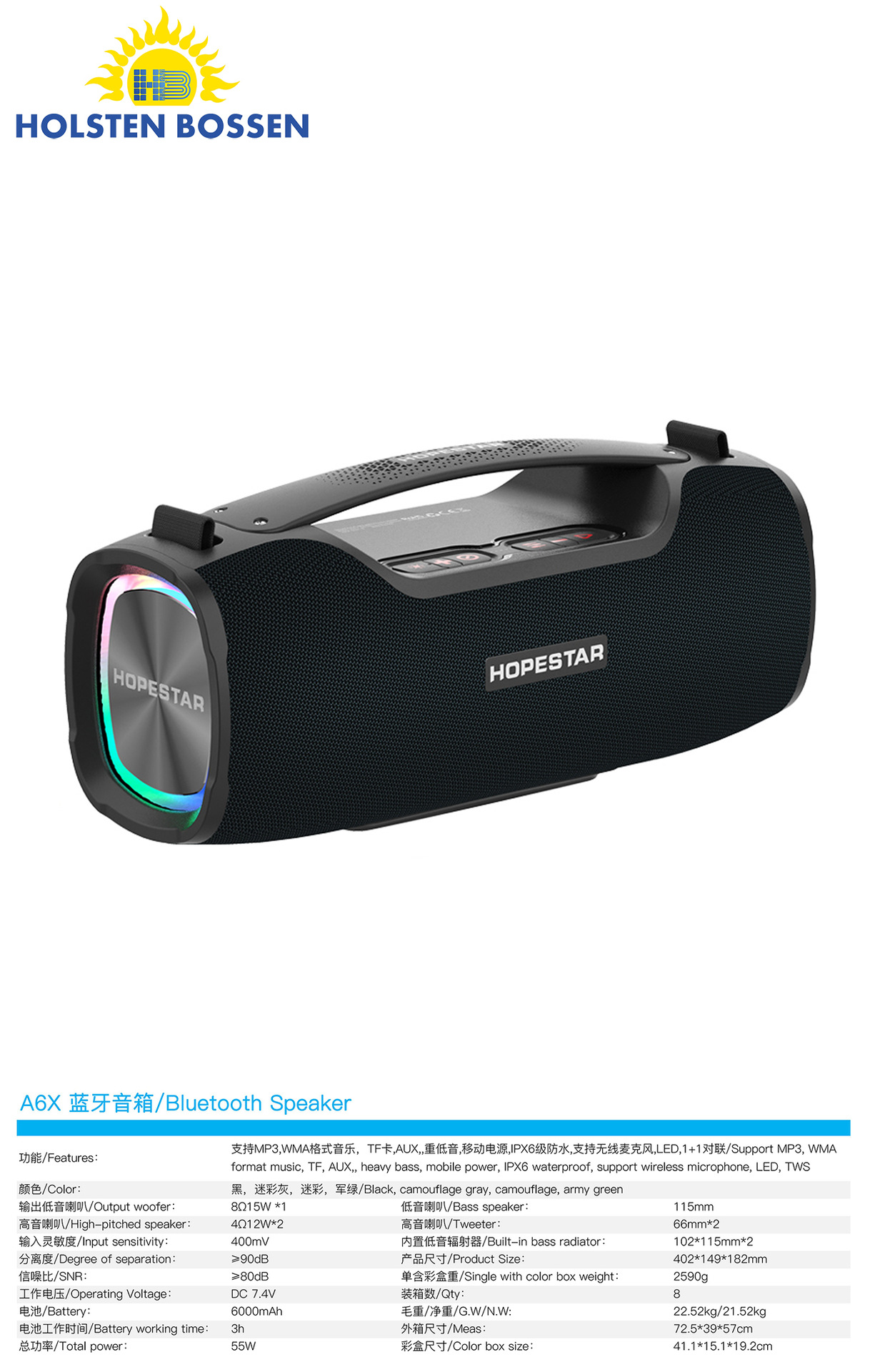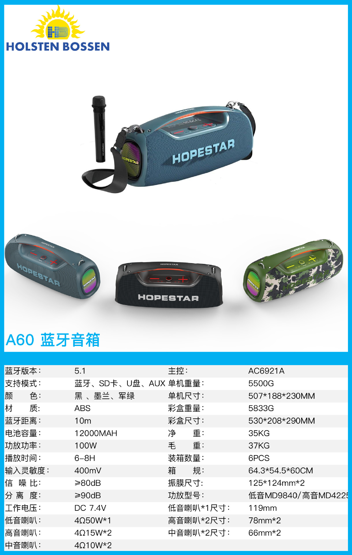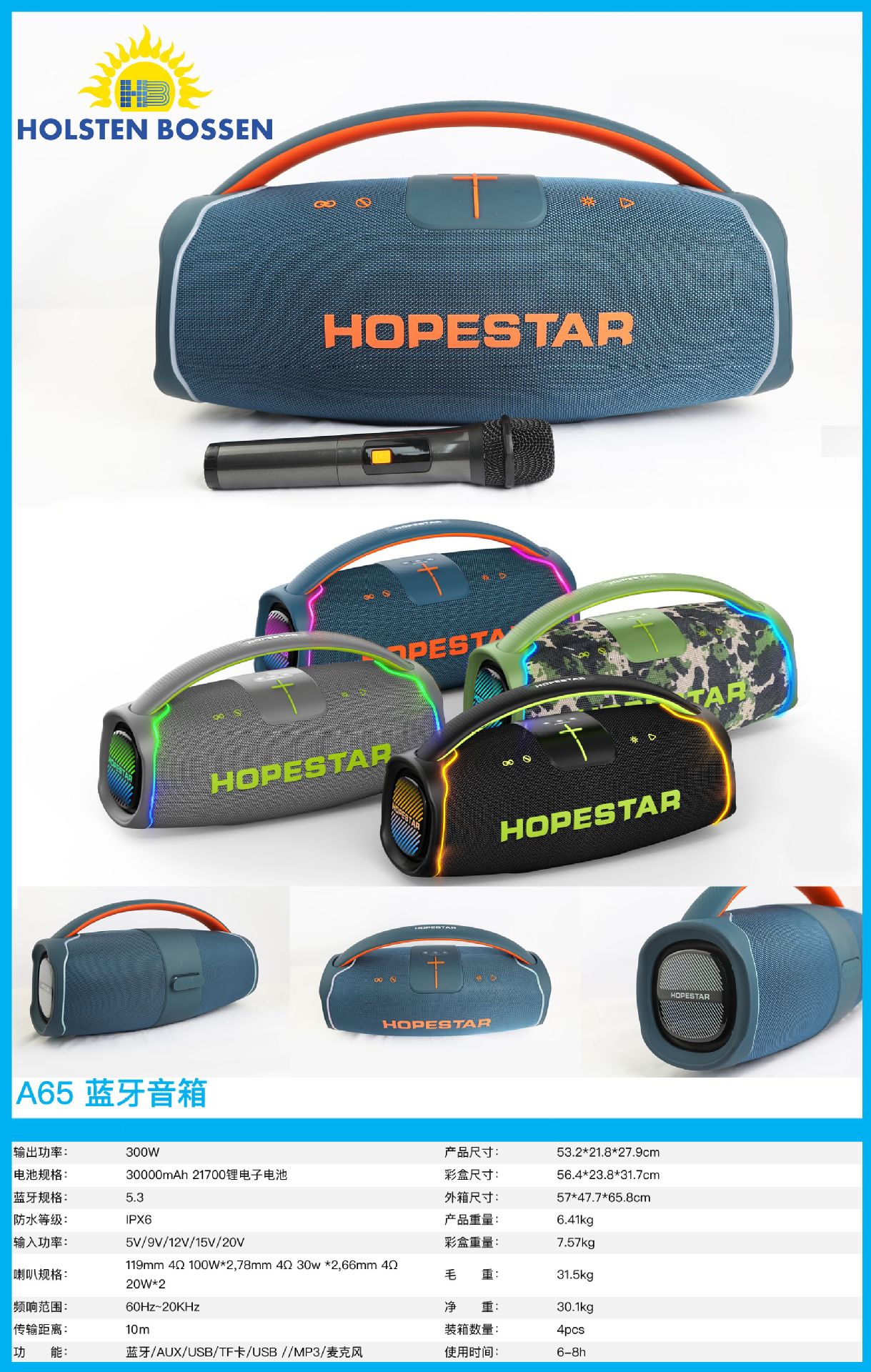 | color | HOPESTAR A80 Single trigo negro,HOPESTAR A80 single trigo azul,HOPESTAR A60 negro,HOPESTAR A60 azul oscuro,HOPESTAR A60 color camuflaje,HOPESTAR A65 negro,HOPESTAR A65 gris,HOPESTAR A65 azul oscuro,HOPESTAR A65 color camuflaje,HOPESTAR A6club,HOPESTAR A50 negro,HOPESTAR A50 azul mar,HOPESTAR A50 gris,HOPESTAR A50 verde militar,HOPESTAR A50 amarillo fluorescente,Altavoz Bluetooth HOPESTAR A85,Altavoz Bluetooth PARTYONE CLUB |