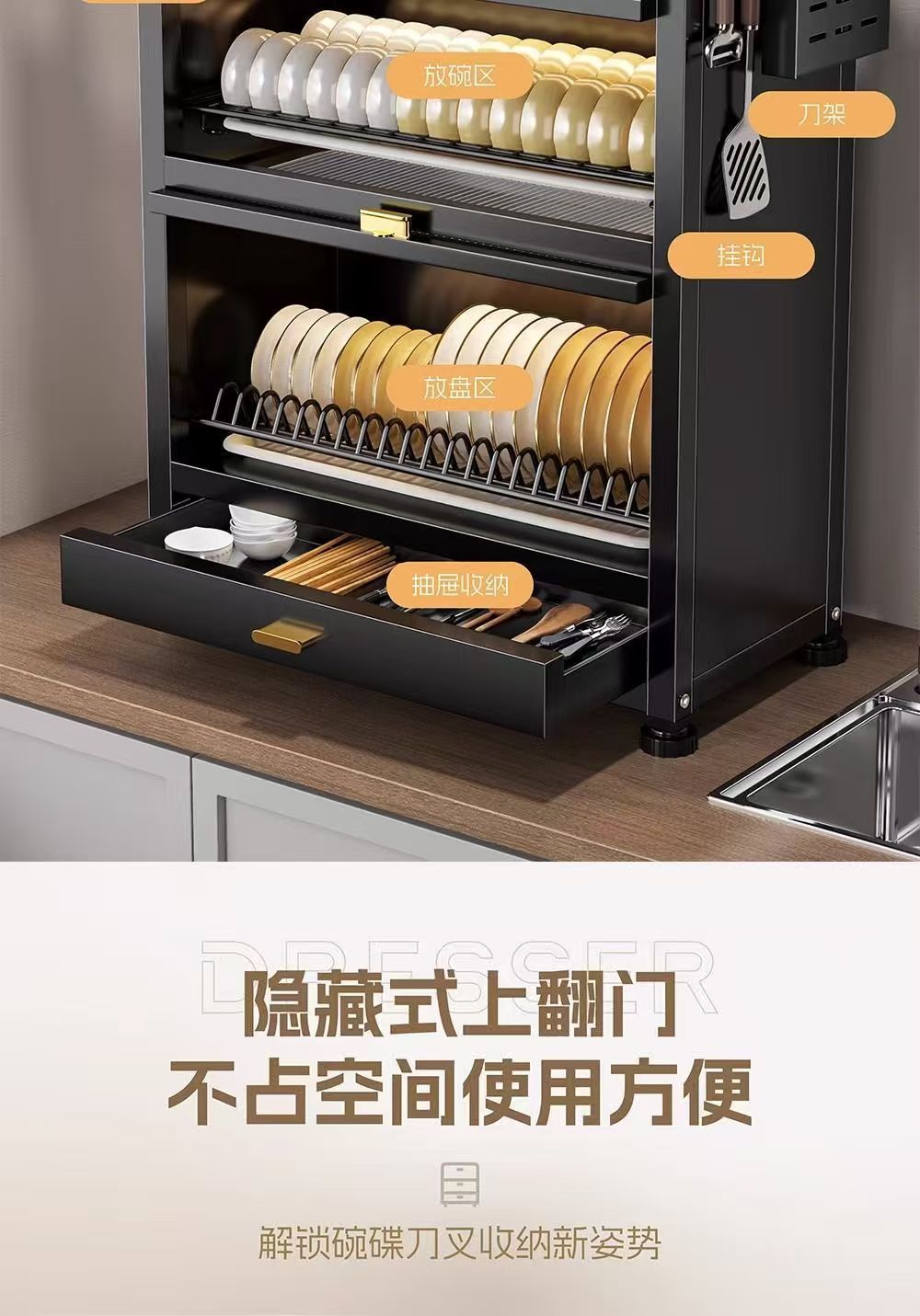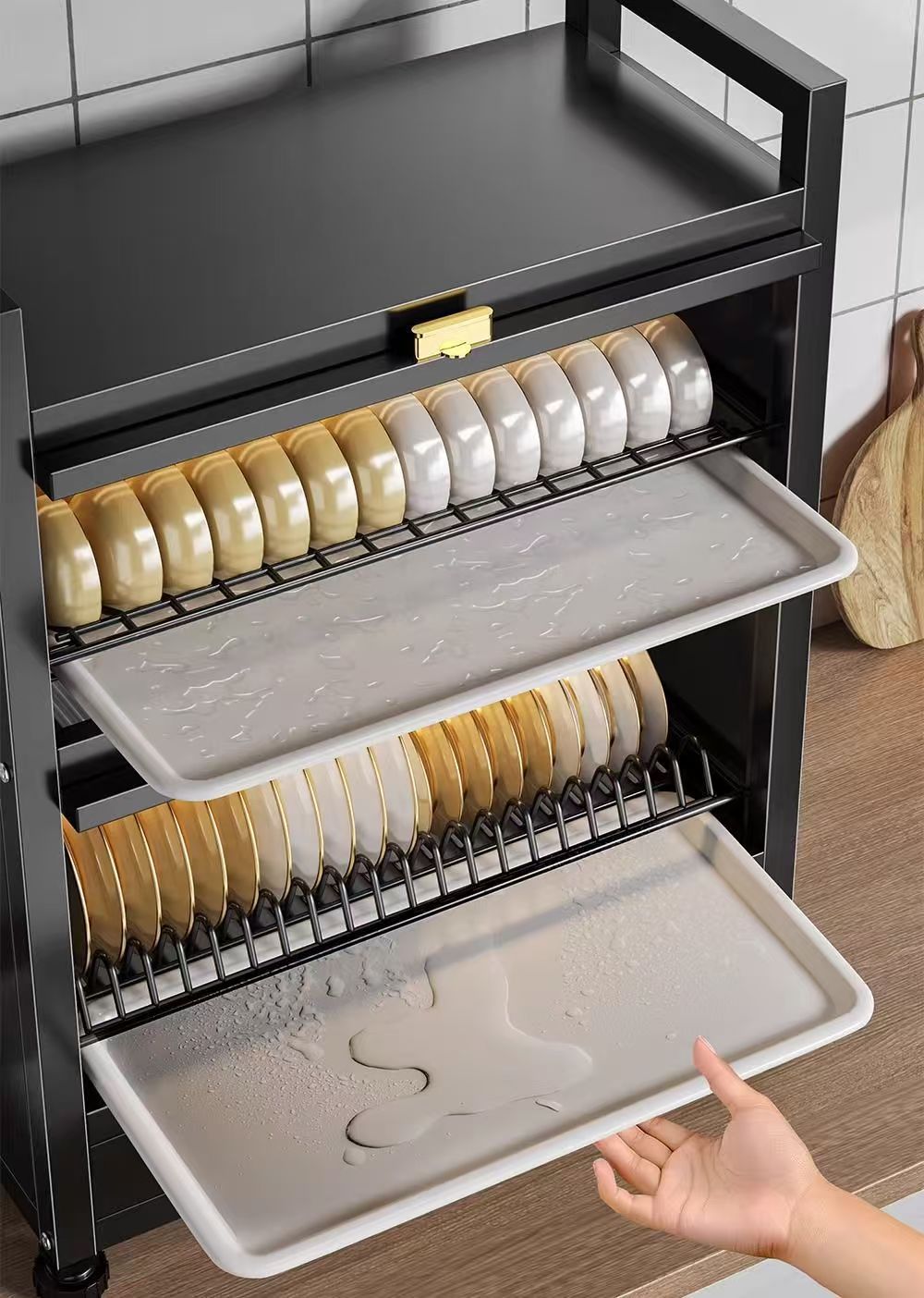 Estante de cocina multicapa con cubierta de drenaje de agua estante de platos multifuncional mesa para plato palillos almacenar cubierta a prueba de polvo