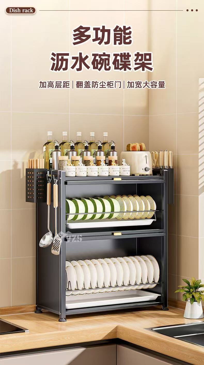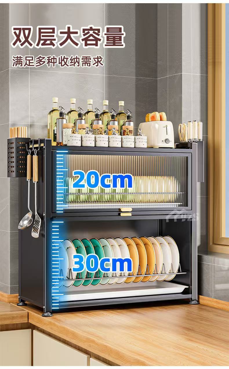 gabinete de platos de cocina doméstica estante de platos de drenaje multifuncional estante de almacenamiento de platos a prueba de polvo en el mostrador pequeño gabinete de almacenamiento de platos