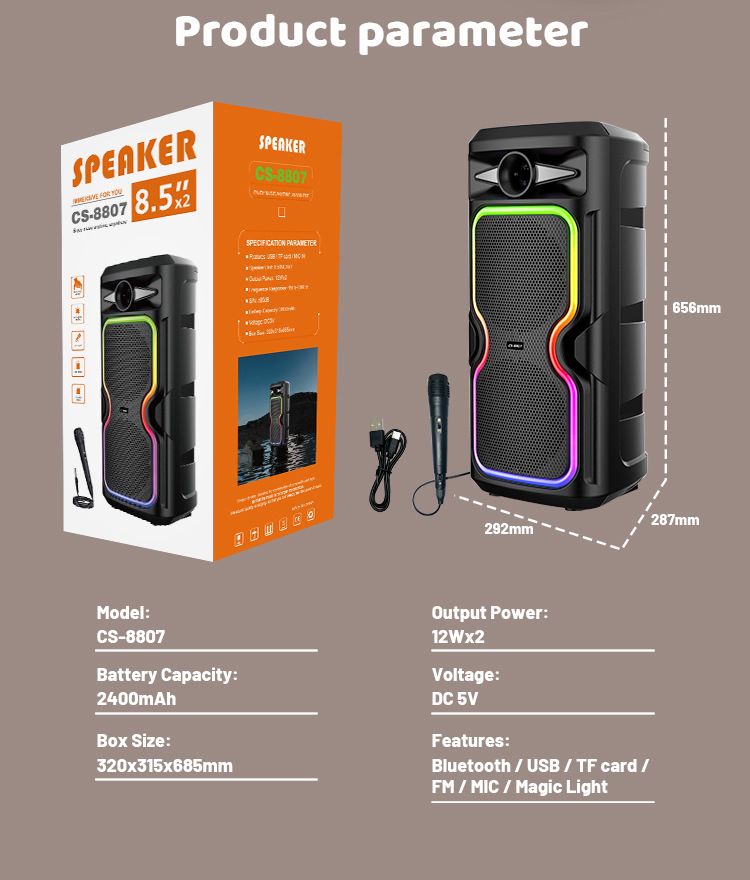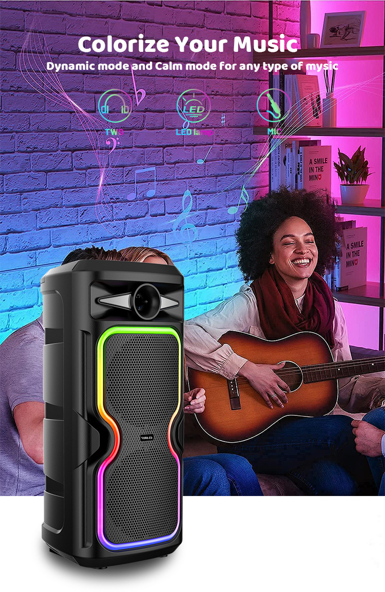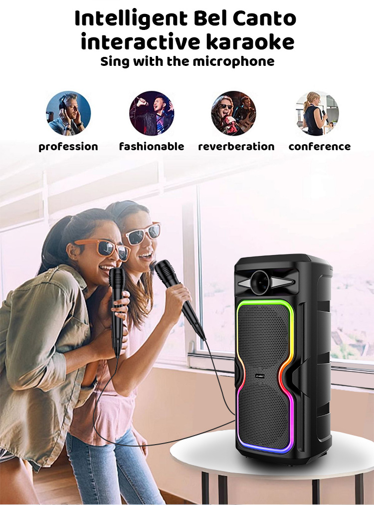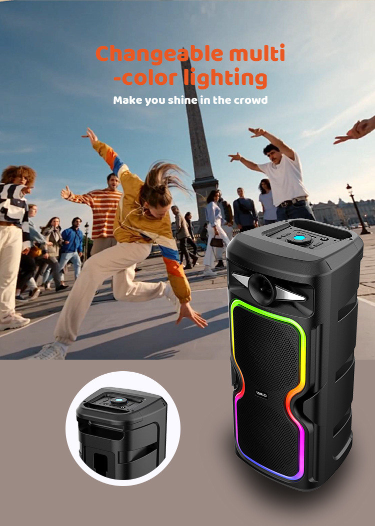 Super alto valor de la cara de alta potencia doble subwoofer de 8 pulgadas colorido baile cuadrado altavoz Bluetooth con micrófono de buena calidad de sonido