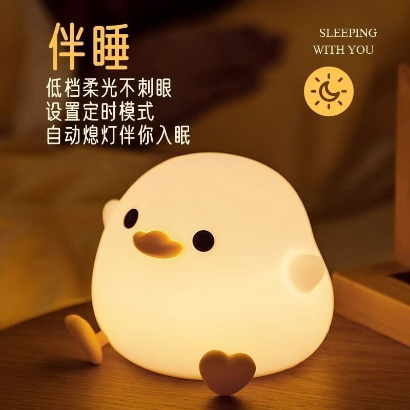 Doudou Duck Night Light Modelo de carga LED Lámpara de mesa de palmaditas junto a la cama para amamantar y dormir para amigos y compañeros de clase Regalos de cumpleaños