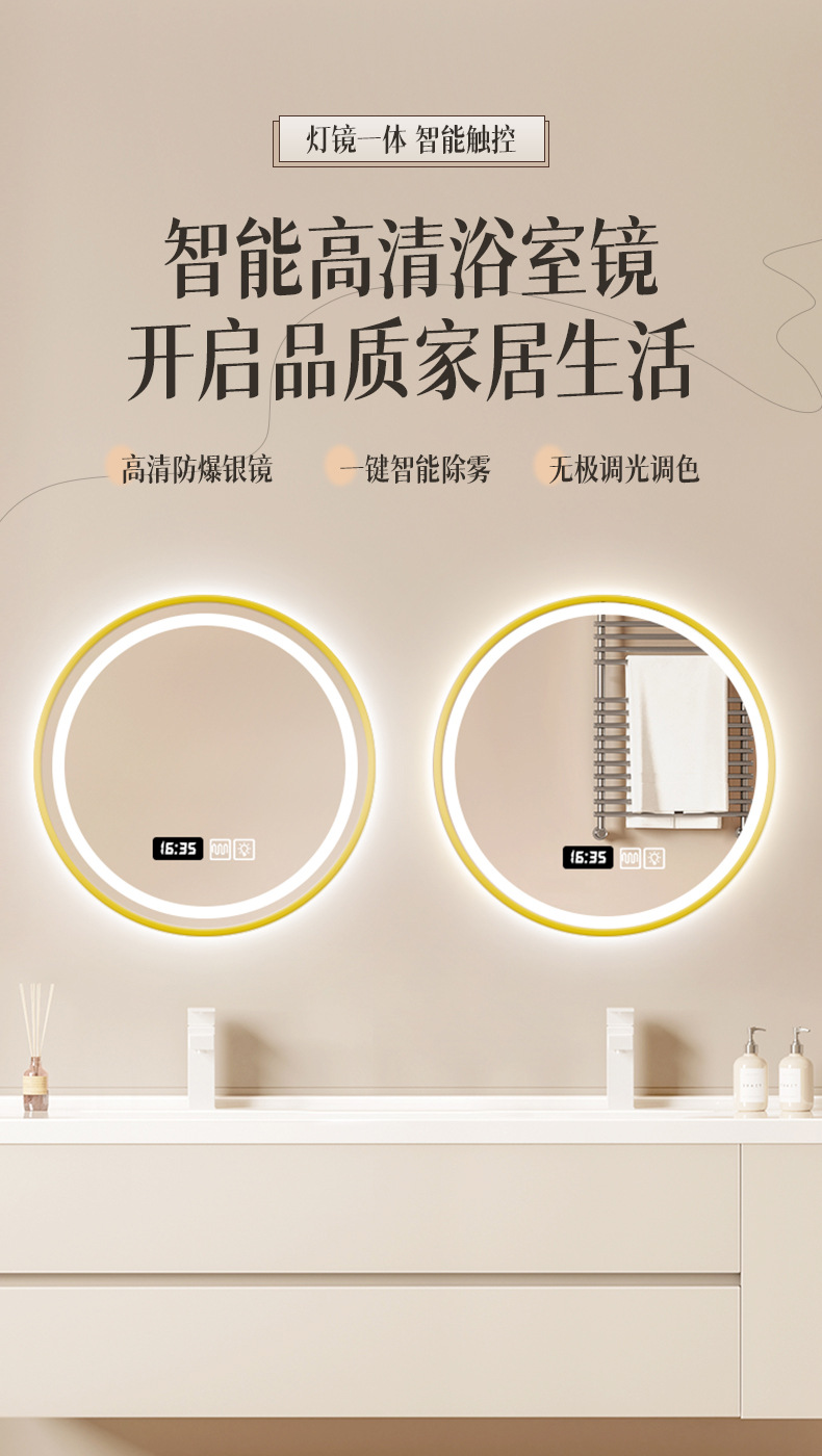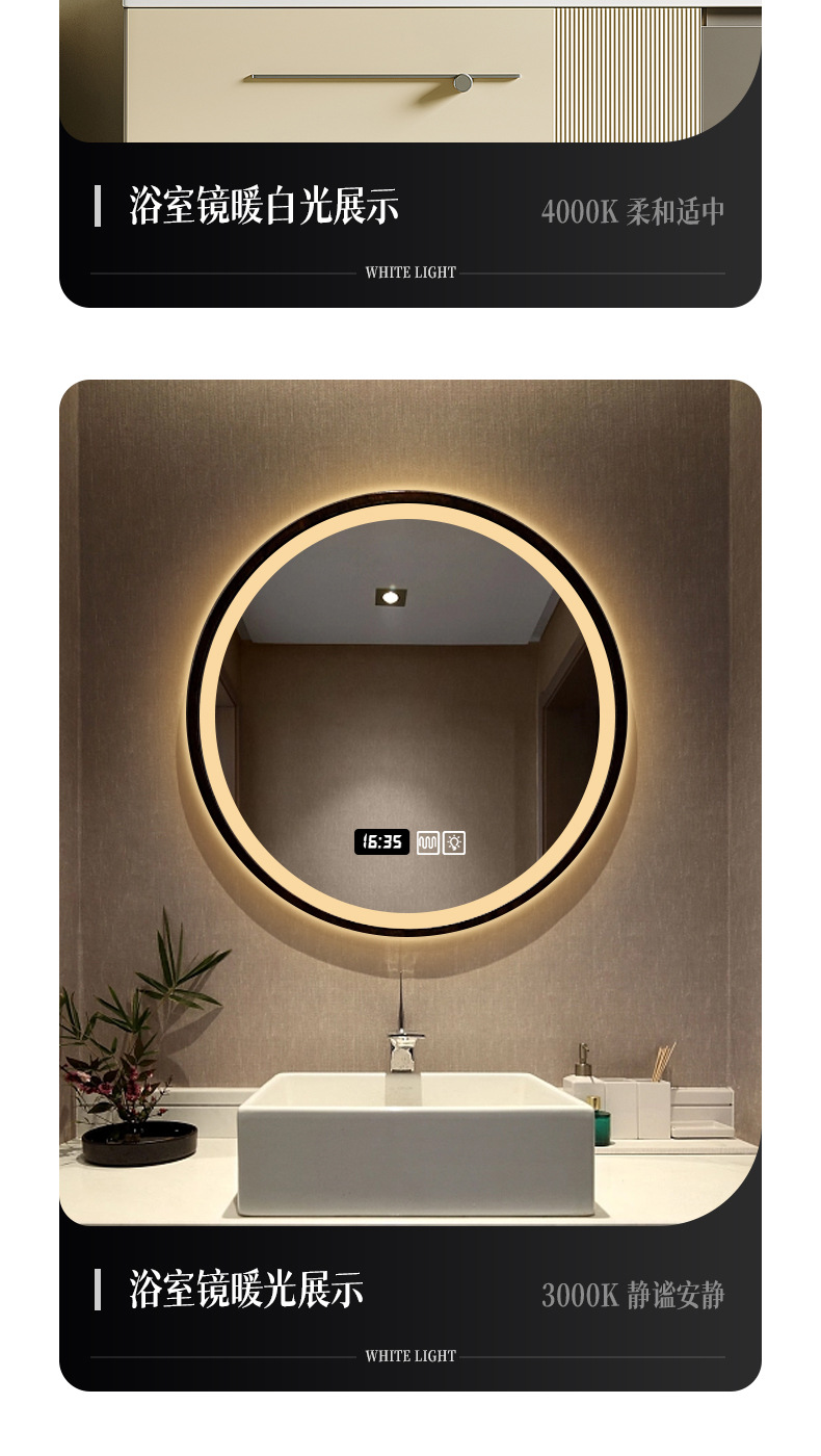 Con bordes| Baño de alta definición espejo inteligente pantalla táctil LED iluminante anti-nebble baño nórdico redondo hotel