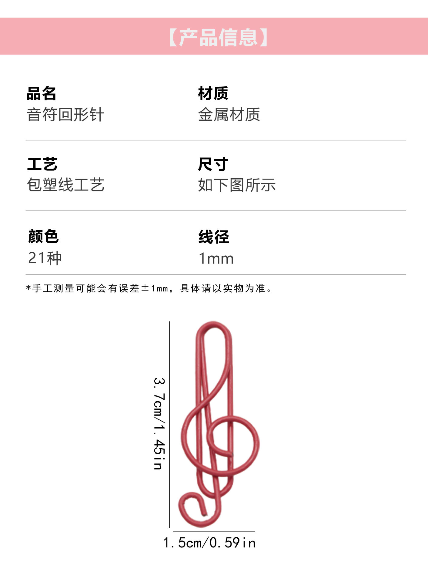 Nuevos productos 21 notas de color clips pet línea de plástico encapsulado de alto tono de música pin con fábrica de embalaje en stock