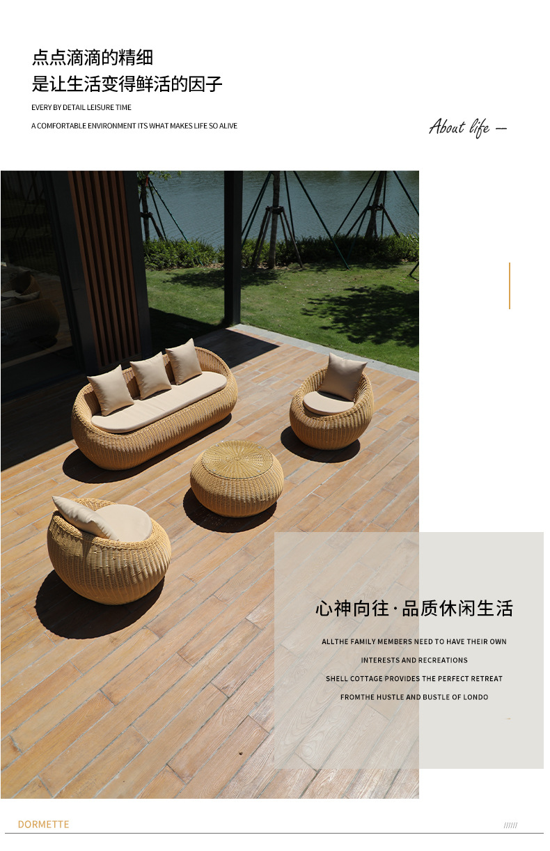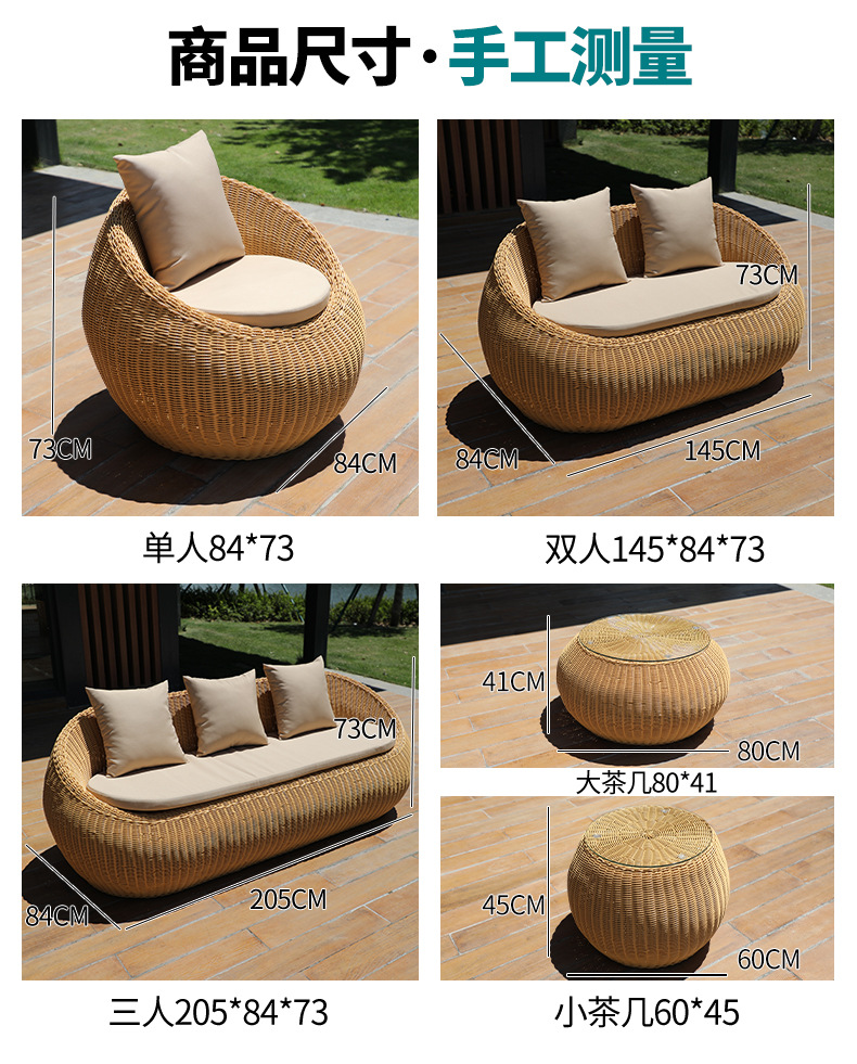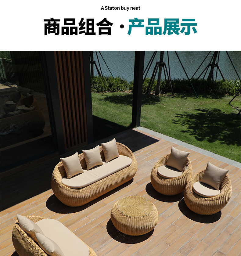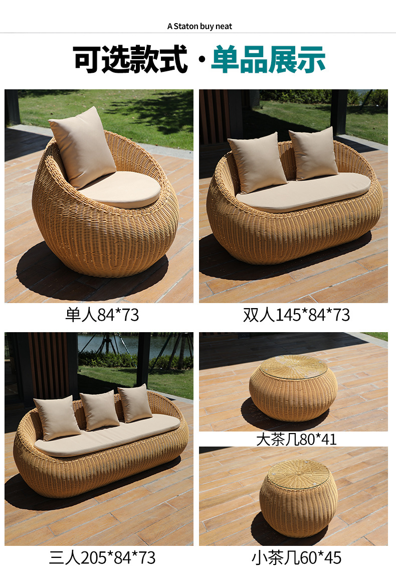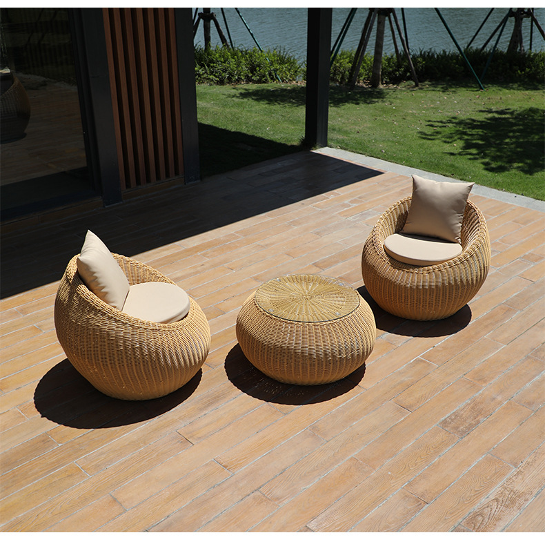 Sofá de caña impermeable mesa de té combinación de muebles de jardín balcón sofá de caña patio exterior al aire libre sofá residencial