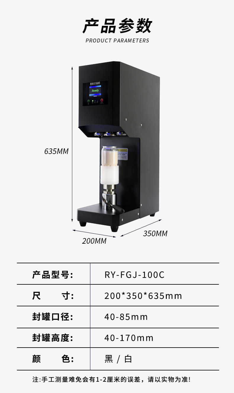 | Especificaciones | Pantalla táctil de película para sellador de latas no rotativo (2024), sellador de latas rotativo manual negro, blanco rotativo automático, blanco no rotativo automático, sellador de latas rocker manual |