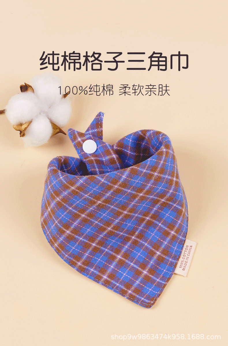 Bebé de algodón bebé babero triángulo BiB Snap de doble capa babero recién nacido niños bufanda a cuadros cuatro estaciones