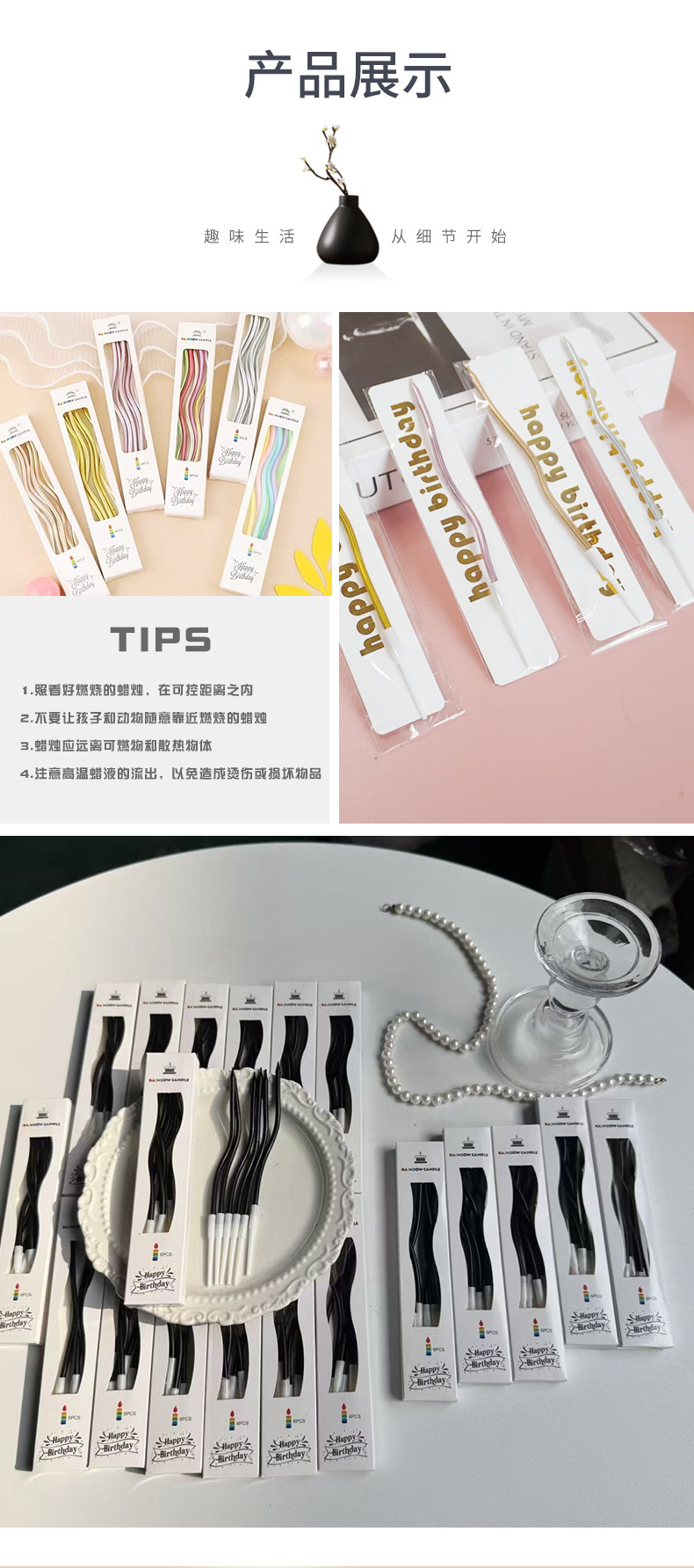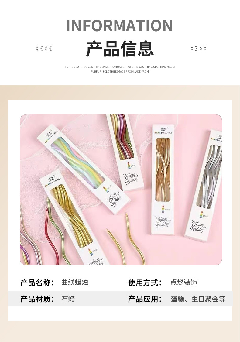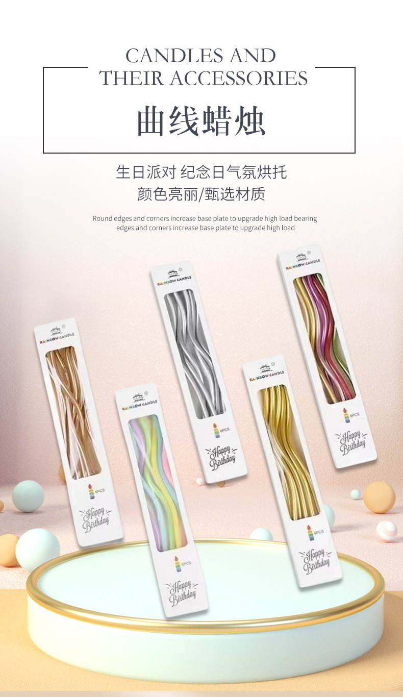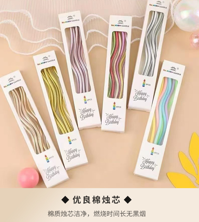 Velas curvas de aniversario de fiesta torta decoración vela roscada envasado independiente vela de cumpleaños dorada al por mayor