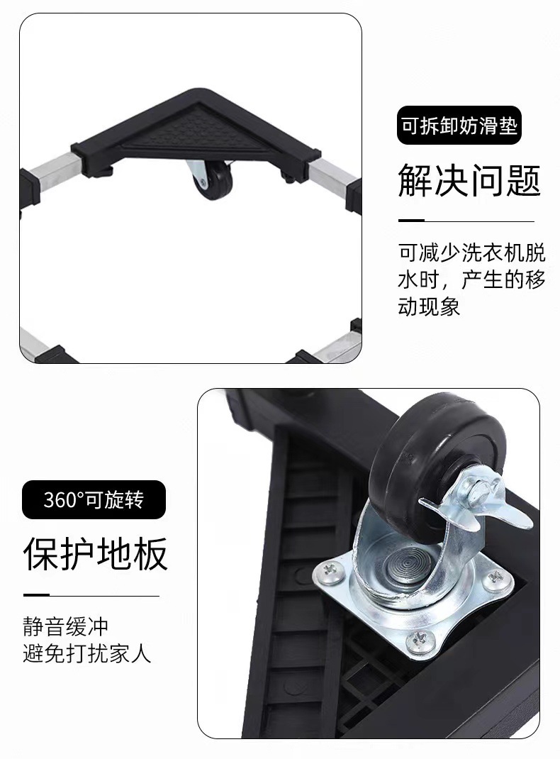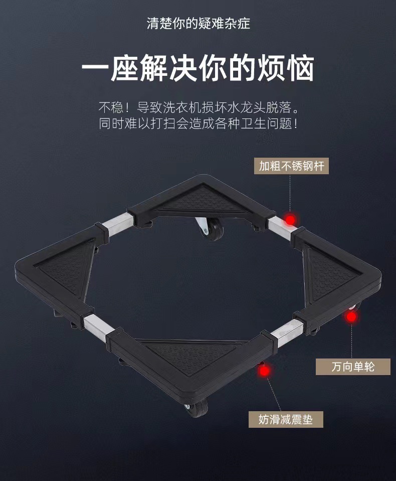 El nuevo soporte de base de lavadora ajustable retráctil, polea móvil, rueda universal, impermeable universal, a prueba de golpes y elevado