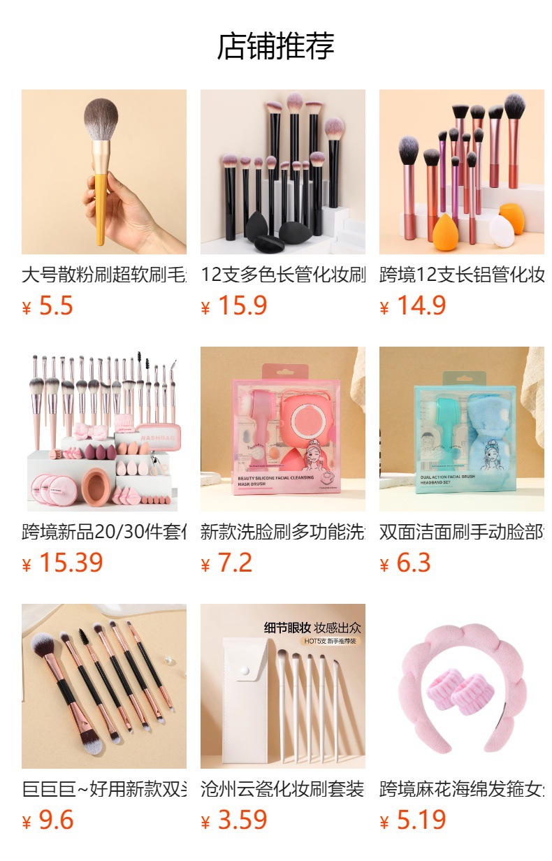 Cepillo de maquillaje, cepillo de lavado facial, cepillo de máscara facial, cepillo de cabello, banda de muñeca, polvo de maquillaje, huevo de maquillaje, paquete de maquillaje, conjunto grande