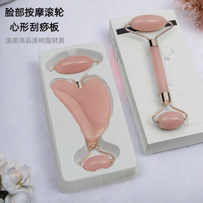 Rodillo facial de cristal en forma de corazón para masaje y lifting