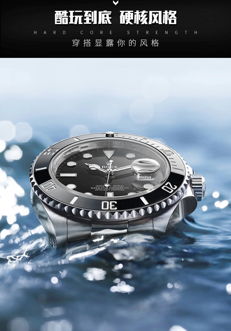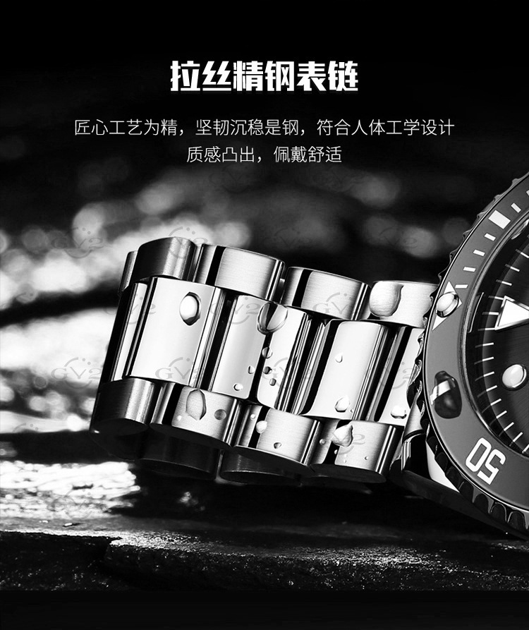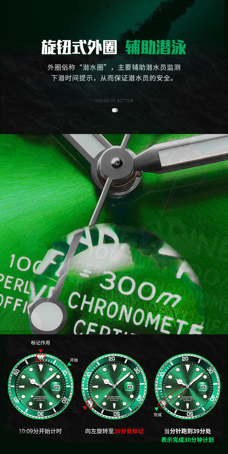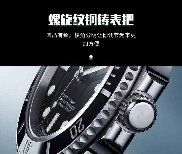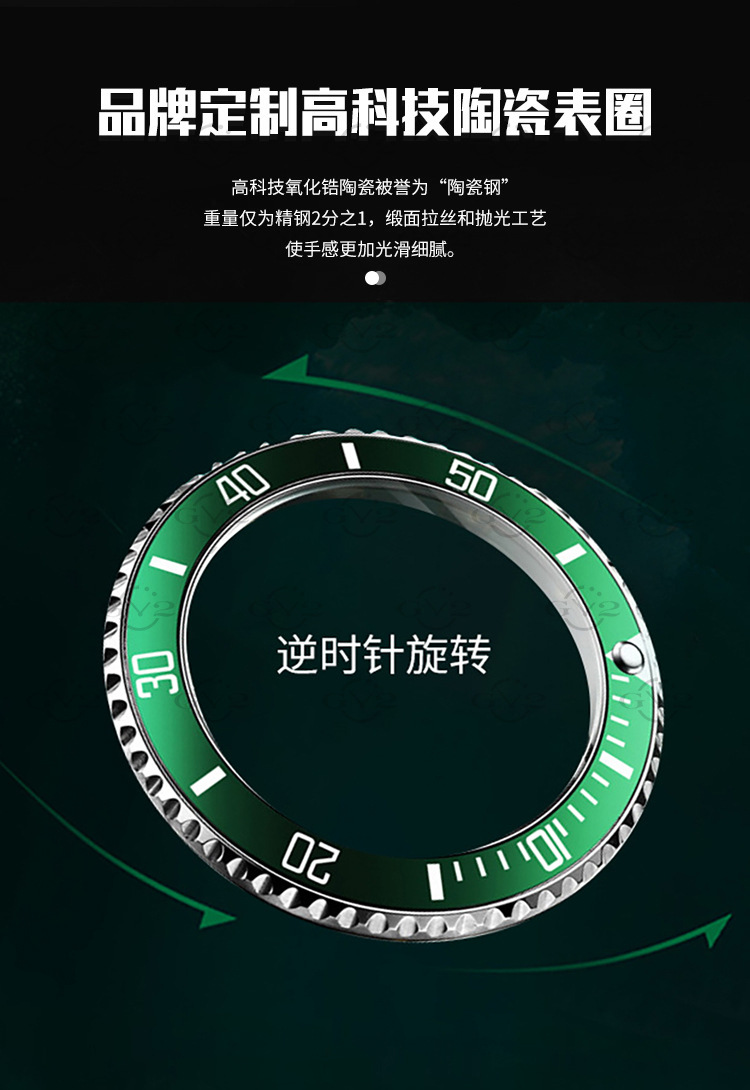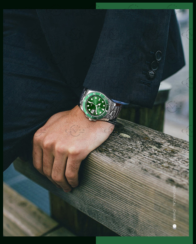 Suizo nuevo reloj de hombre, fantasma de agua verde, reloj mecánico automático impermeable, acero nocturno, reloj de mano de obra de negocios para hombres