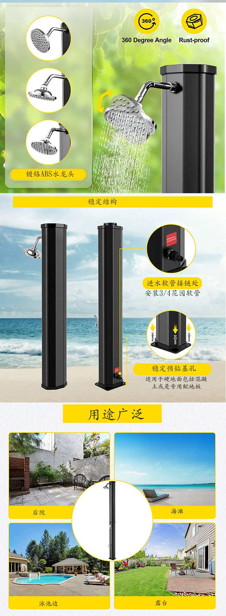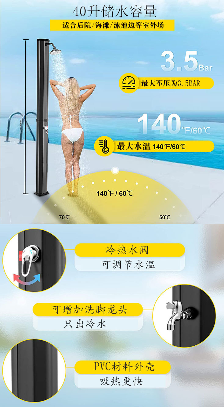 Ducha solar exterior 40L para jardín y villa de playa