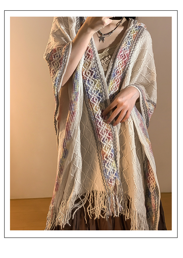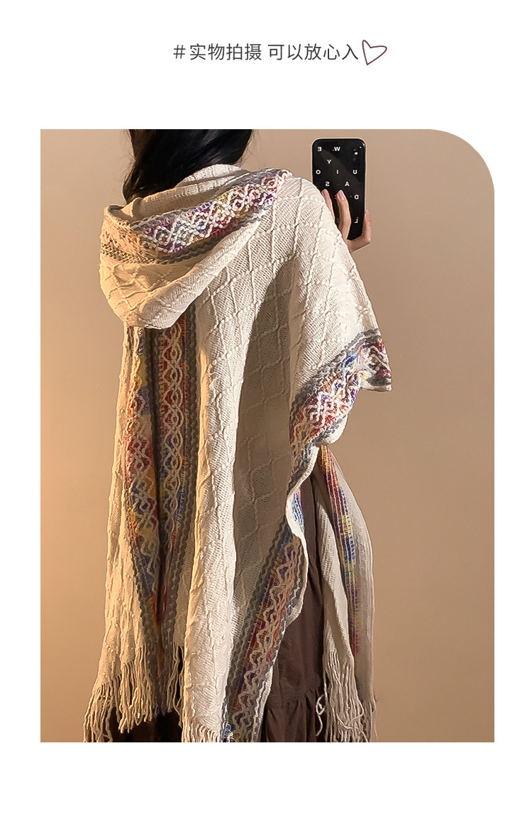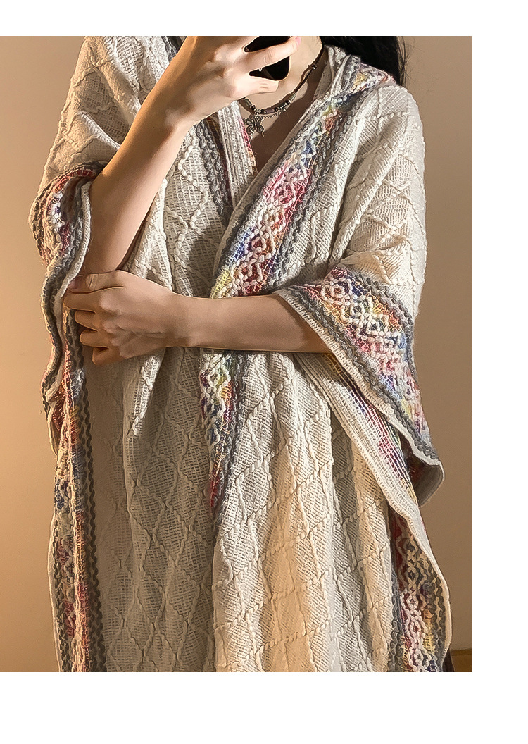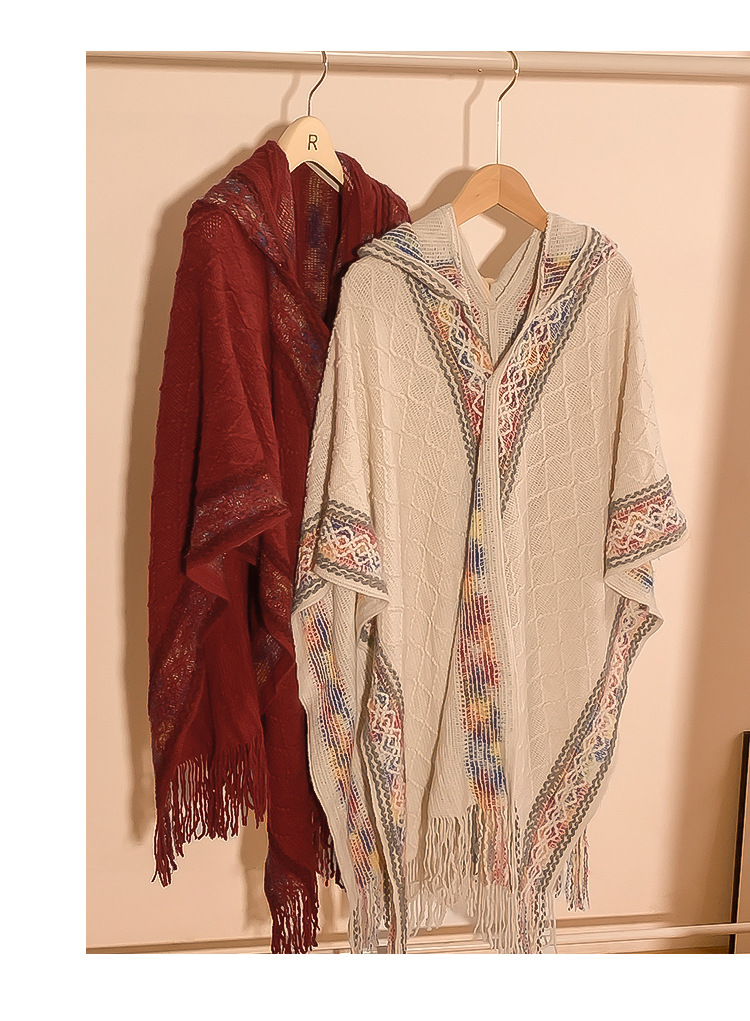 Turismo de estilo étnico encapuchado chal mujer en Xinjiang Yunnan bohemia sala de aire acondicionado camisa de punto camisa de abrigo