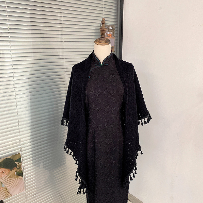Cheongsam Challas de aire acondicionado de estilo retro mujeres Challas de tejido de lana fina capas Cardigan