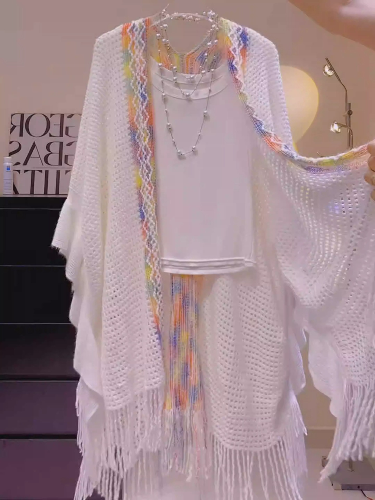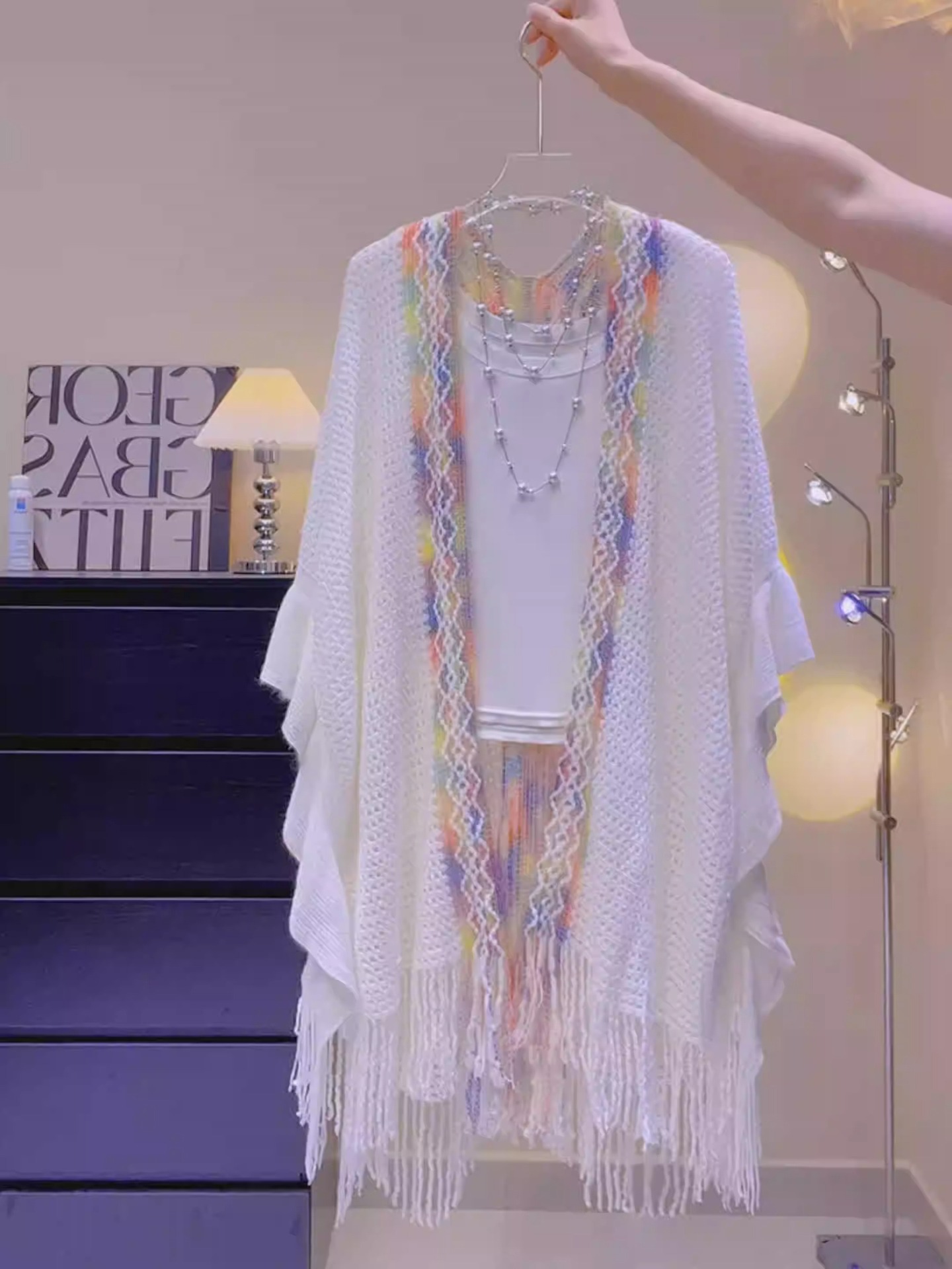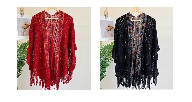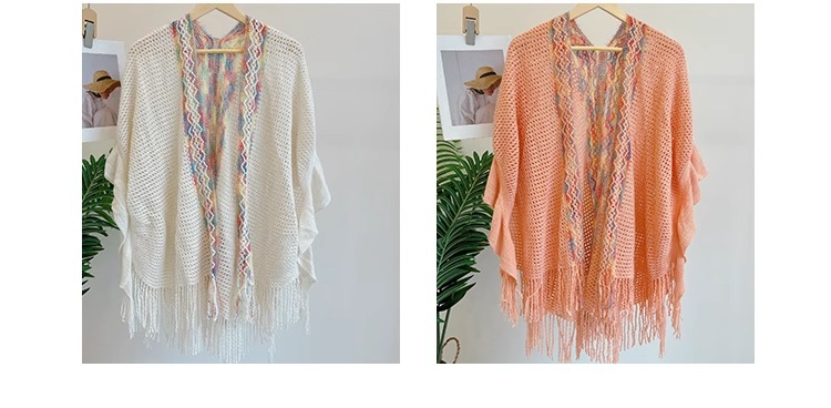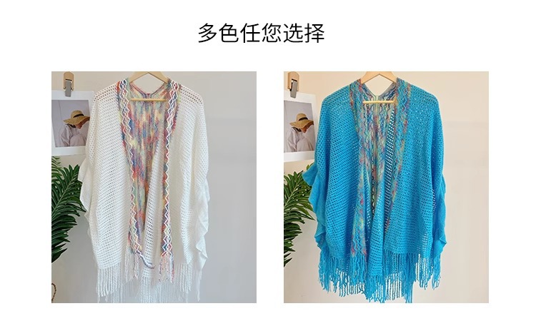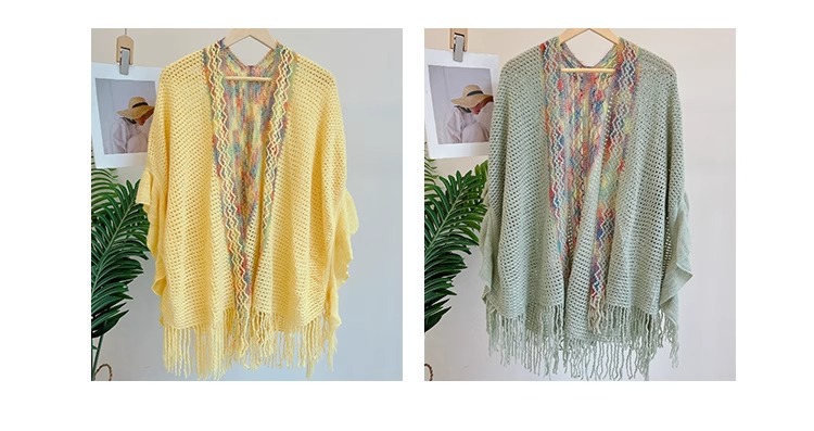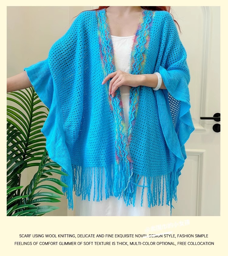 Nuevo chal de mujer, tiras de color, suéter de punto, foto de viaje, capa étnica de todo fósforo, capa de todo fósforo, viaje