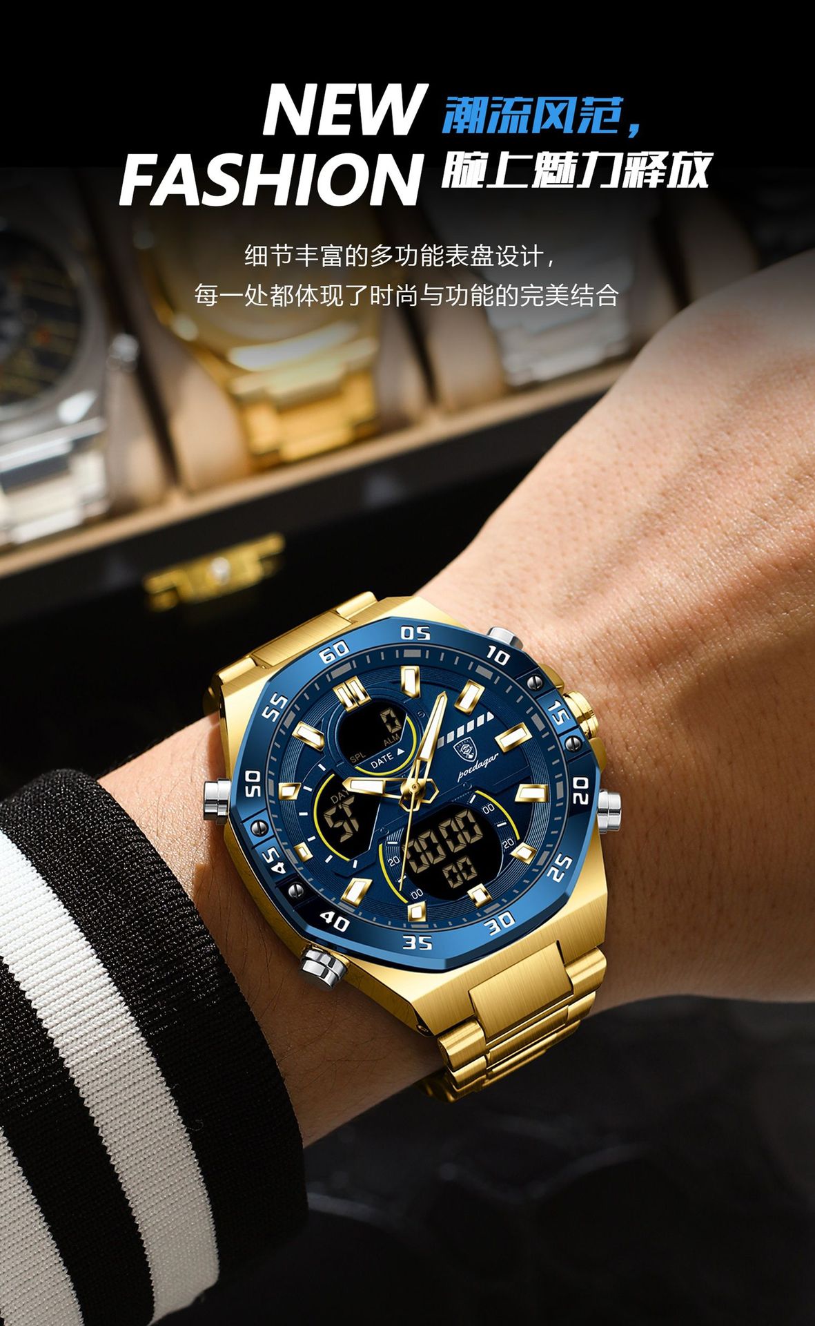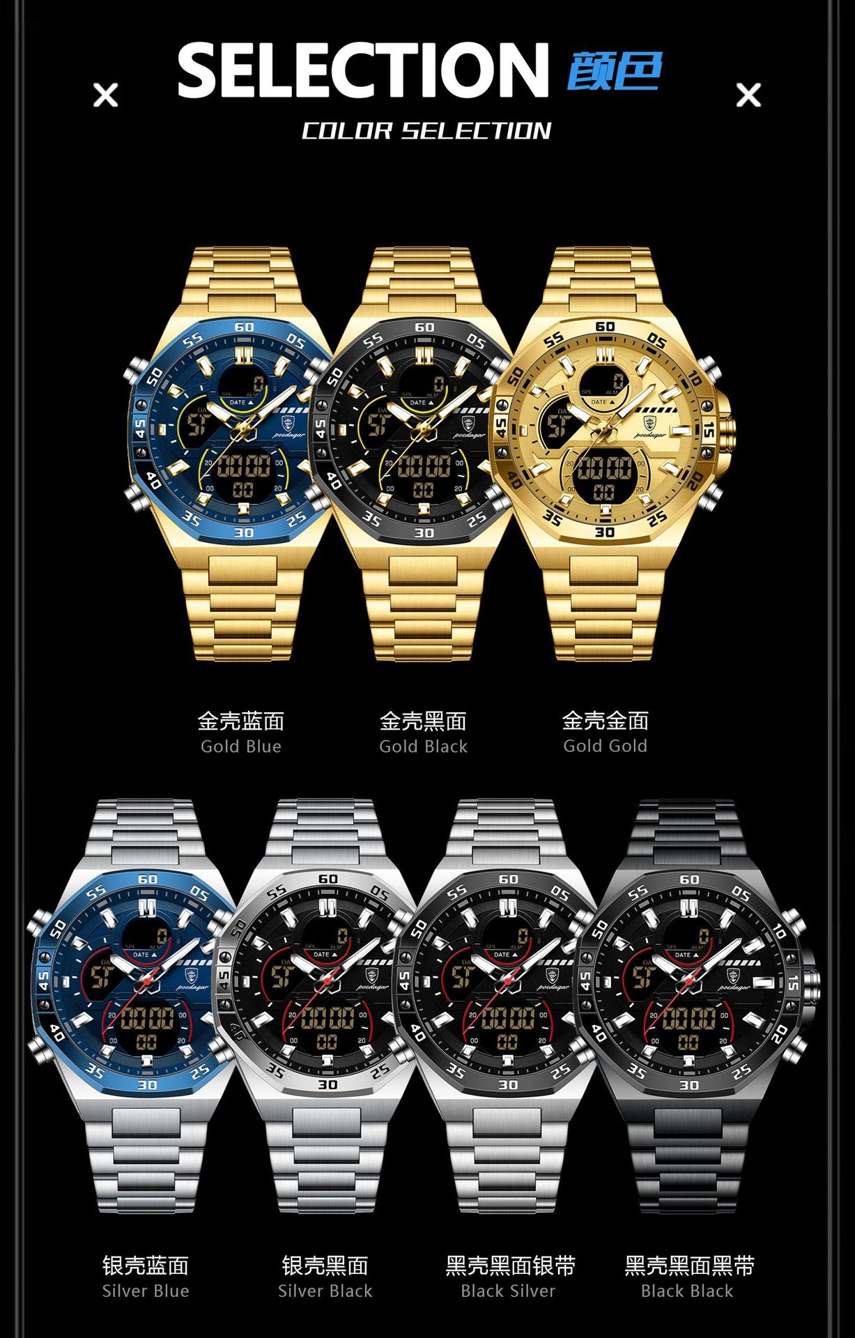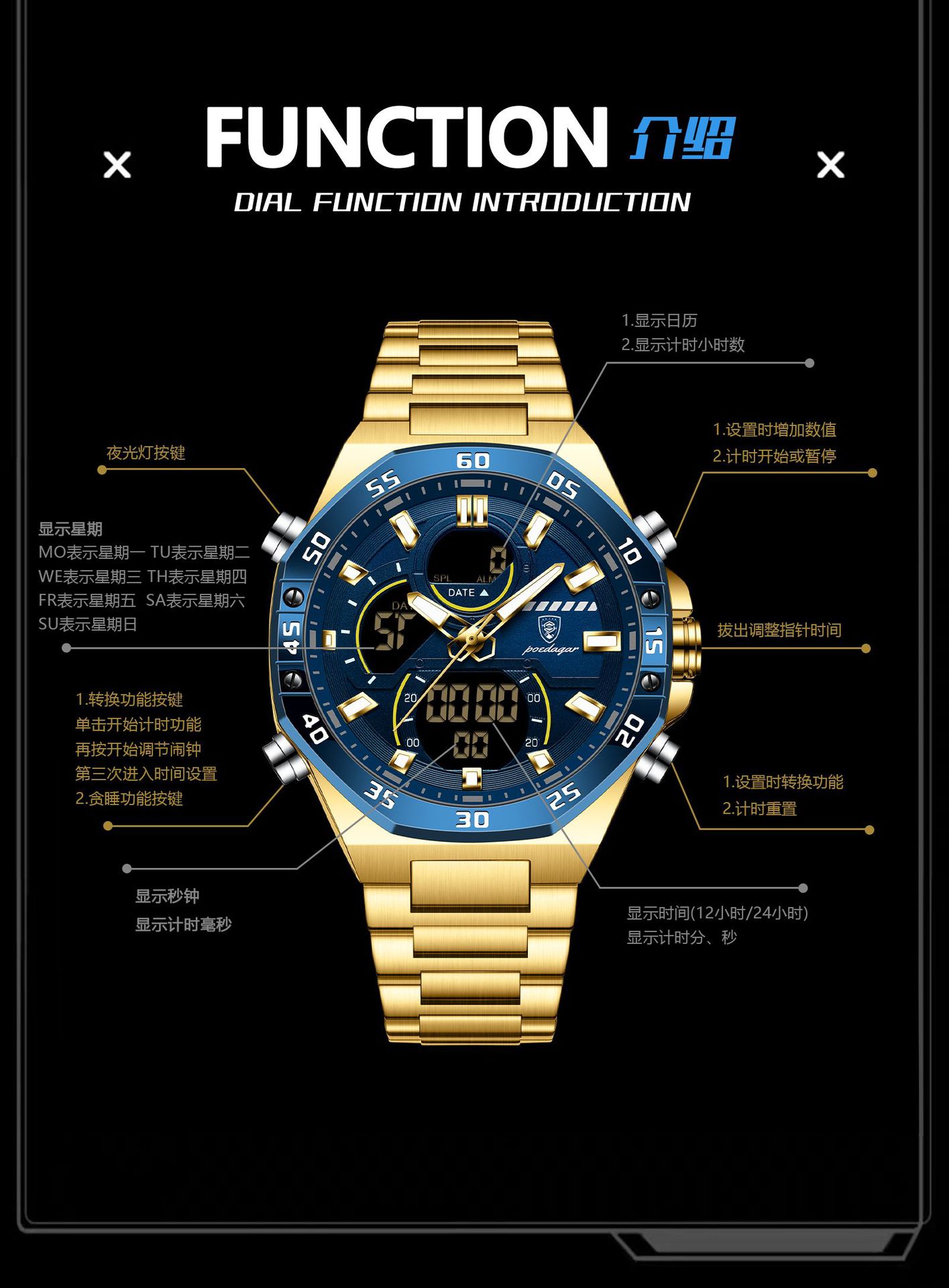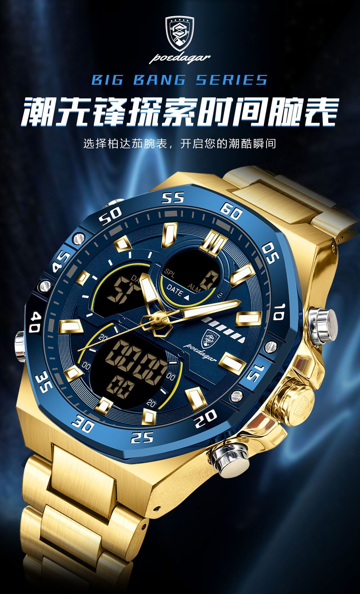 Nuevo producto de la marca suiza Reloj electrónico multifuncional para hombre Reloj electrónico impermeable Transmisión en vivo Estilo explosivo de comercio exterior