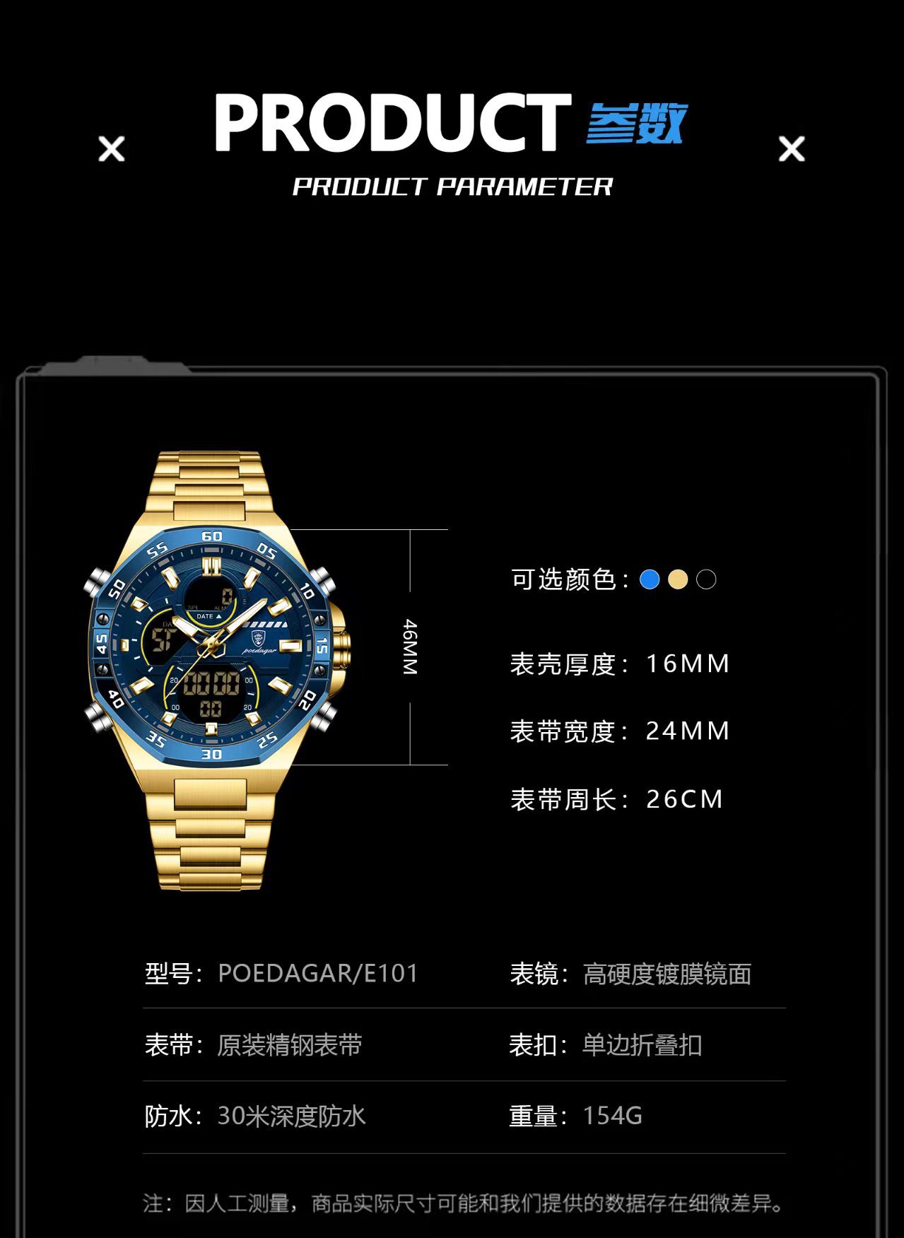 | Colores | Cinturón de acero azul con carcasa dorada E101,Cinturón de acero de superficie negra con carcasa de oro E101,Cinturón de acero con carcasa de oro E101,Cinturón de acero con anillo de plata de cara negra con carcasa de plata E101,Cinturón de acero con anillo negro de cara negra con carcasa plateada E101,Cinturón de acero azul con carcasa de plata E101,Cinturón de acero de superficie negra de concha negra E101 |